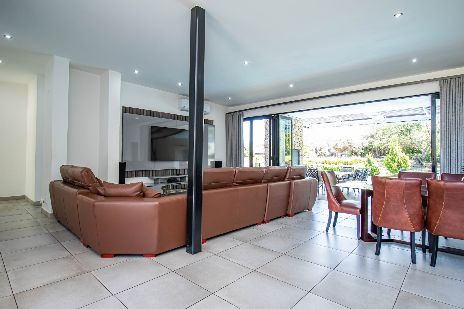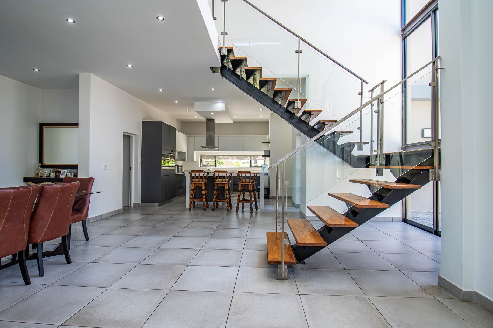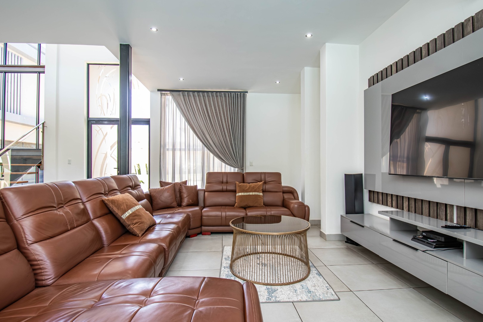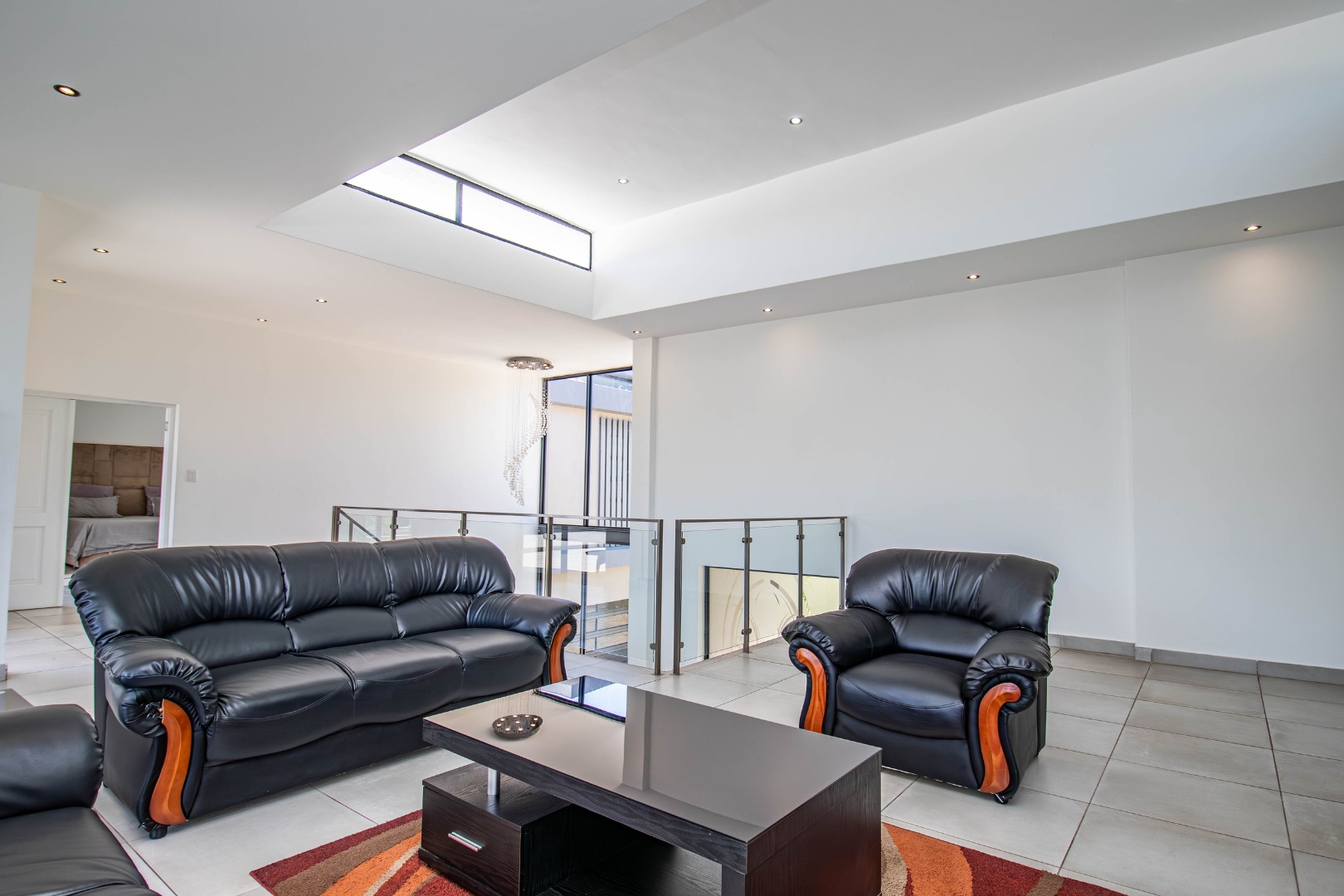 Accommodation includes four spacious bedrooms, all en-suite, with three leading onto balconies. Additional features include a double automated garage with direct home access, staff quarters with kitchenette and bathroom, inverter with 5kVa battery system, two geysers, and a Big Blue water filtration system. This immaculate property is priced at R6 800 000.