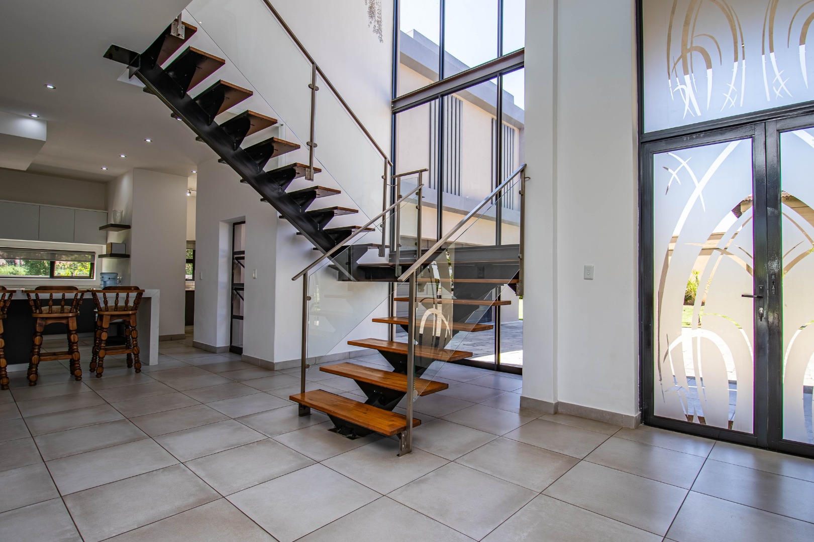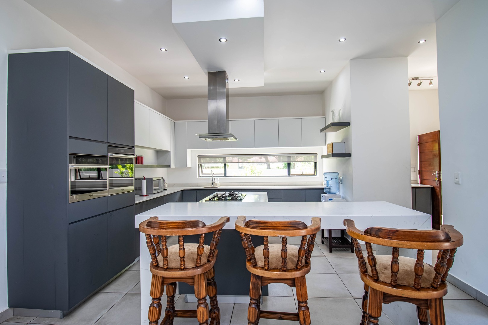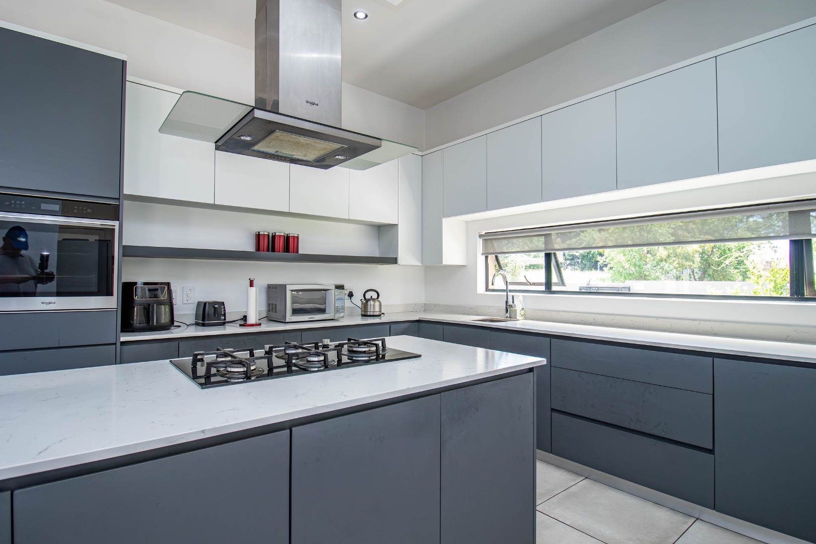 Accommodation includes four spacious bedrooms, all en-suite, with three leading onto balconies. Additional features include a double automated garage with direct home access, staff quarters with kitchenette and bathroom, inverter with 5kVa battery system, two geysers, and a Big Blue water filtration system. This immaculate property is priced at R6 800 000.