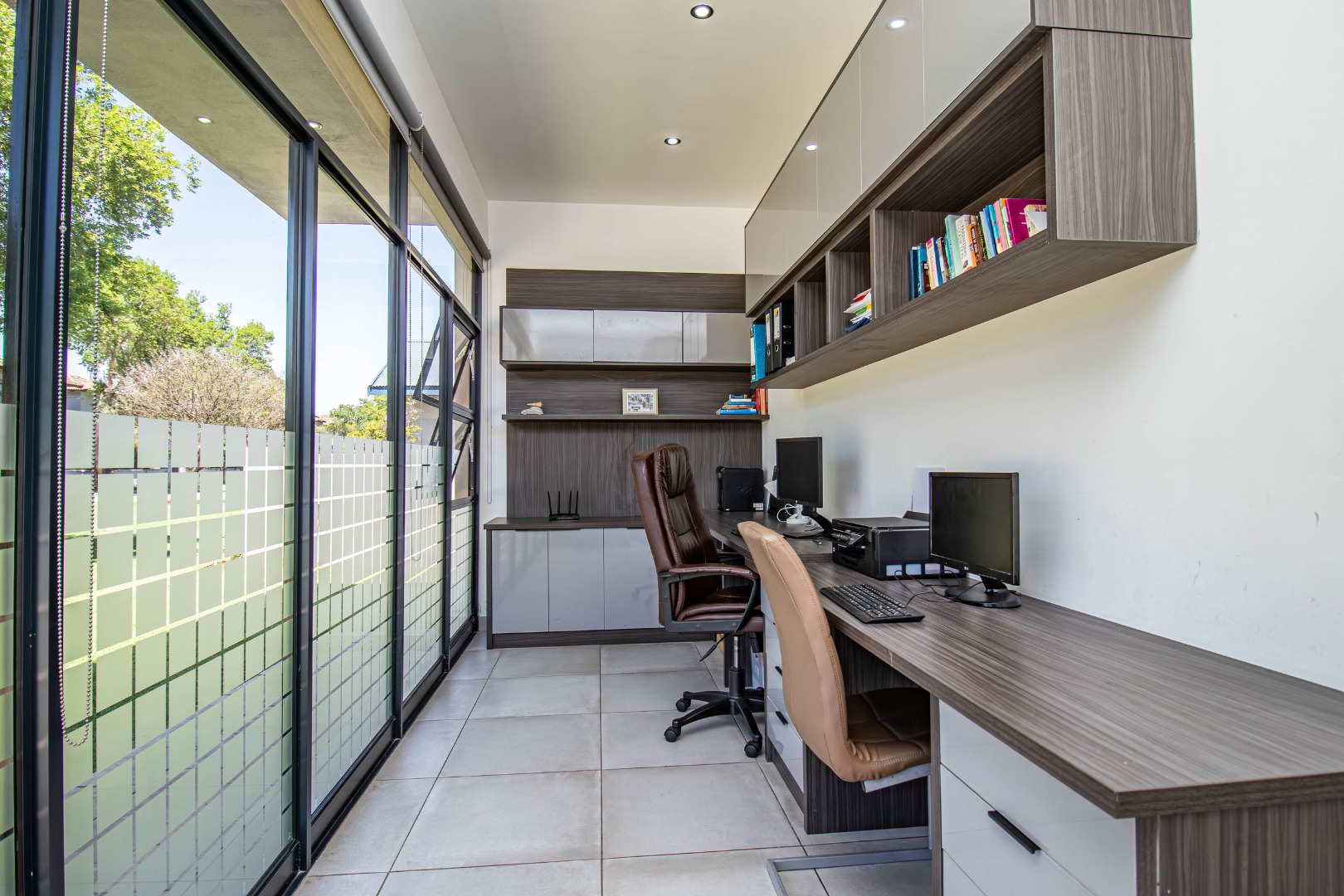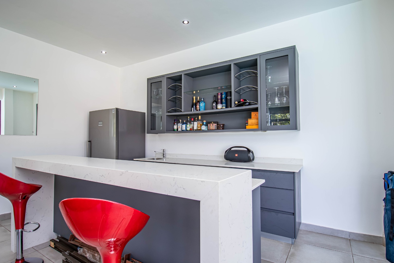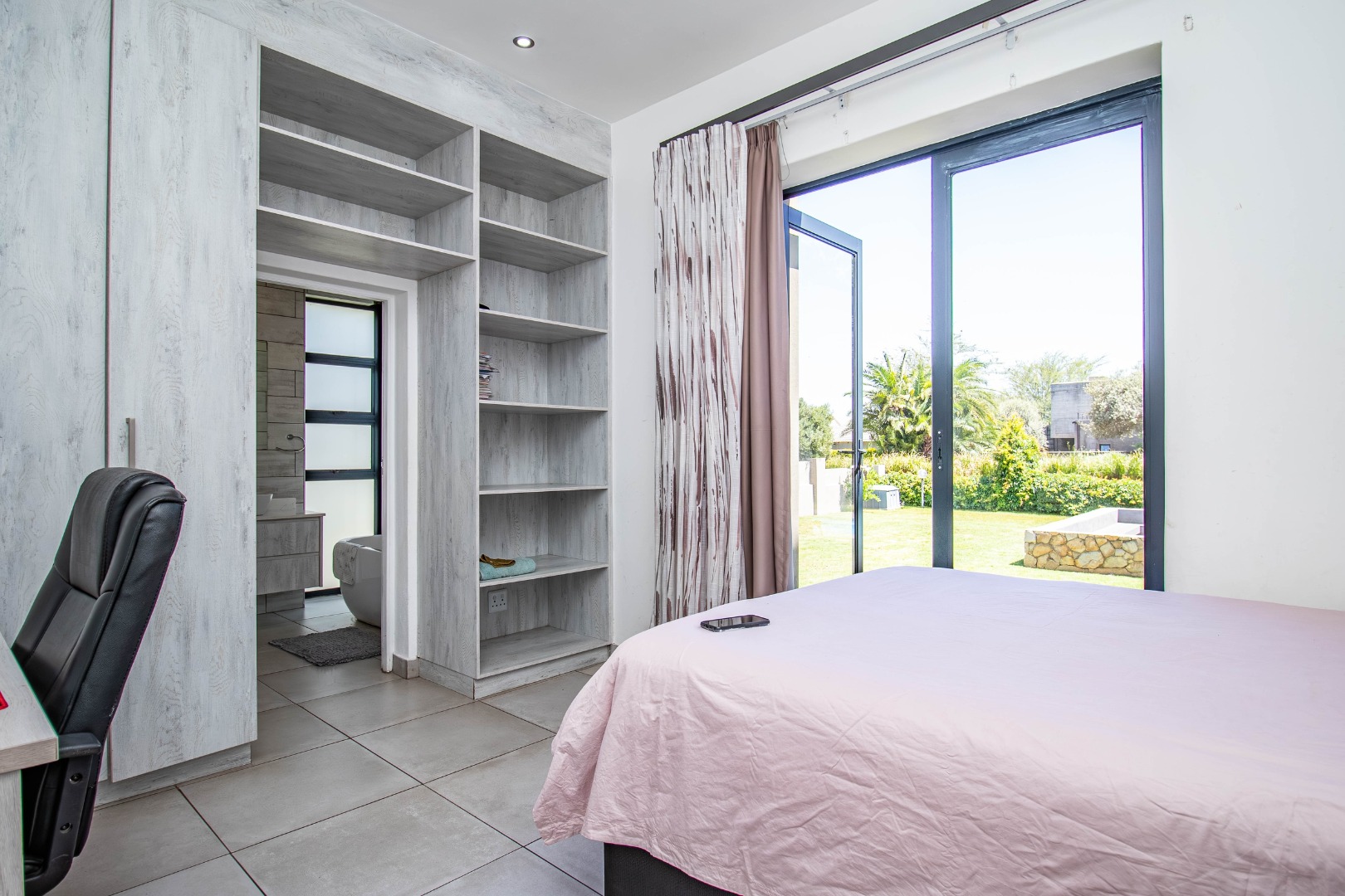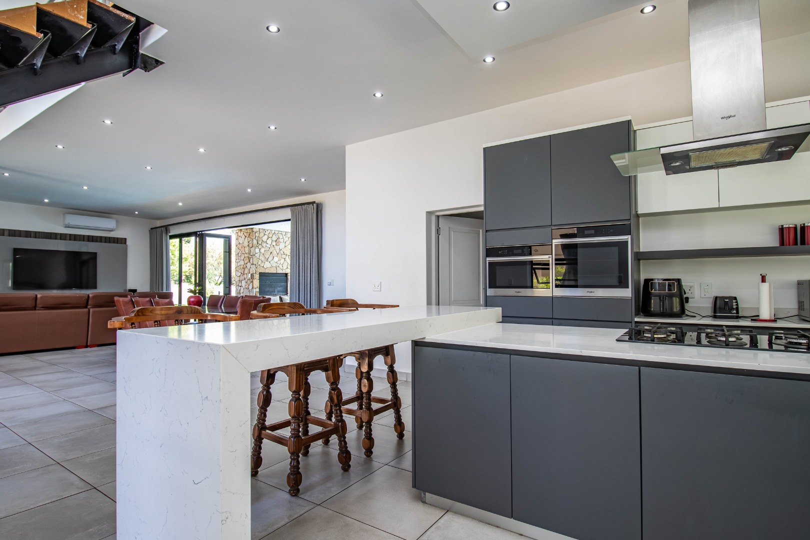 Accommodation includes four spacious bedrooms, all en-suite, with three leading onto balconies. Additional features include a double automated garage with direct home access, staff quarters with kitchenette and bathroom, inverter with 5kVa battery system, two geysers, and a Big Blue water filtration system. This immaculate property is priced at R6 800 000.