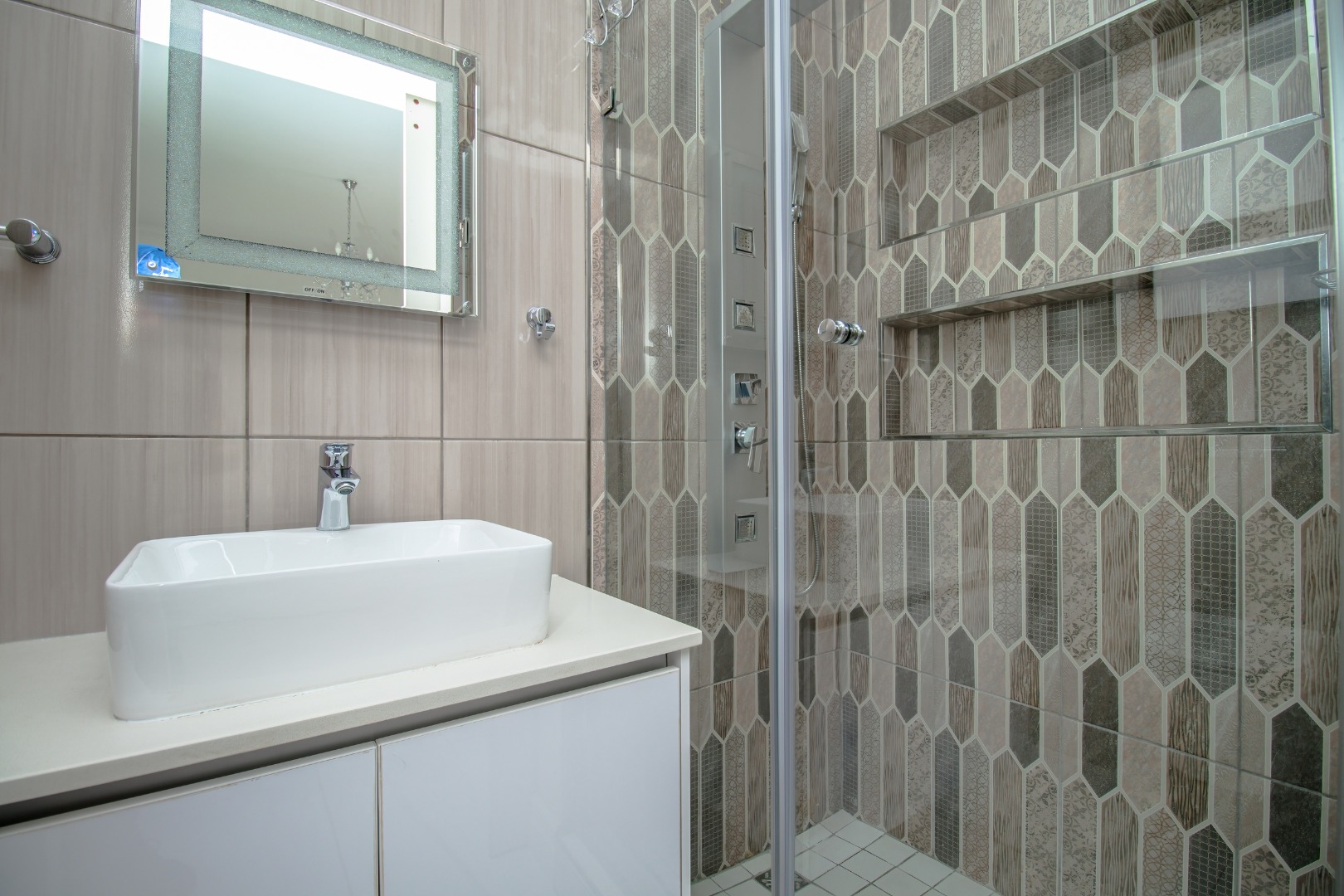 Positioned on a 1,791sqm corner stand in The Island’s Estate, Hartbeespoort, this 401sqm double-story residence offers an exceptional combination of space, comfort, and functionality. The home features five bedrooms, with three en-suite bedrooms upstairs, each opening onto private balconies, as well as an en-suite bedroom downstairs and a versatile fifth room that can serve as an additional bedroom or living space. The open-plan reception areas lead seamlessly to an undercover patio overlooking a heated, salt-chlorinated pool, while the kitchen is fitted with premium Smeg appliances. Additional features include an upstairs jacuzzi, full air-conditioning on the ground floor, and central cooling upstairs.