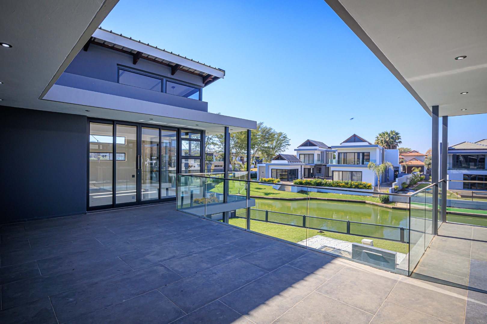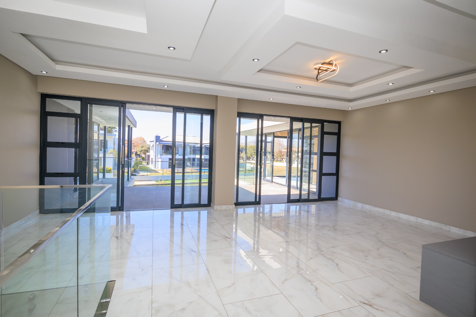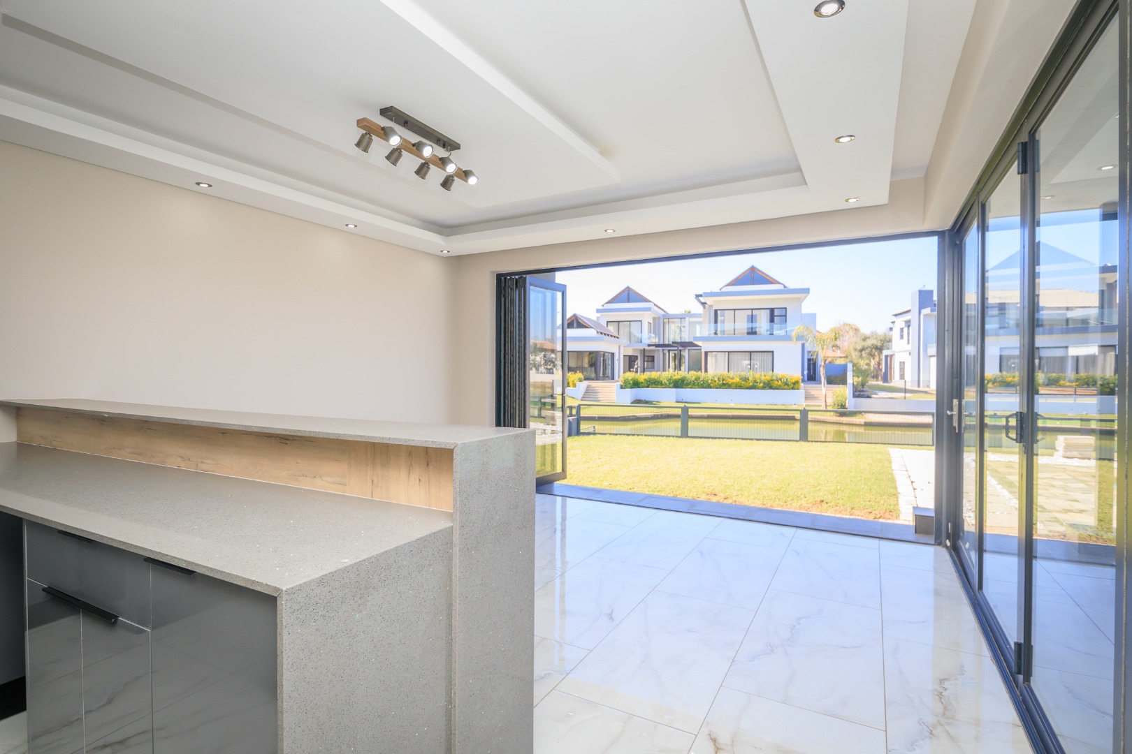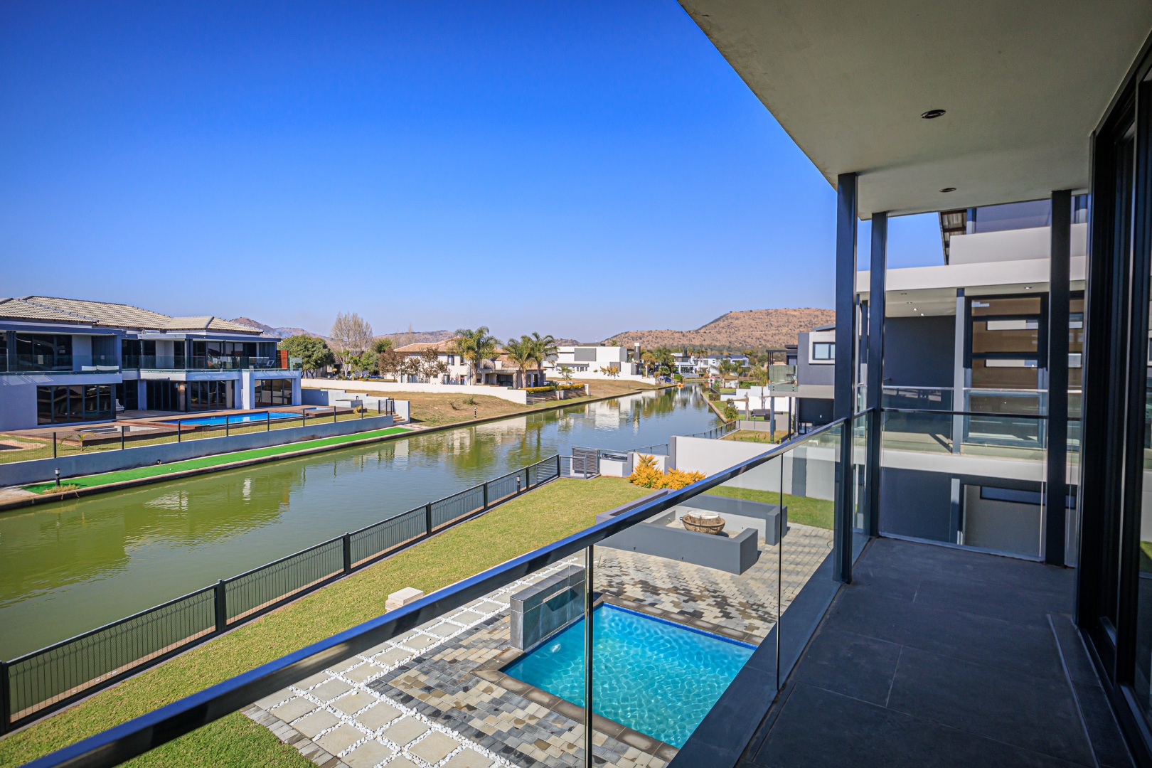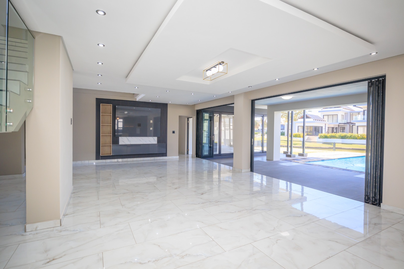 This sophisticated and luxurious home is set within the prestigious Islands Estate, offering a secure and refined lifestyle that’s nearly unmatched. Designed for comfortable family living and effortless entertaining, this residence blends modern elegance with warm, inviting spaces — the perfect balance of form and function. Chic and contemporary, the home welcomes you with generous open-plan living areas that flow seamlessly between formal and informal zones. The spacious kitchen, lounge, and dining area are designed with entertainers in mind, featuring stackable glass doors that open completely onto an expansive patio, crystal-clear pool, creating an exceptional indoor-outdoor living experience. A private guest suite with en-suite bathroom is thoughtfully positioned off the main living area on the ground floor, offering convenience and privacy. Upstairs, the first floor is a sanctuary of rest and relaxation, boasting three spacious en-suite bedrooms, each filled with natural light. A comfortable pyjama lounge with a kitchenette provides an additional living area — ideal for relaxed evenings or morning coffees. The master suite is a standout feature, offering a luxurious retreat complete with a walk-in dressing room and a luxurious en-suite bathroom, a space designed for comfort, indulgence, and privacy. Double volume garaging for four vehicles plus ample extra space for additional parking. This home has it all. Just move in and start living.