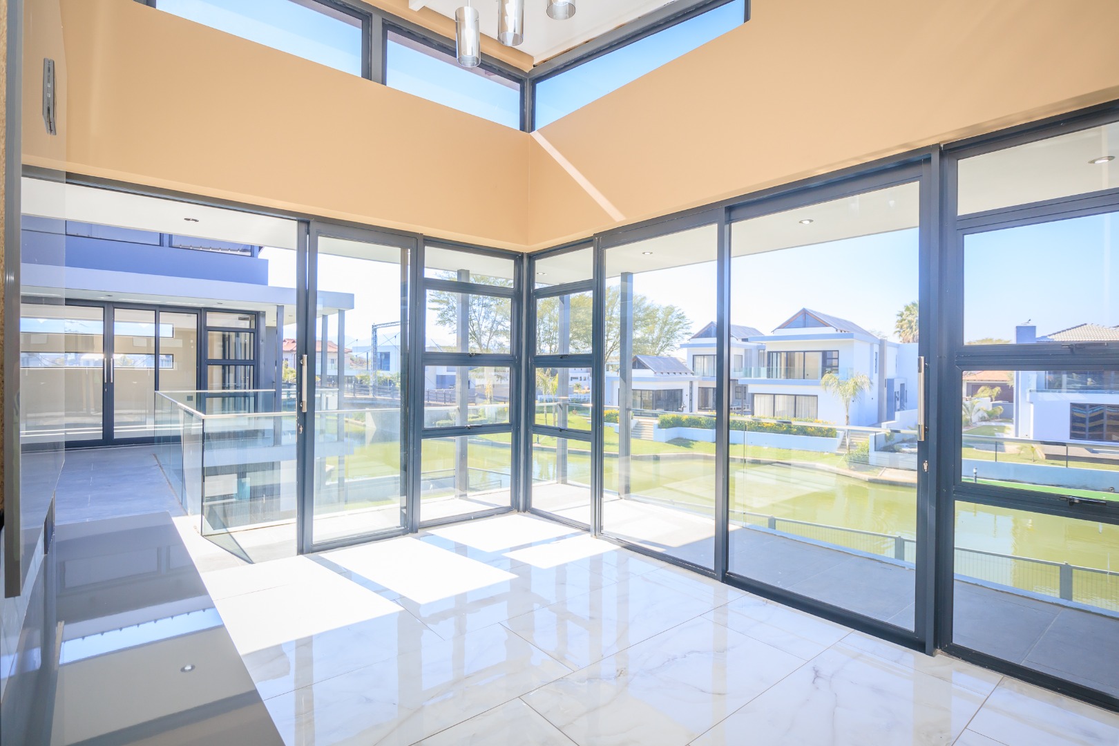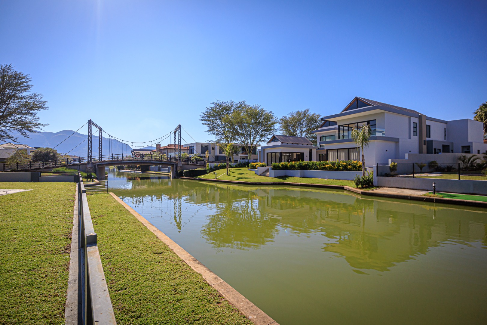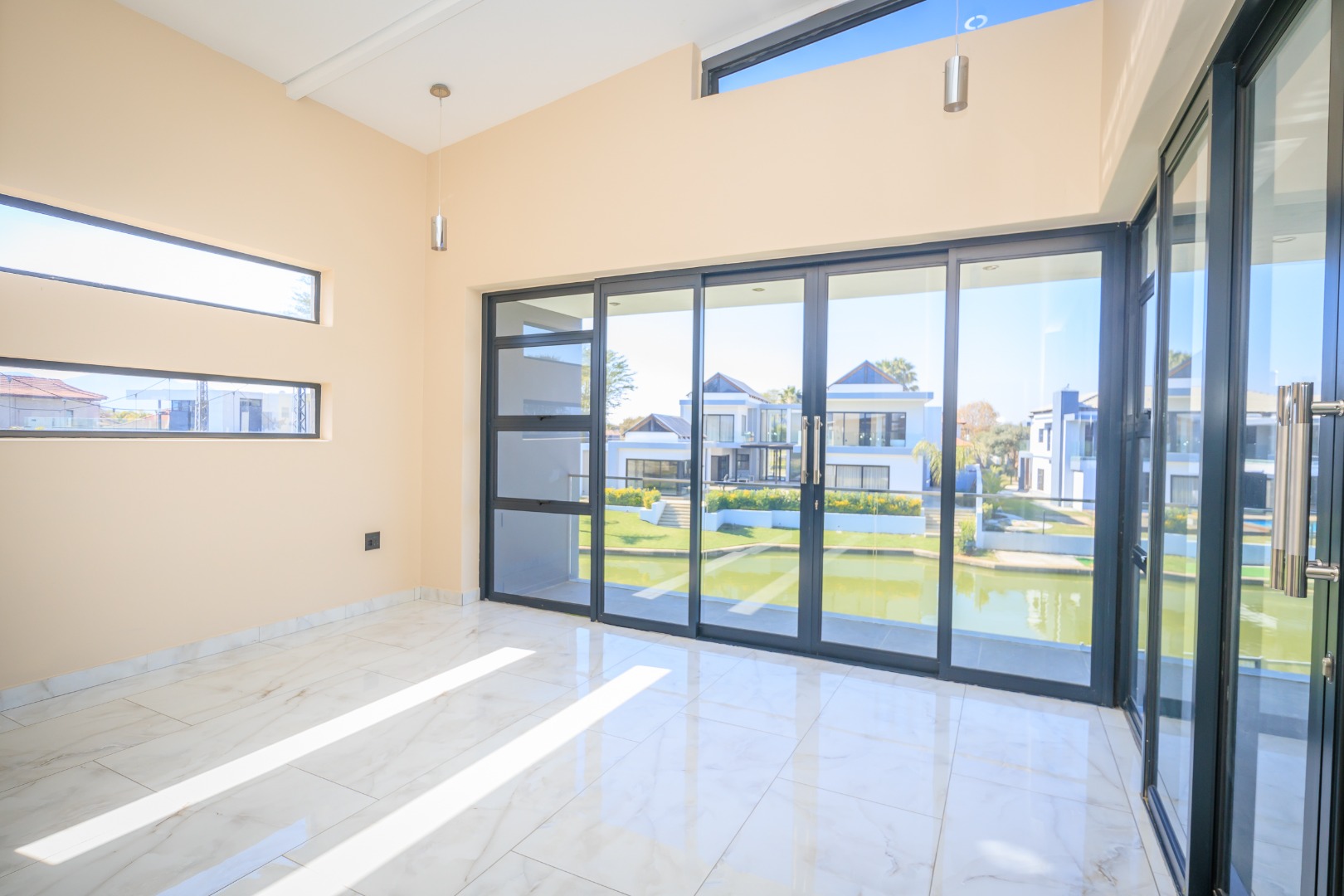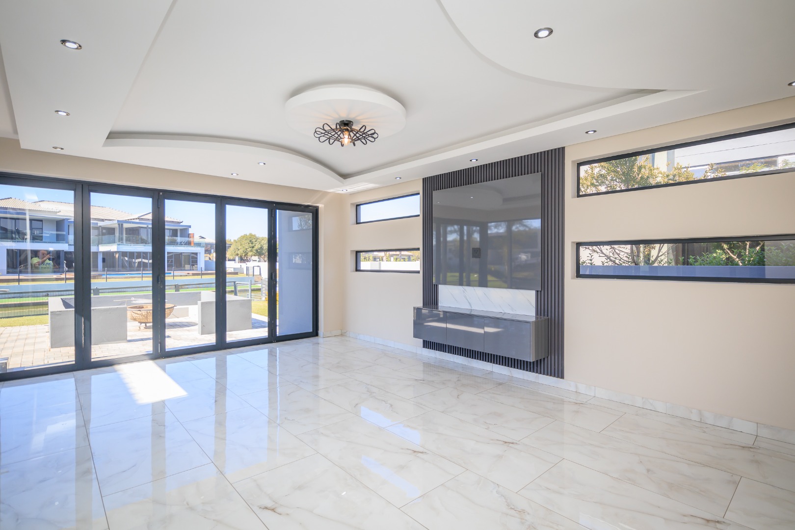 This sophisticated and luxurious home is set within the prestigious Islands Estate, offering a secure and refined lifestyle that’s nearly unmatched. Designed for comfortable family living and effortless entertaining, this residence blends modern elegance with warm, inviting spaces — the perfect balance of form and function. Chic and contemporary, the home welcomes you with generous open-plan living areas that flow seamlessly between formal and informal zones. The spacious kitchen, lounge, and dining area are designed with entertainers in mind, featuring stackable glass doors that open completely onto an expansive patio, crystal-clear pool, creating an exceptional indoor-outdoor living experience. A private guest suite with en-suite bathroom is thoughtfully positioned off the main living area on the ground floor, offering convenience and privacy. Upstairs, the first floor is a sanctuary of rest and relaxation, boasting three spacious en-suite bedrooms, each filled with natural light. A comfortable pyjama lounge with a kitchenette provides an additional living area — ideal for relaxed evenings or morning coffees. The master suite is a standout feature, offering a luxurious retreat complete with a walk-in dressing room and a luxurious en-suite bathroom, a space designed for comfort, indulgence, and privacy. Double volume garaging for four vehicles plus ample extra space for additional parking. This home has it all. Just move in and start living.