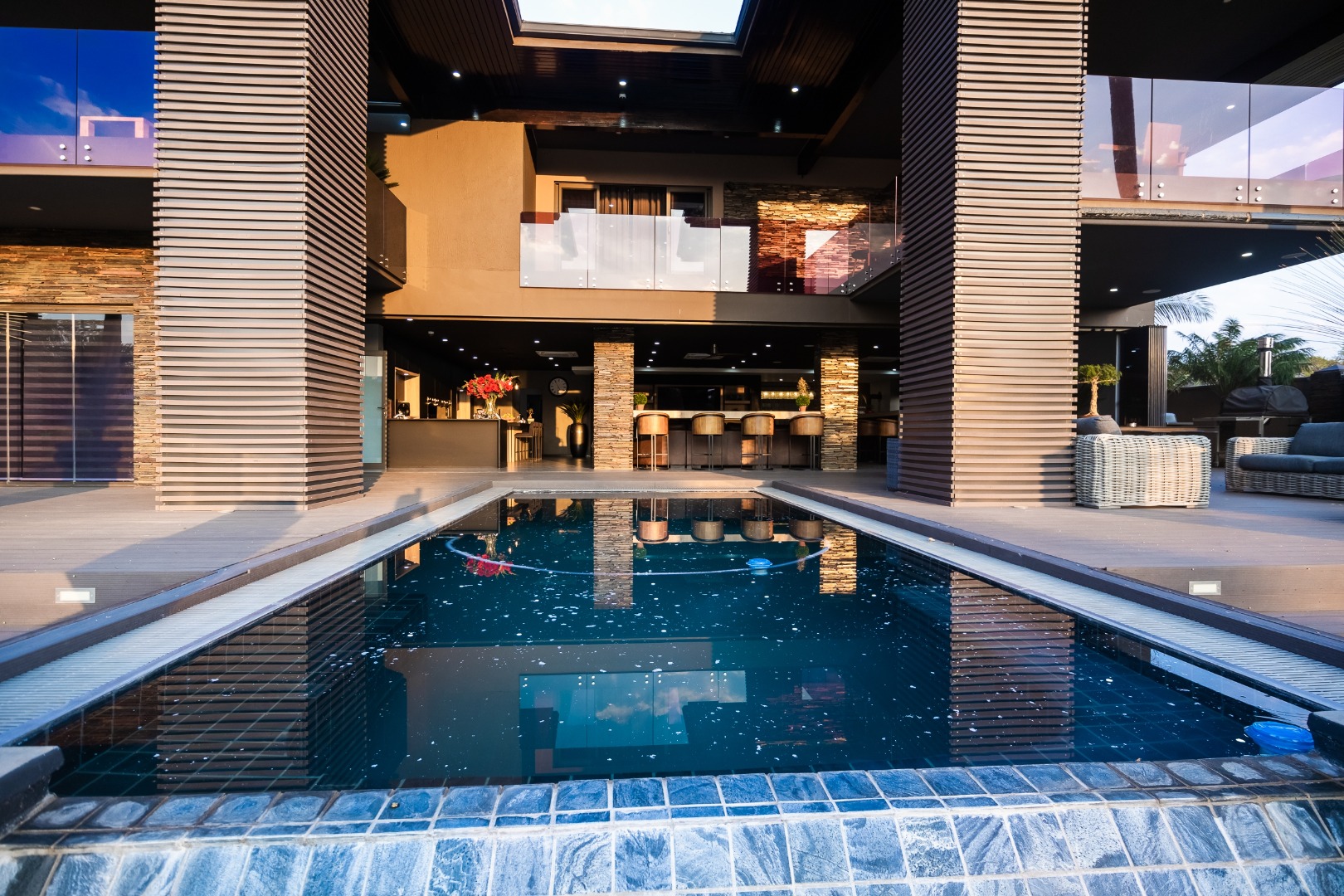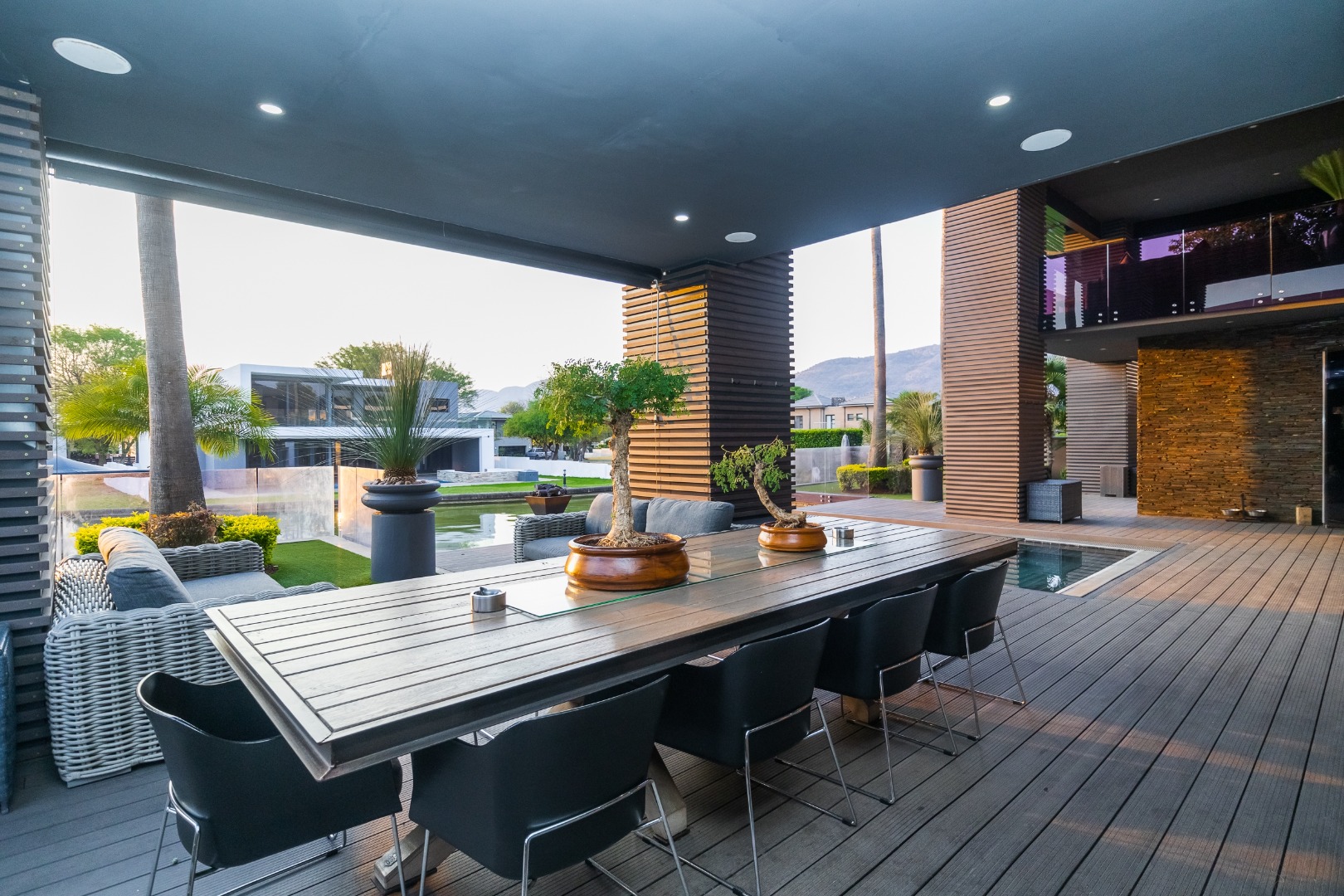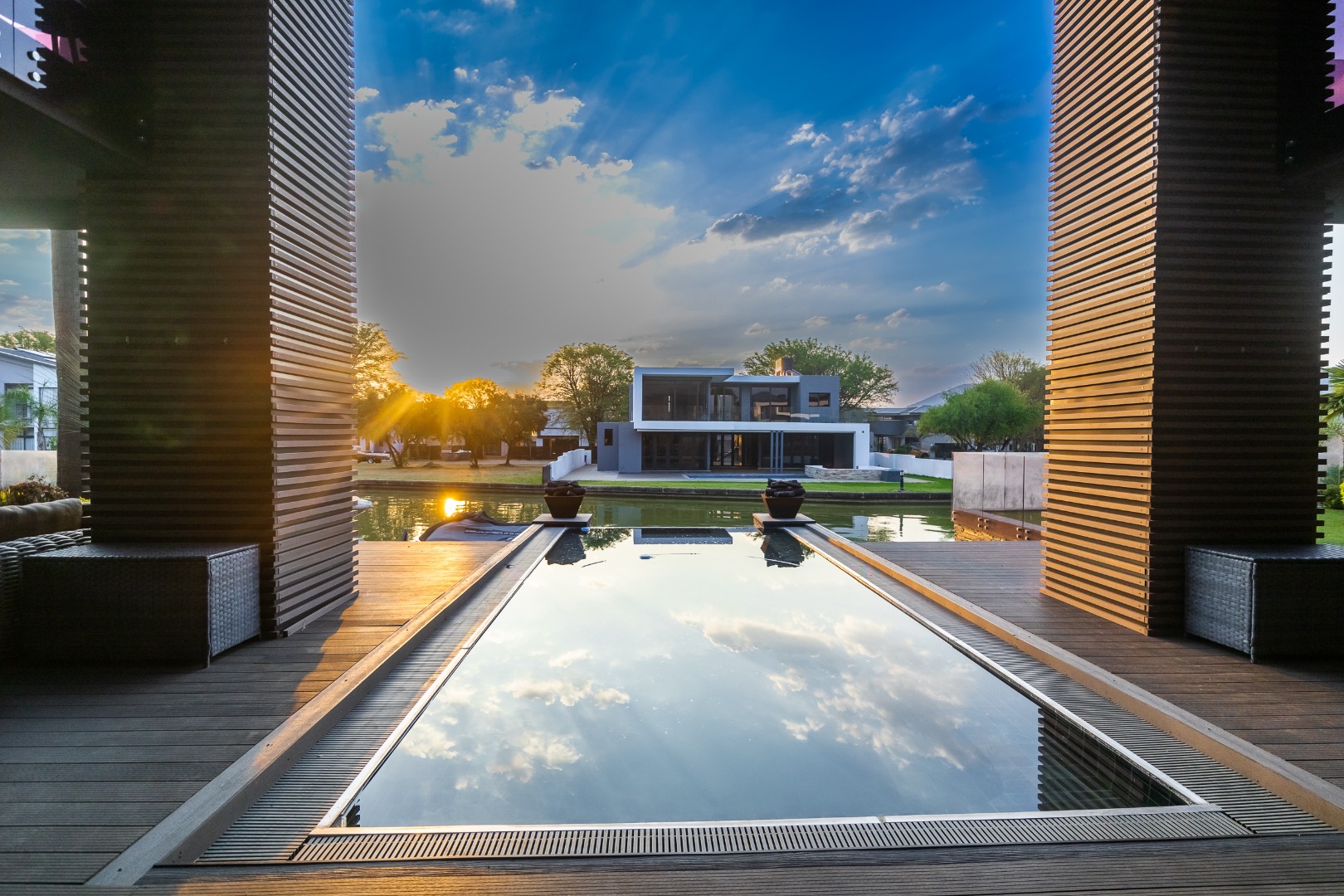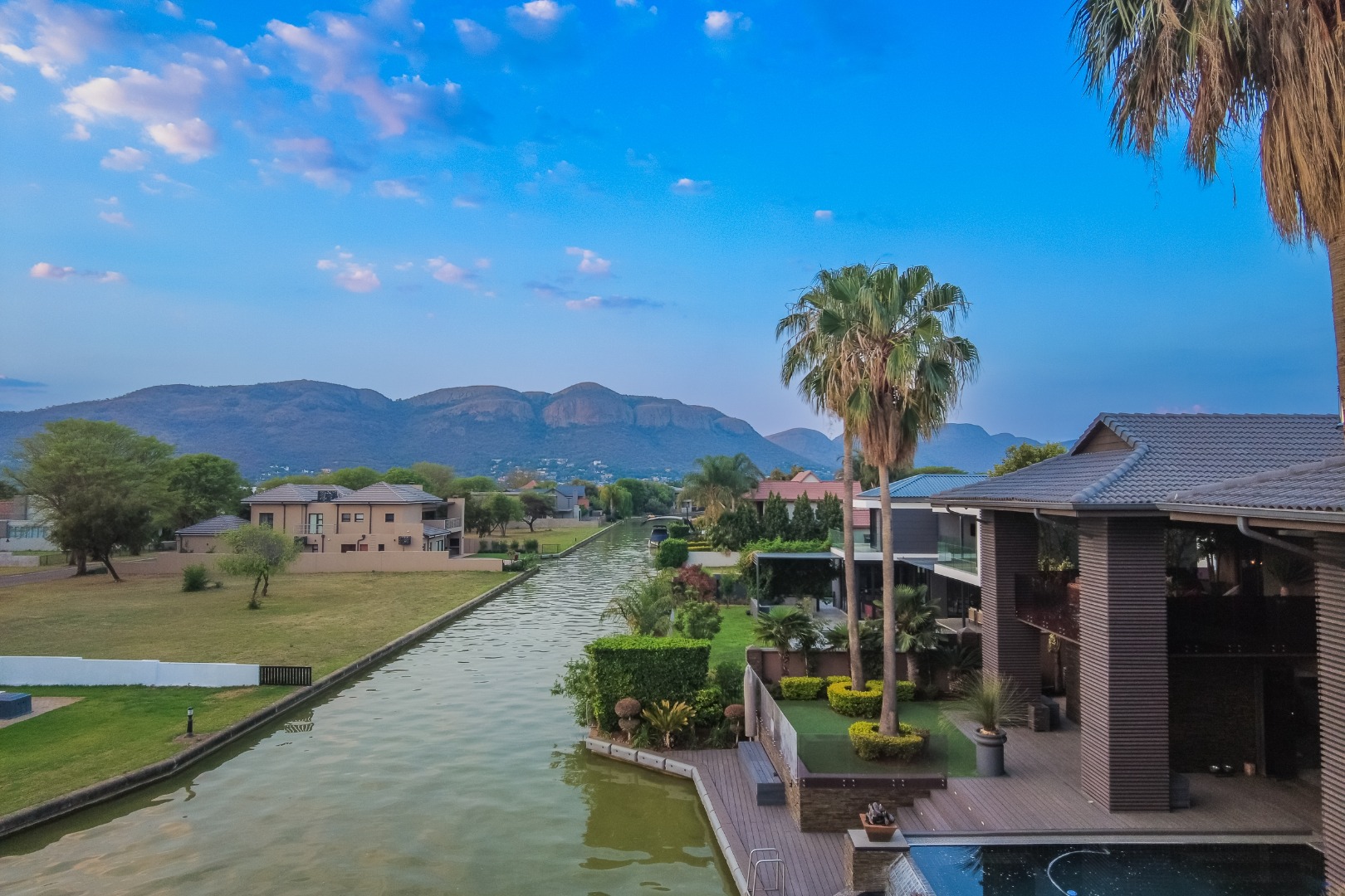 Experience refined elegance and sustainable luxury in this distinctive 5-bedroom masterpiece, perfectly positioned in the heart of The Islands Estate. This architectural triumph offers uninterrupted views of the shimmering canals and majestic mountain range, with expansive glass-fronted living spaces that welcome natural light and create a seamless flow between indoors and out. Multiple entertainment areas open onto a sophisticated wooden deck with an infinity pool that blends effortlessly into the horizon.