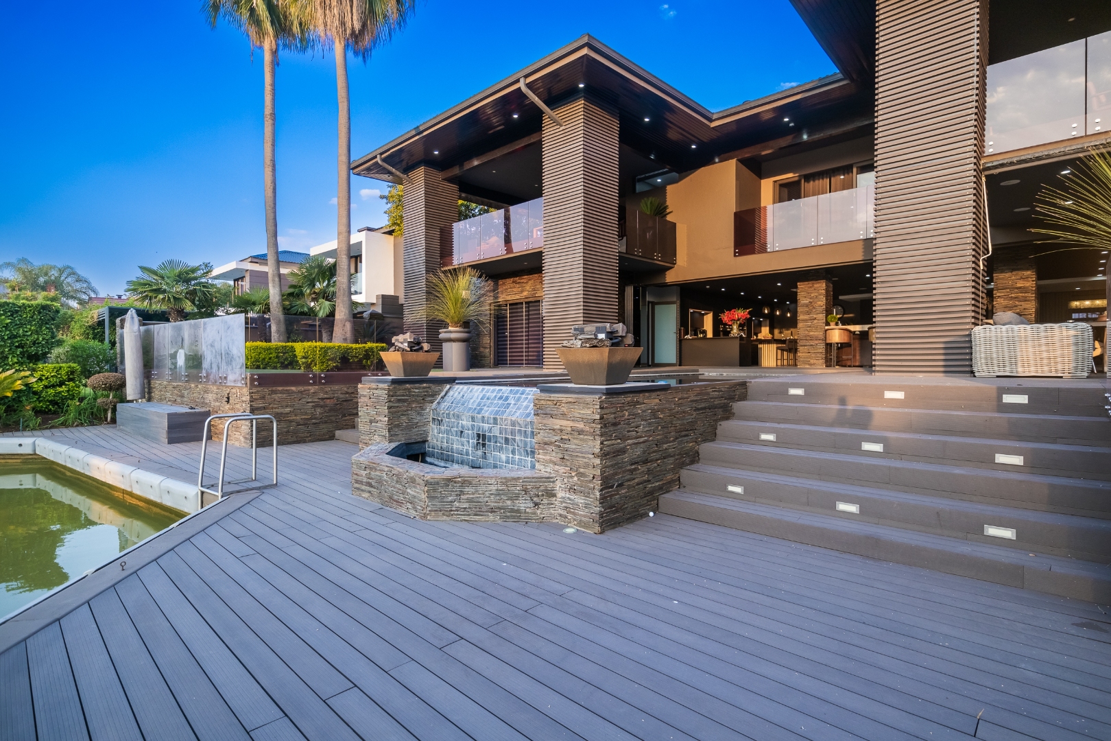 Experience refined elegance and sustainable luxury in this distinctive 5-bedroom masterpiece, perfectly positioned in the heart of The Islands Estate. This architectural triumph offers uninterrupted views of the shimmering canals and majestic mountain range, with expansive glass-fronted living spaces that welcome natural light and create a seamless flow between indoors and out. Multiple entertainment areas open onto a sophisticated wooden deck with an infinity pool that blends effortlessly into the horizon.