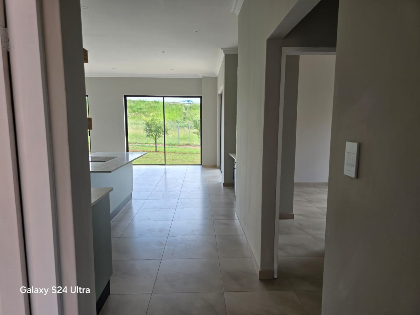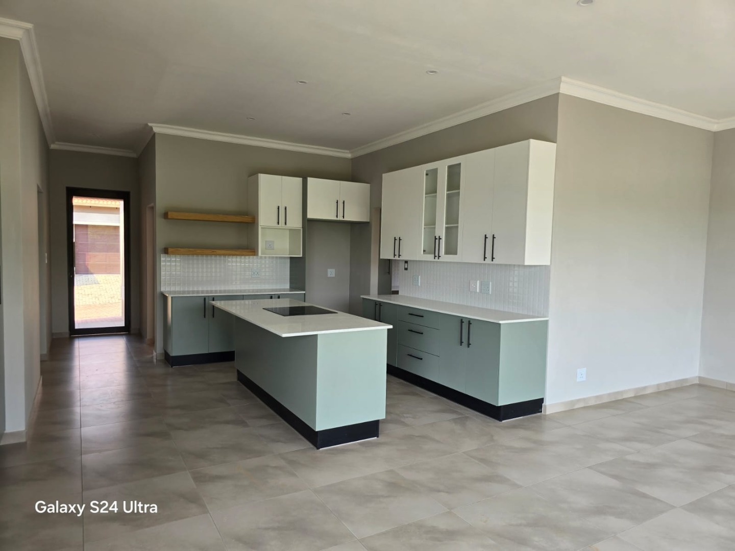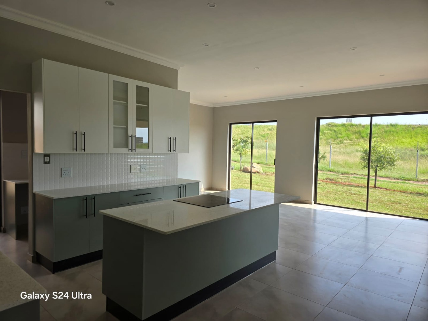 The open plan kitchen and living area opens onto a patio with a built-in braai. The double garage has direct access into the house.