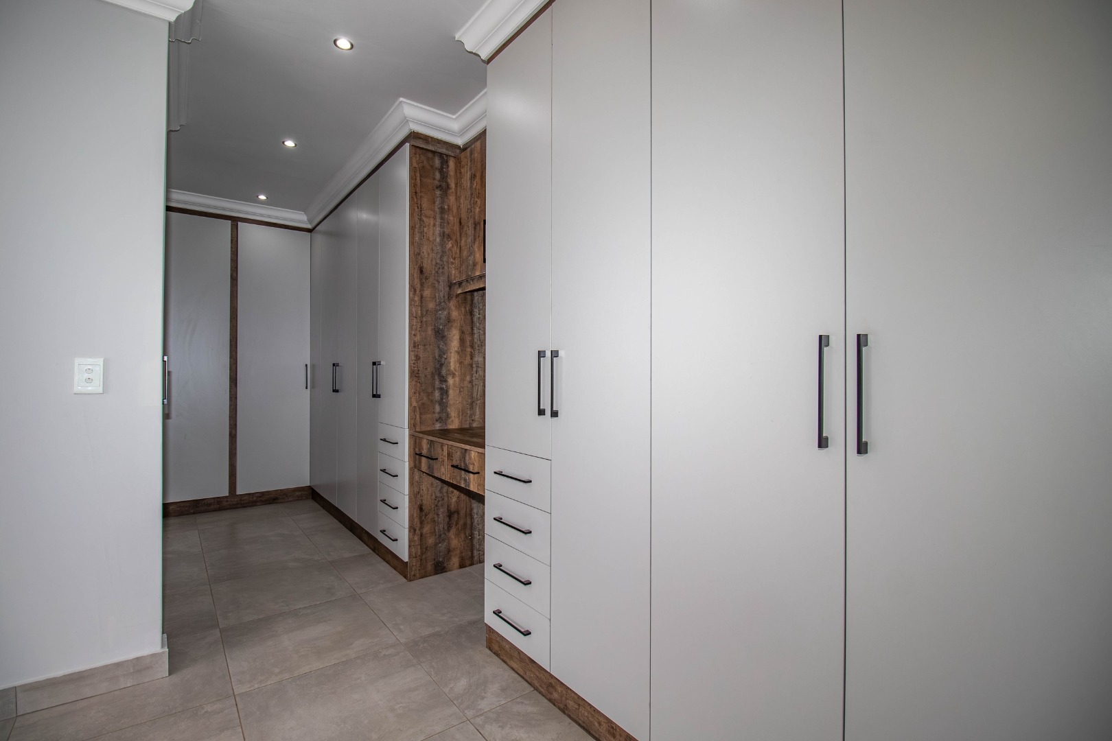 The expansive main bedroom on the upper level with balcony offers a walk-in designer dressing room oozing style and elegance, and a full en-suite bathroom.