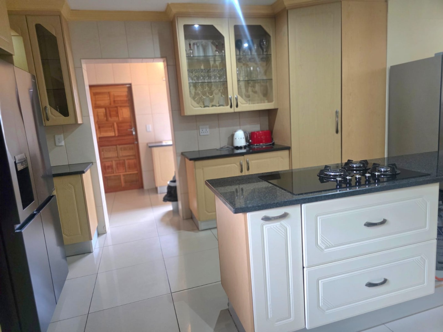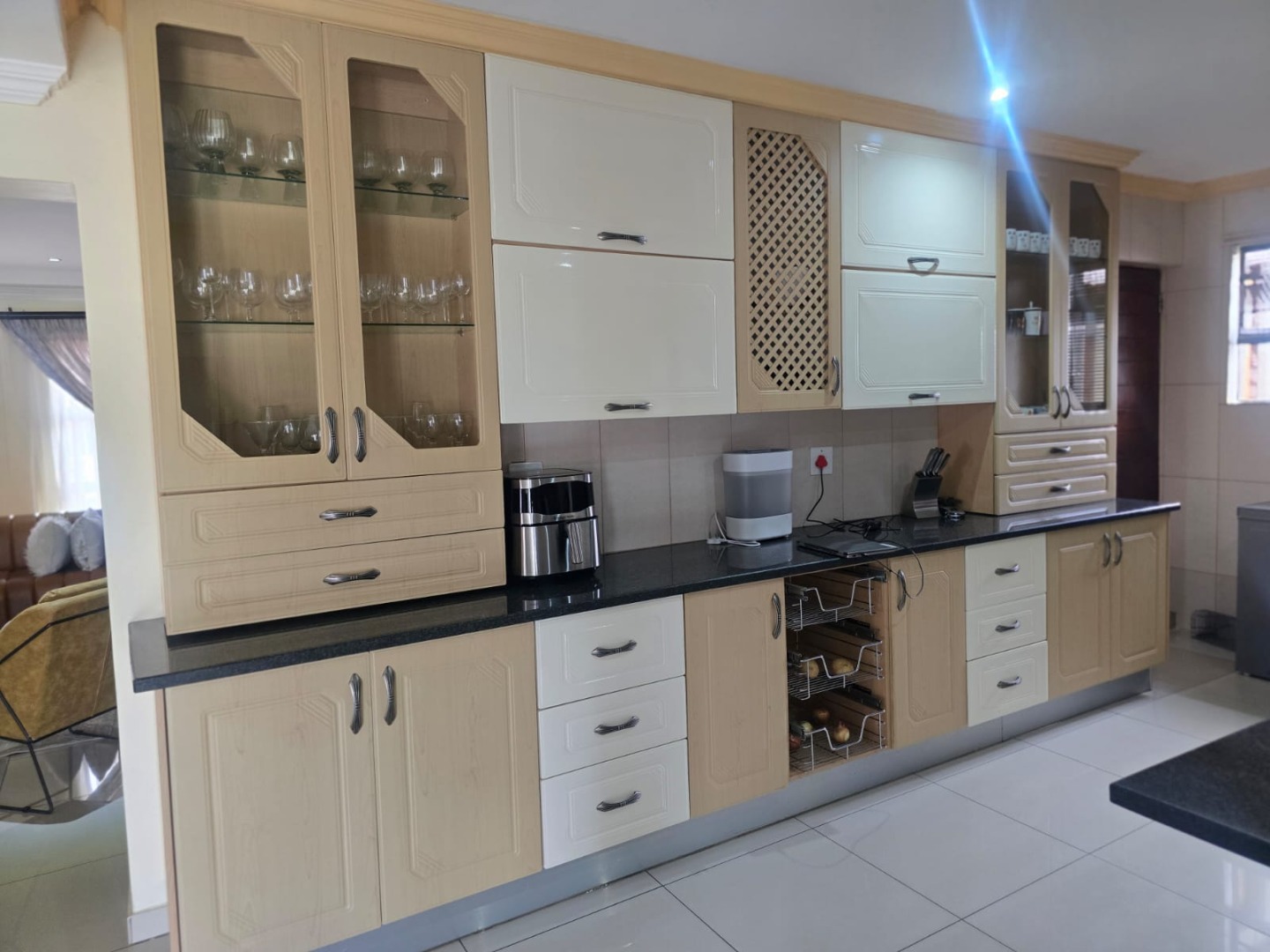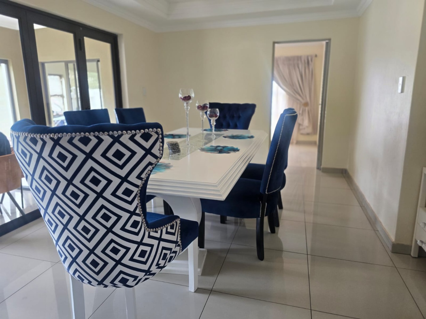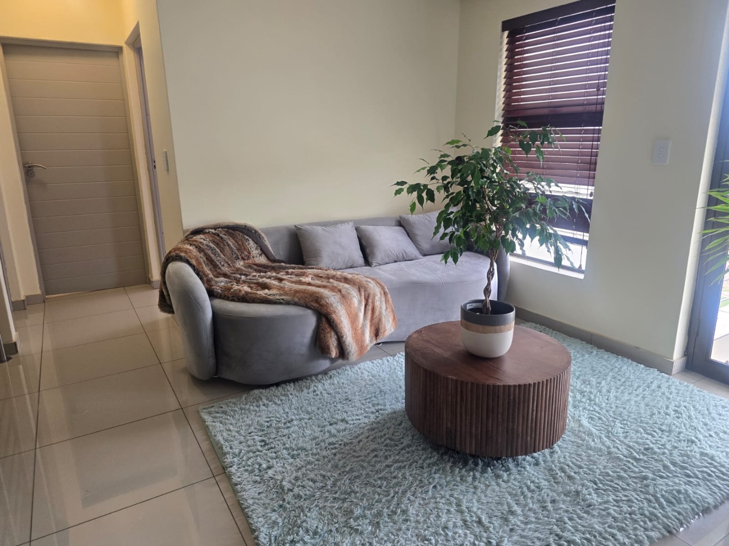 The property welcomes you with open-plan living and dining areas that flow effortlessly, creating a warm atmosphere. Additional to the two living areas is a separate lounge which offers a good privacy and space for intimate hosting of guests. The kitchen features ample cupboards and a separate scullery, designed for ease and functionality. Adjacent to that is a guest bedroom with a full en-suite bathroom.