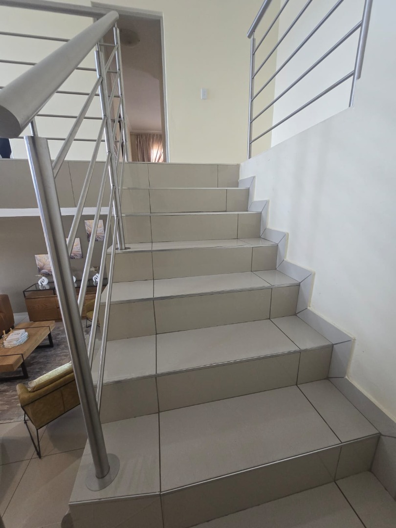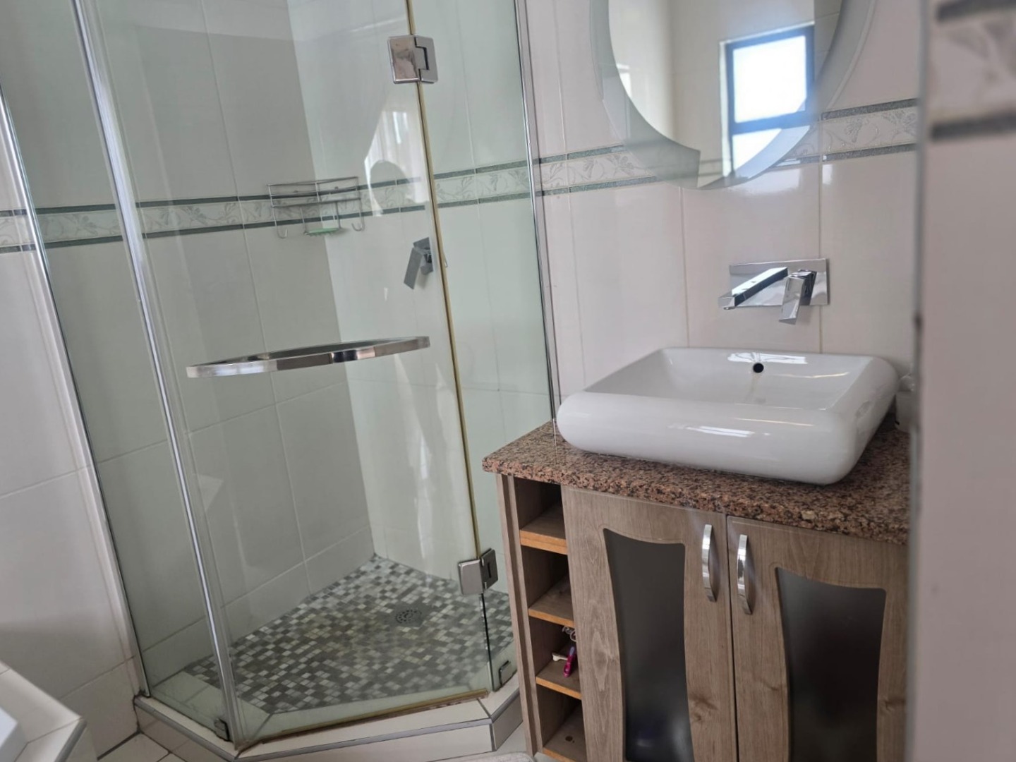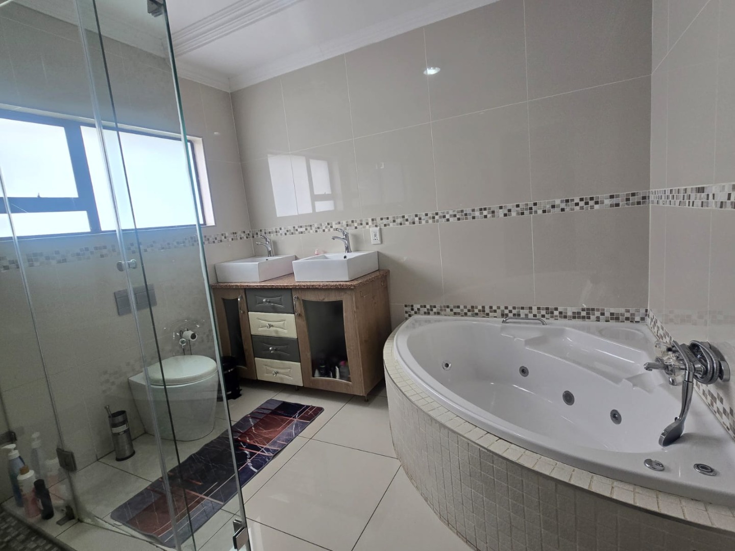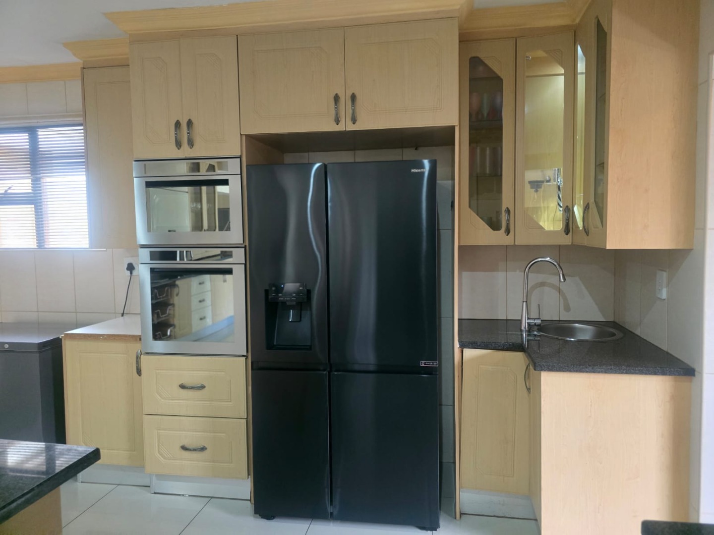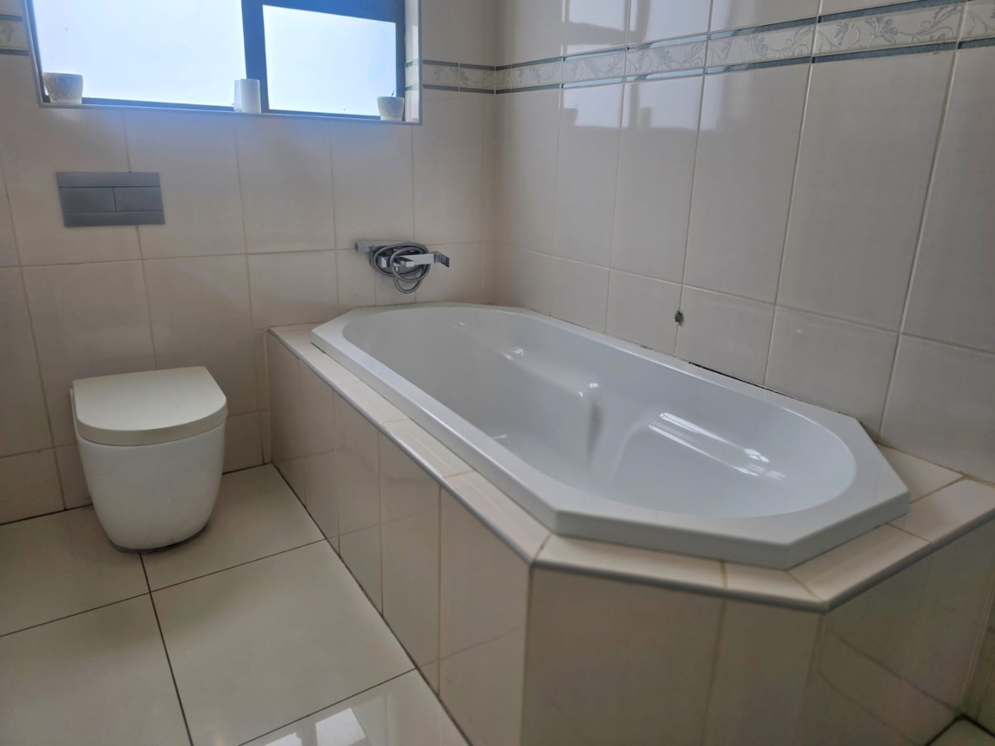 The property welcomes you with open-plan living and dining areas that flow effortlessly, creating a warm atmosphere. Additional to the two living areas is a separate lounge which offers a good privacy and space for intimate hosting of guests. The kitchen features ample cupboards and a separate scullery, designed for ease and functionality. Adjacent to that is a guest bedroom with a full en-suite bathroom.