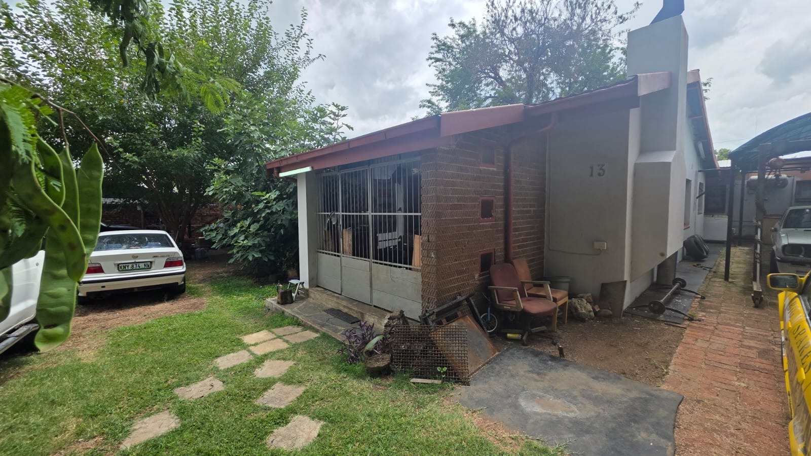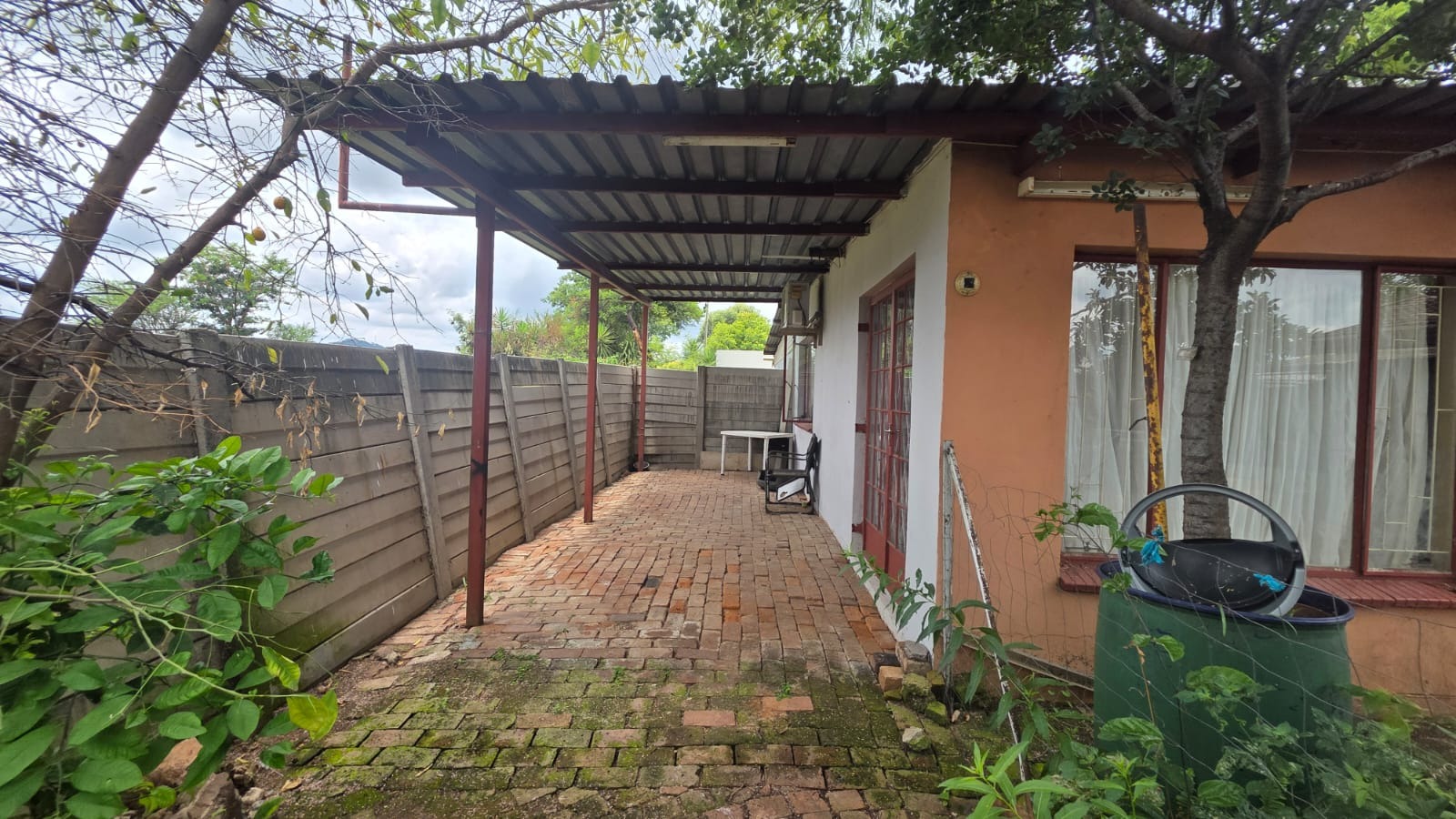 Outside, you’ll find a garden with mature trees, paving, and a covered patio ideal for unwinding or entertaining. With four parking spaces, solar panels for added efficiency, and security features including a fence, access gate, and burglar bars, the property offers a solid foundation. In need of some TLC, this fixer-upper presents a wonderful opportunity to renovate and personalise, turning it into a home that truly reflects your style.