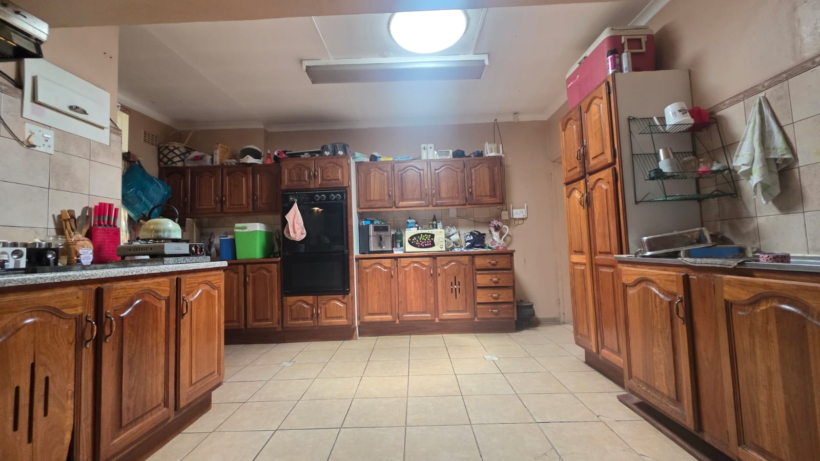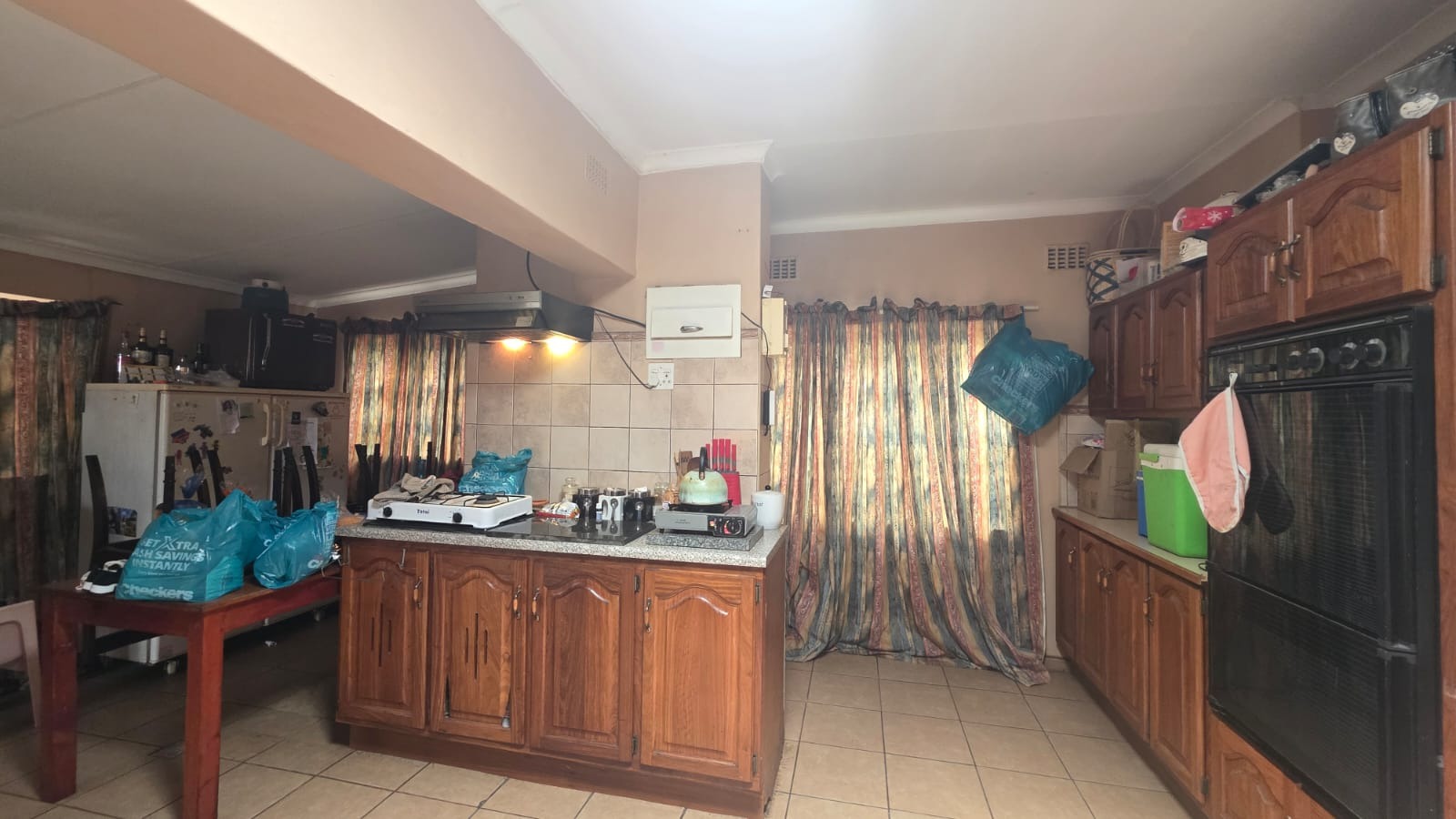 Located in the heart of Brits Central, this residential property offers convenient access to local amenities and everyday essentials, making it a practical choice for families. Set on a generous 731 sqm erf, the home features a functional layout with three bedrooms and two bathrooms, a separate dining room, and a comfortable lounge for relaxed living. The kitchen provides ample storage with extensive wooden cabinetry, granite-style countertops, tiled flooring, a built-in double oven, and an extractor fan. One bedroom includes air conditioning, while the bathrooms offer both a shower and bathtub for added convenience.