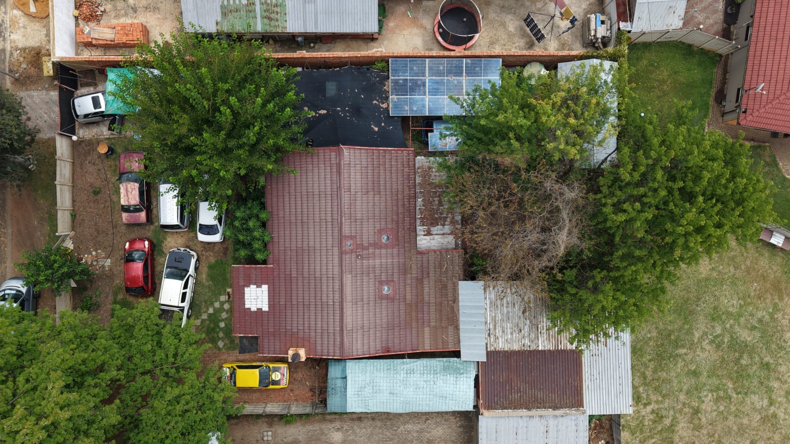 Outside, you’ll find a garden with mature trees, paving, and a covered patio ideal for unwinding or entertaining. With four parking spaces, solar panels for added efficiency, and security features including a fence, access gate, and burglar bars, the property offers a solid foundation. In need of some TLC, this fixer-upper presents a wonderful opportunity to renovate and personalise, turning it into a home that truly reflects your style.
