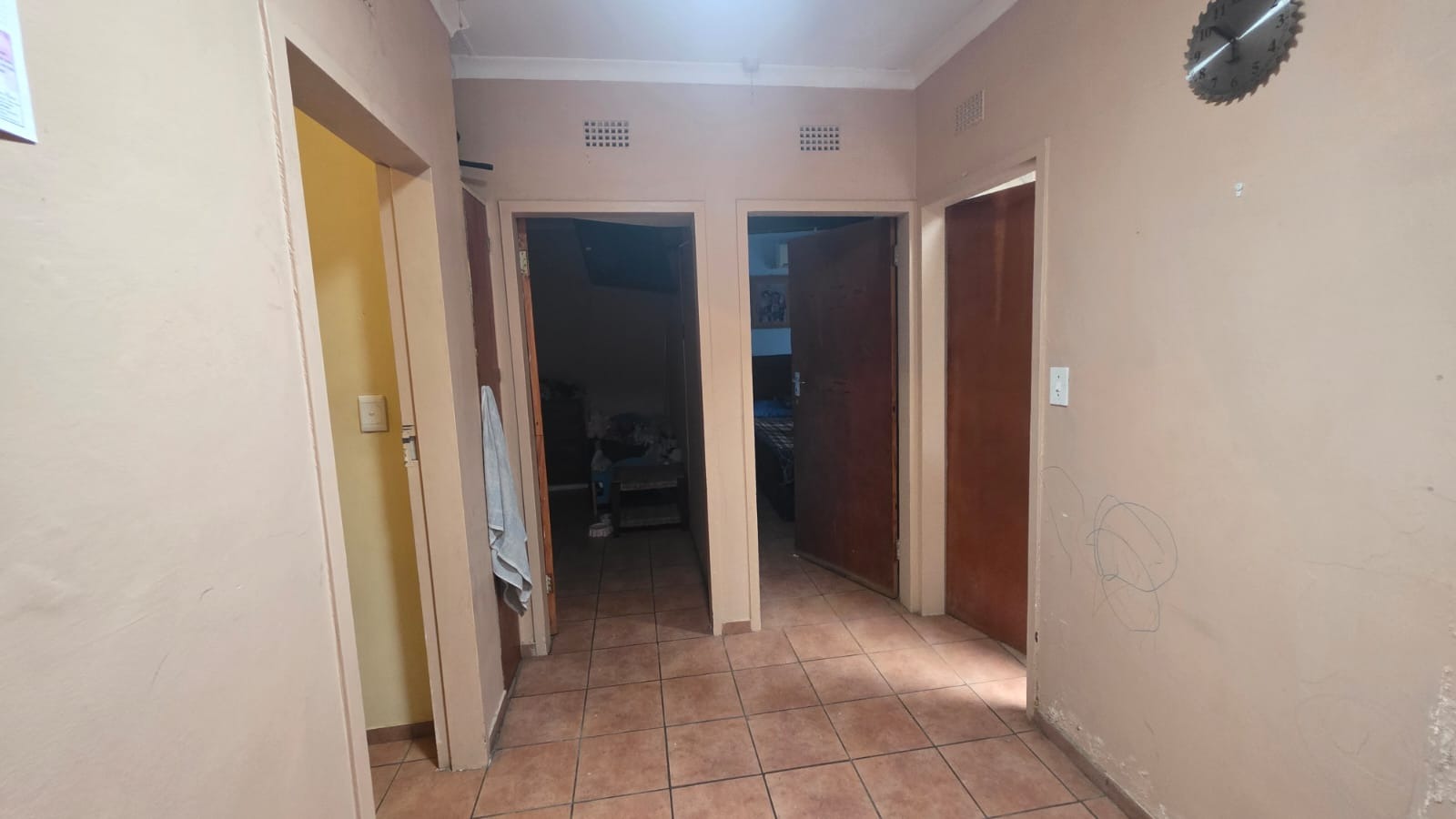 Located in the heart of Brits Central, this residential property offers convenient access to local amenities and everyday essentials, making it a practical choice for families. Set on a generous 731 sqm erf, the home features a functional layout with three bedrooms and two bathrooms, a separate dining room, and a comfortable lounge for relaxed living. The kitchen provides ample storage with extensive wooden cabinetry, granite-style countertops, tiled flooring, a built-in double oven, and an extractor fan. One bedroom includes air conditioning, while the bathrooms offer both a shower and bathtub for added convenience.