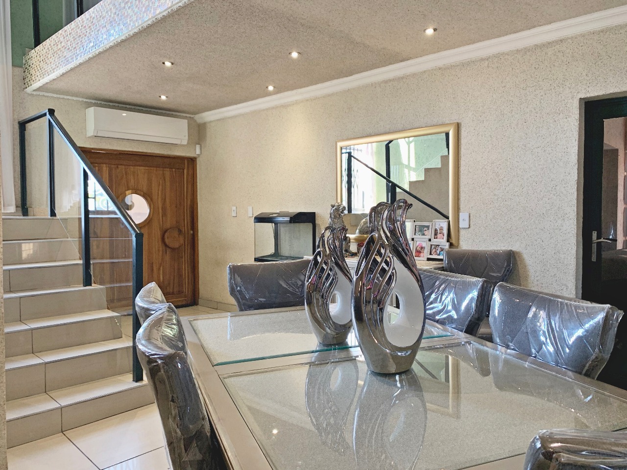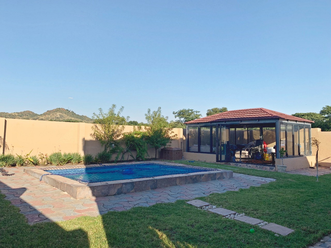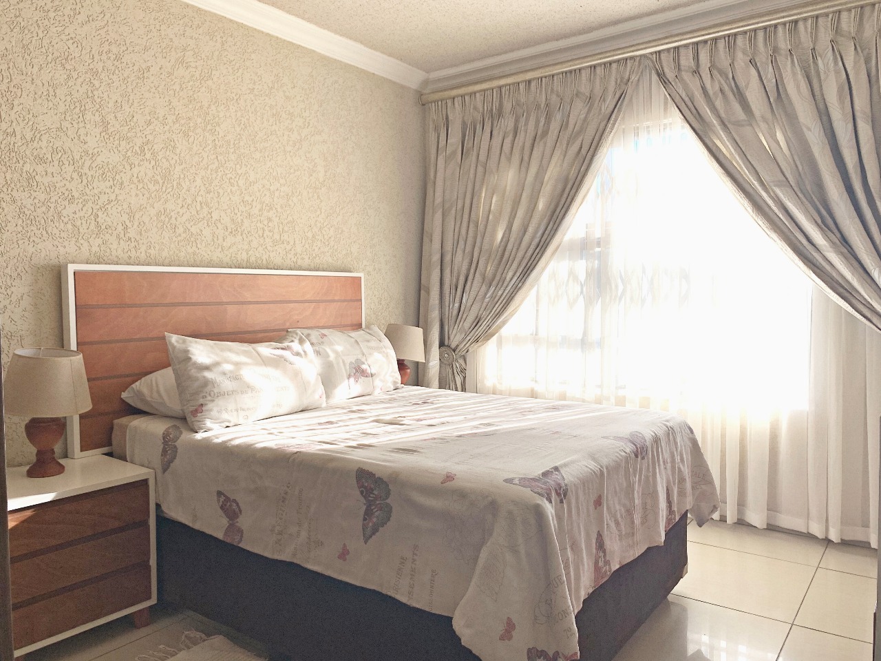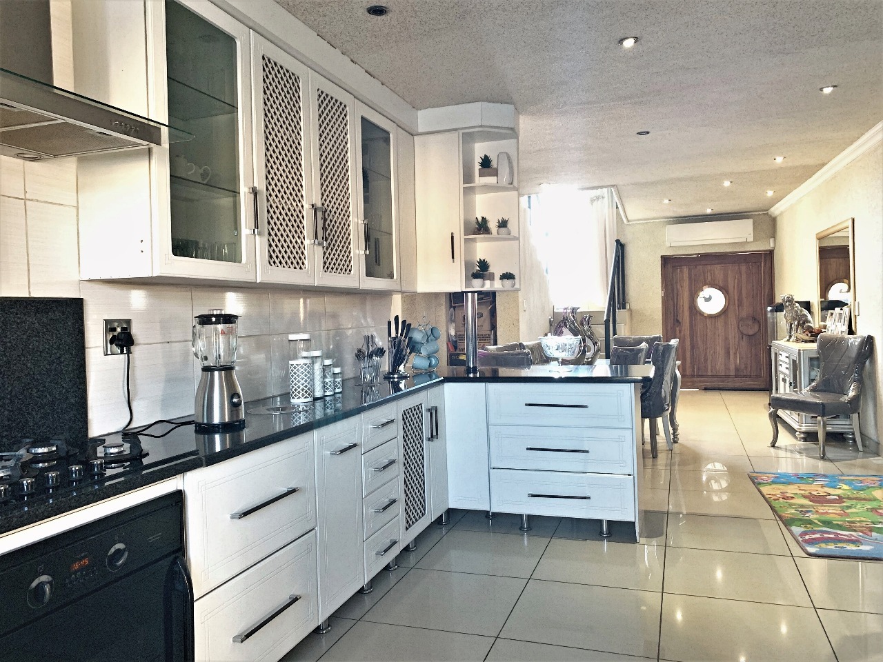 Great value for money in a Security complex, This Modern double-story 4 spacious Bedroom Home, has 3 beautiful bathrooms with a closed entertaining area, a built-in braai and sparkling pool, and a very spacious garden, perfect for a family with kids. A very spacious modern kitchen with granite tops and a separate scullery leads to the open-plan dining area and lounge. A double garage leads directly into the house with a double carport, the property is fully walled for privacy, and the complex is near the centrer of Brits, schools, and shopping centres. This is a steal.