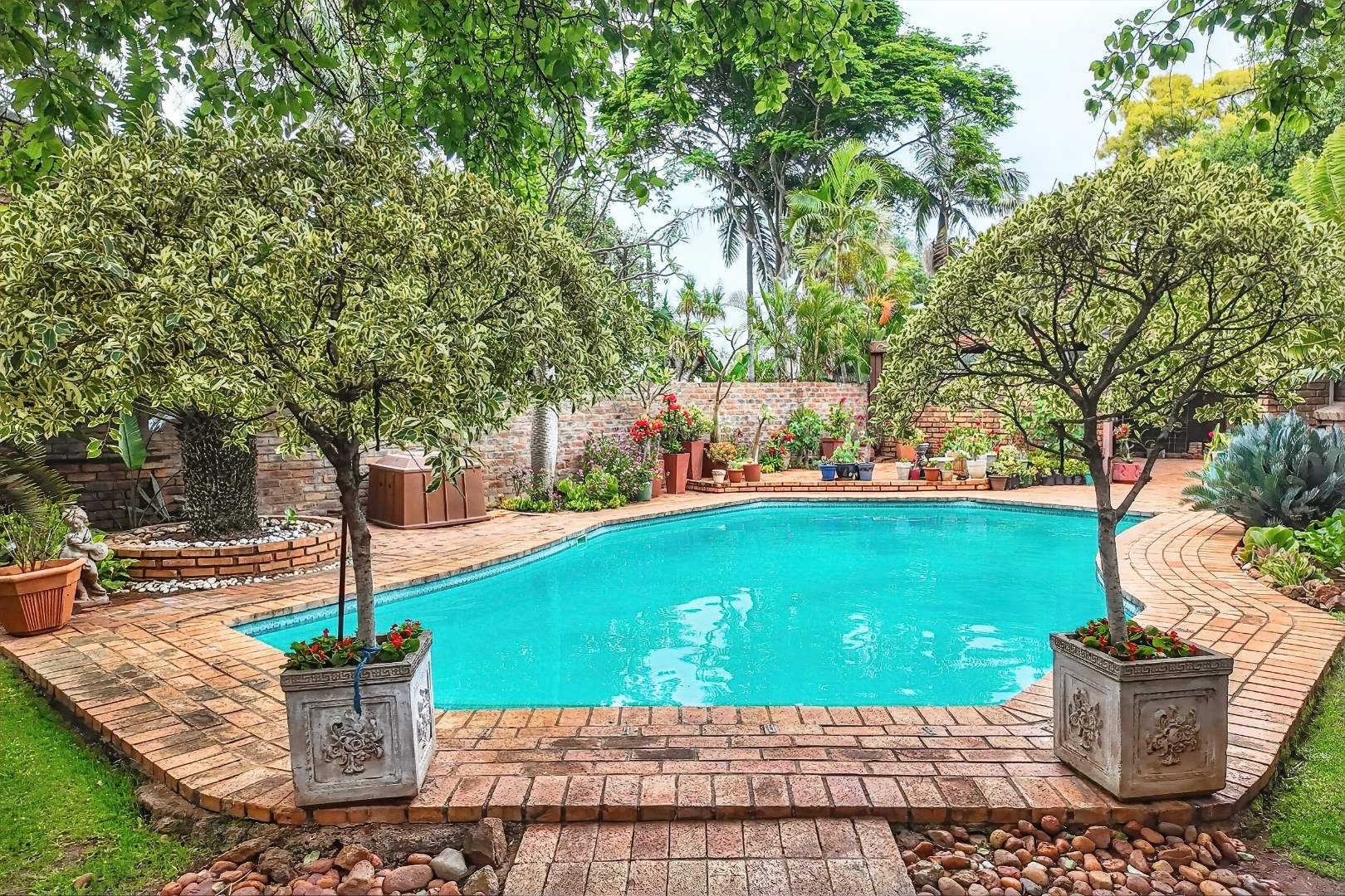 The home offers three separate entrances: one ideal for a home office or consulting rooms, a formal main entrance, and a third leading directly into the living areas. The swimming pool area features a stunning granite table with a kiaat base, creating a perfect outdoor entertainment space.