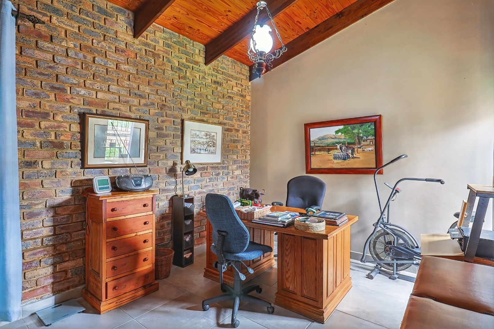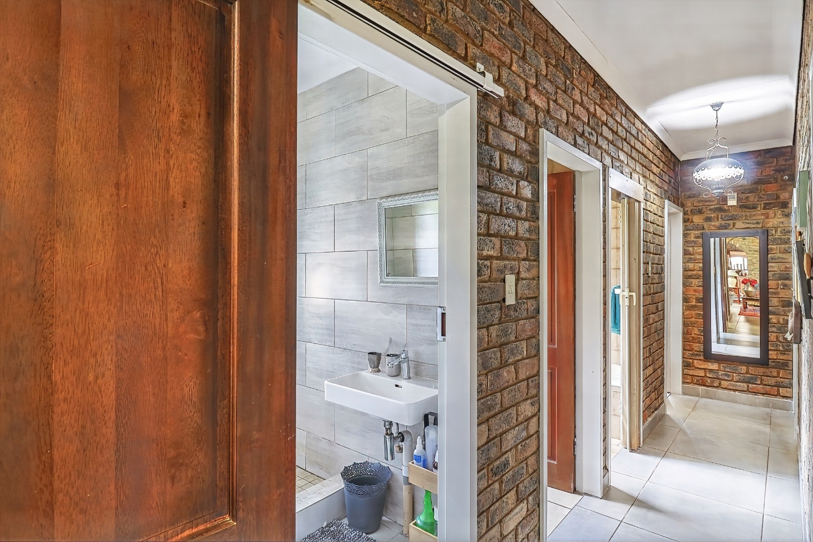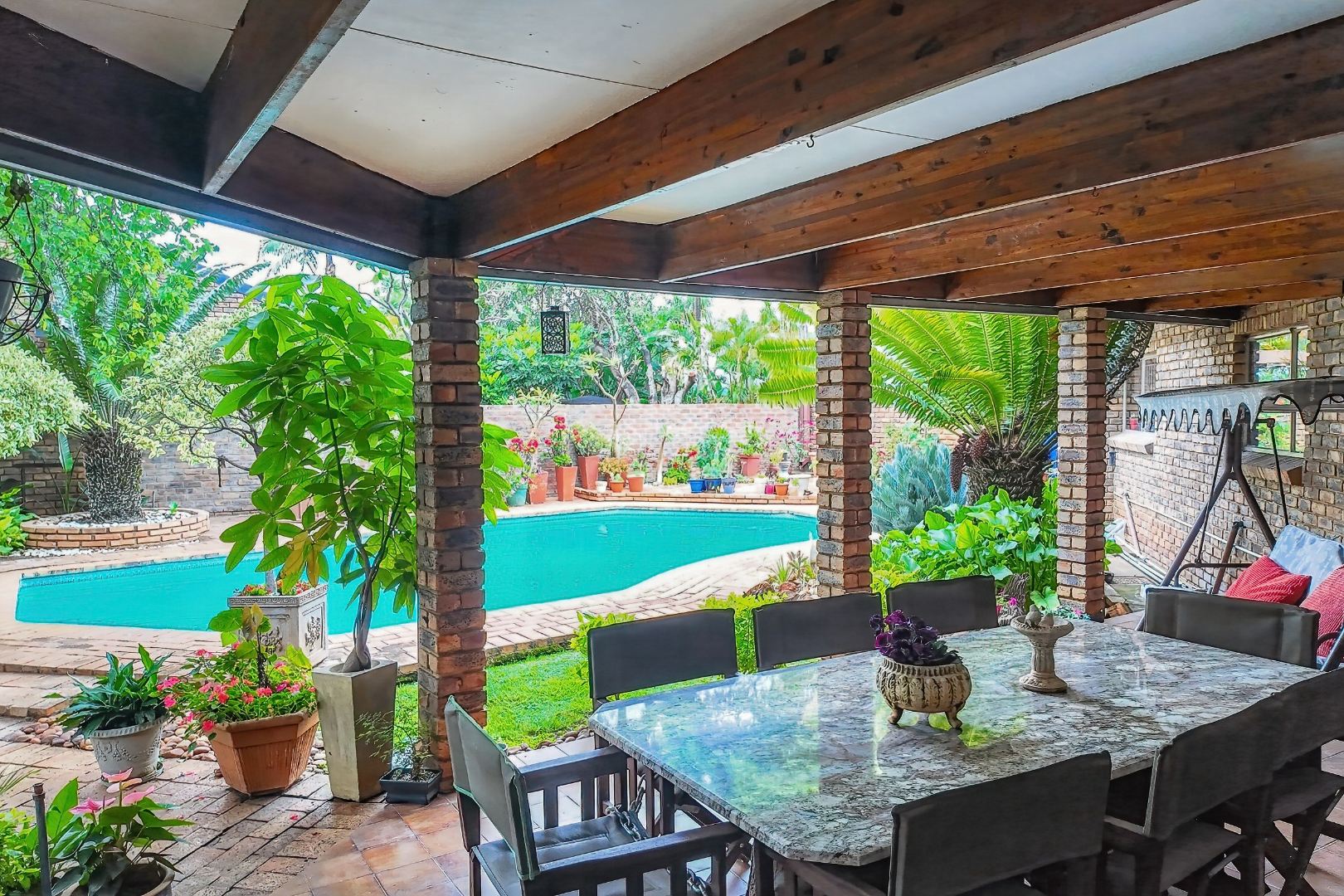 The home offers three separate entrances: one ideal for a home office or consulting rooms, a formal main entrance, and a third leading directly into the living areas. The swimming pool area features a stunning granite table with a kiaat base, creating a perfect outdoor entertainment space.
