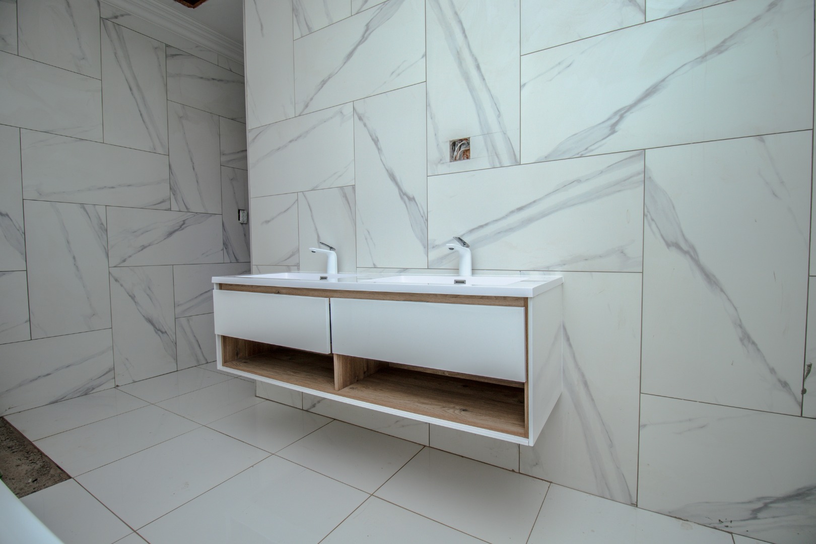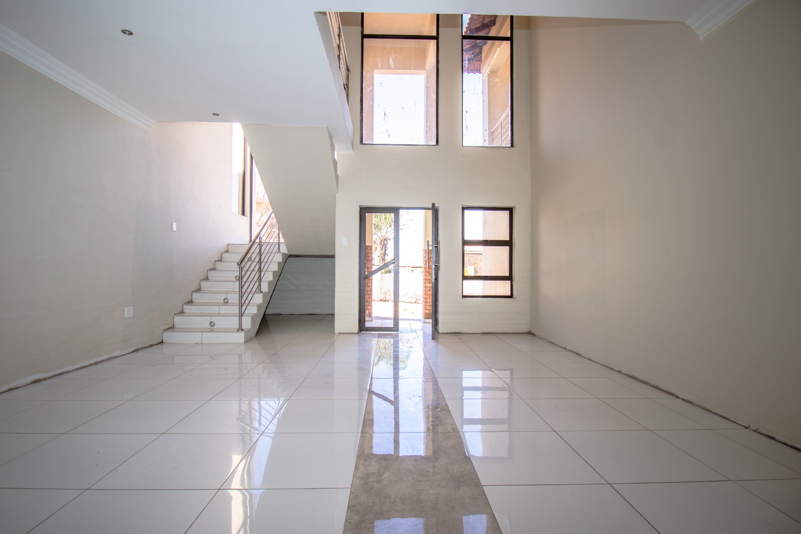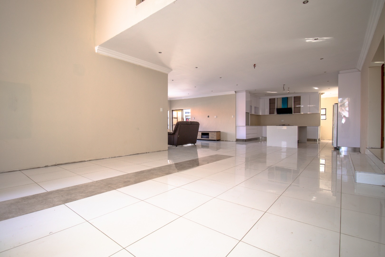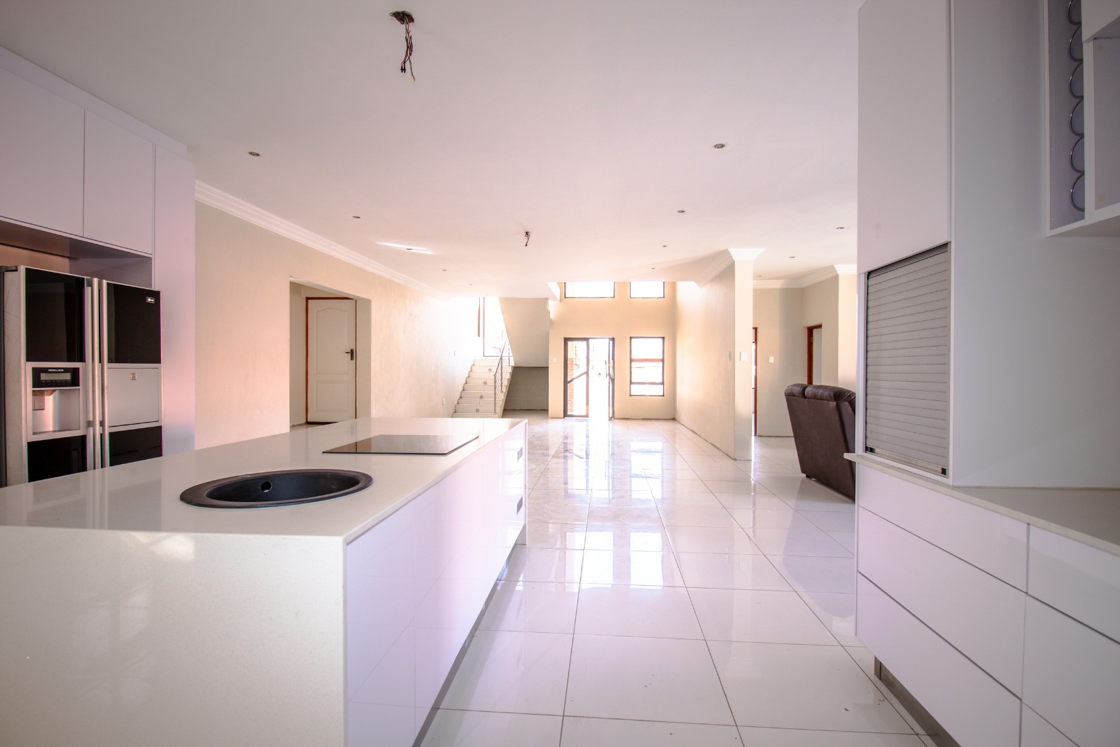 The property boasts expansive open-plan living areas, private lounge, and a stunning kitchen featuring a central island, separate scullery, and premium finishes throughout. A guest bedroom with an en-suite bathroom is conveniently located on the ground floor for added privacy and comfort. The property remains incomplete in certain areas, offering an opportunity for the new owner to add their personal touch.