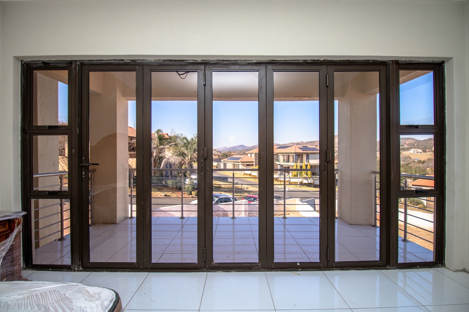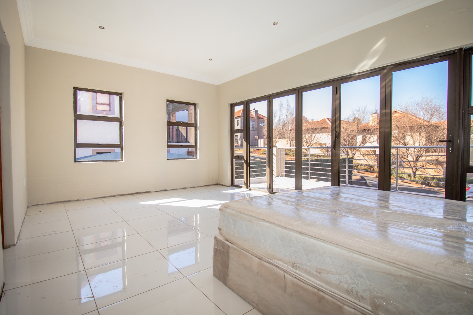 Upstairs, you're welcomed into a large pyjama lounge with a kitchenette—ideal for relaxed family evenings. The upper- level hosts four bedrooms, two of which are en-suite, the other two bedrooms share a bathroom. Three of the four bedrooms boast direct access to balconies with picturesque views. The home also offers a dedicated office, ideal for a productive work-from-home lifestyle, along with a versatile space that can be used as a compact gym, an extra bedroom, or adapted to your personal needs.