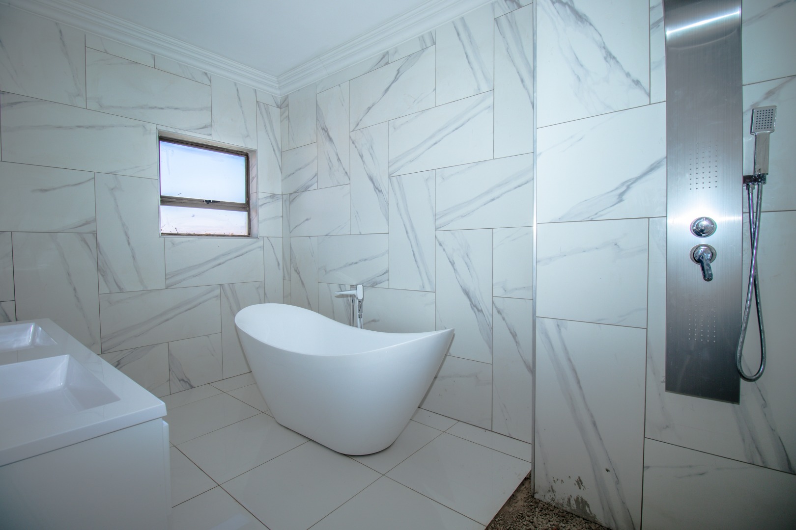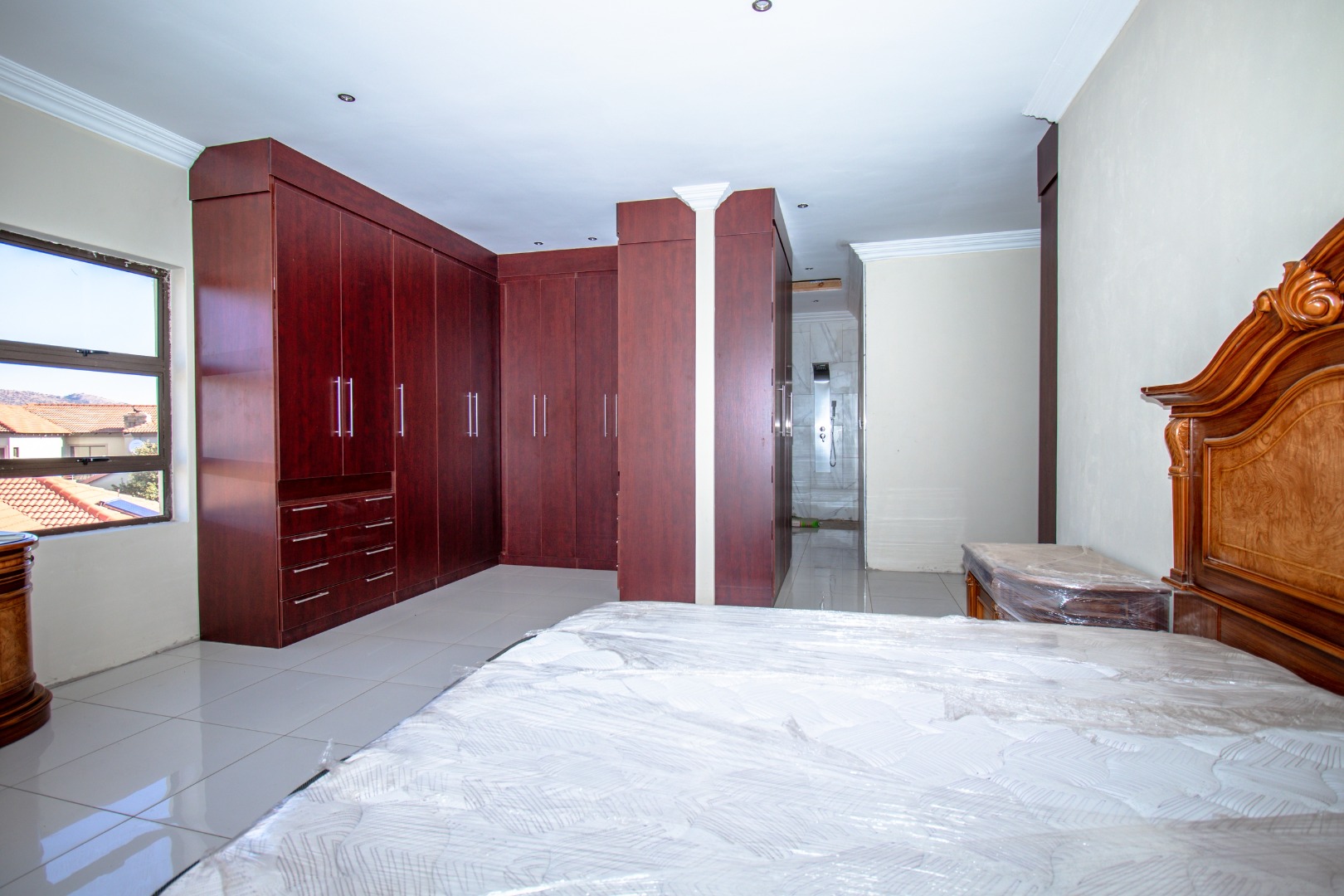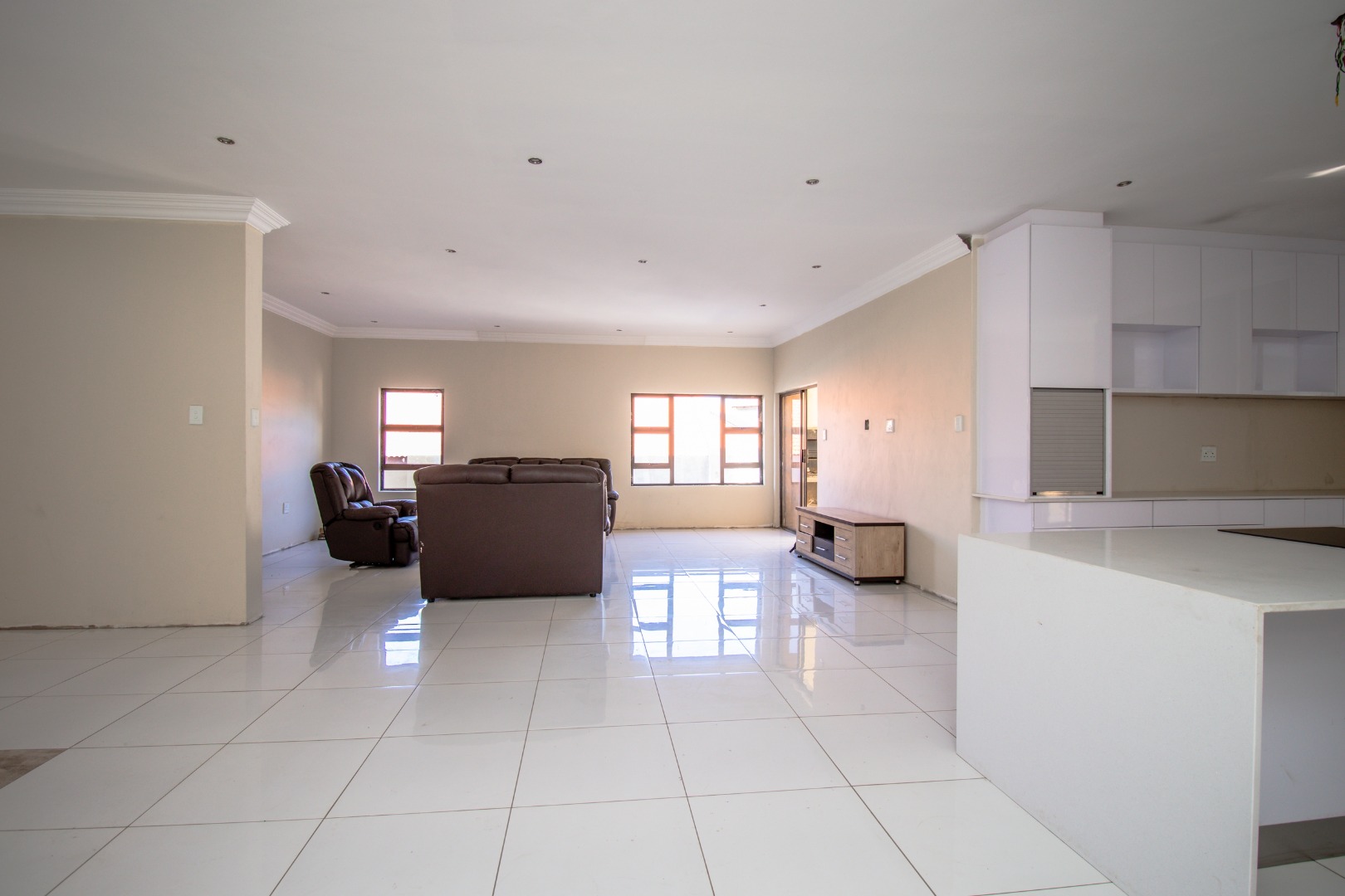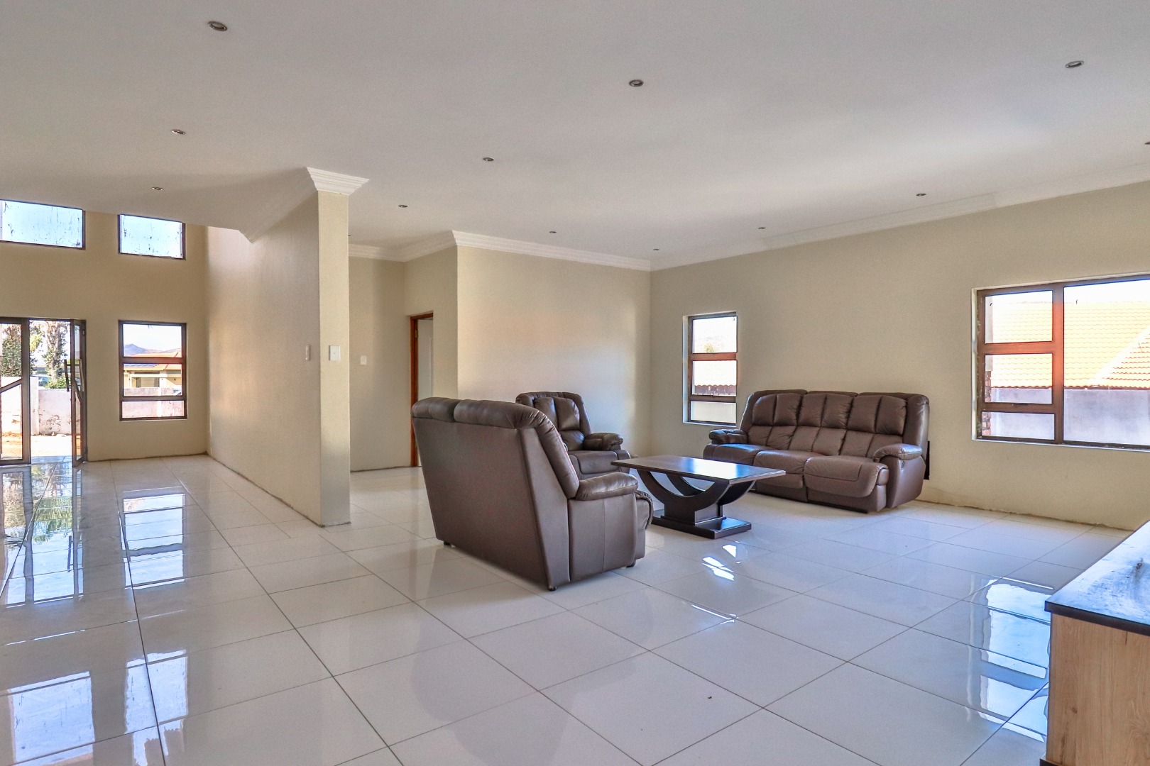 The property boasts expansive open-plan living areas, private lounge, and a stunning kitchen featuring a central island, separate scullery, and premium finishes throughout. A guest bedroom with an en-suite bathroom is conveniently located on the ground floor for added privacy and comfort. The property remains incomplete in certain areas, offering an opportunity for the new owner to add their personal touch.