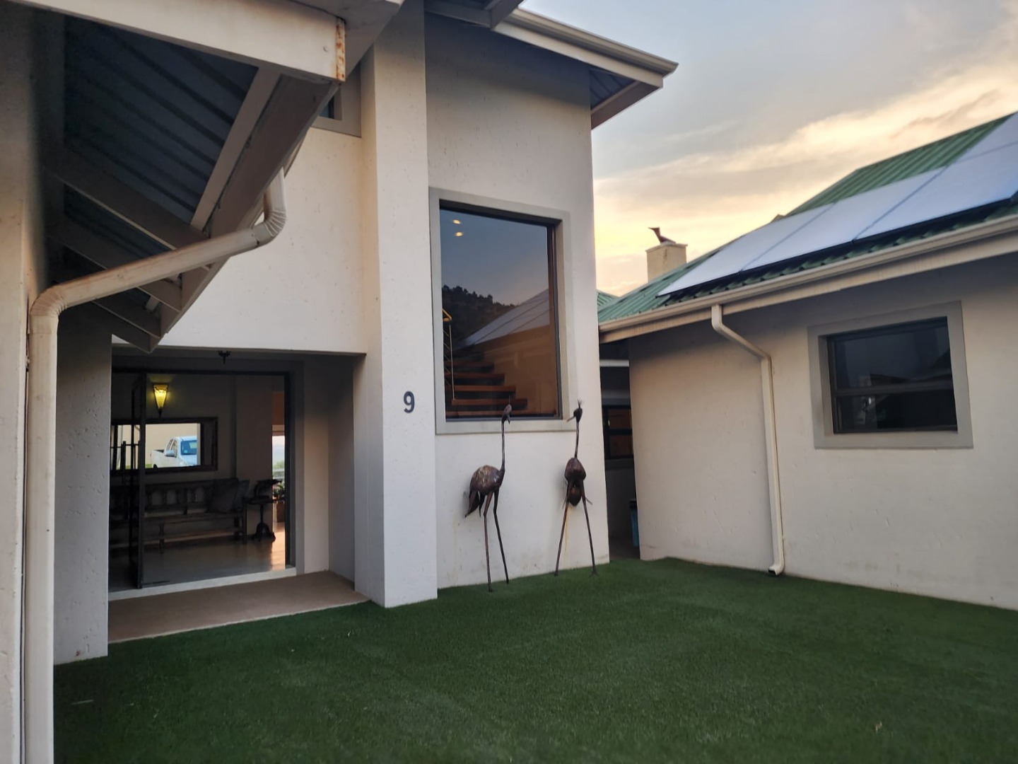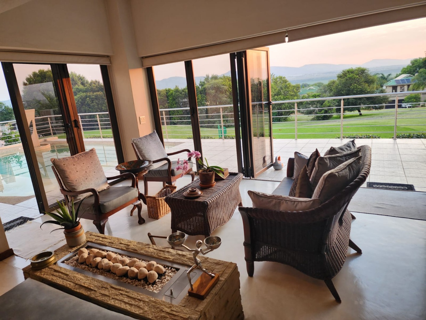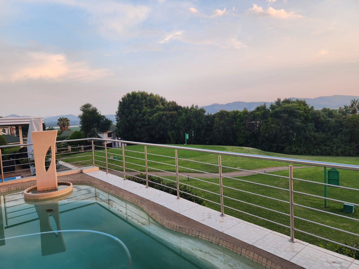 The interior flows effortlessly to expansive outdoor living, where a spacious patio and deck with built-in braai invite relaxed entertaining while taking in panoramic views of the golf course, mountains and lake. An elevated swimming pool with a decorative fountain adds to the luxury. Additional features include two garages, a landscaped garden, paving, alarm system and access gate. Sustainability is well covered with 12 solar panels, a solar geyser, battery inverter, water filtering system and fibre connectivity. Located in a quiet cul-de-sac within a secure golf estate and marina, this home offers a refined lifestyle with scenic beauty and leisure at your doorstep.