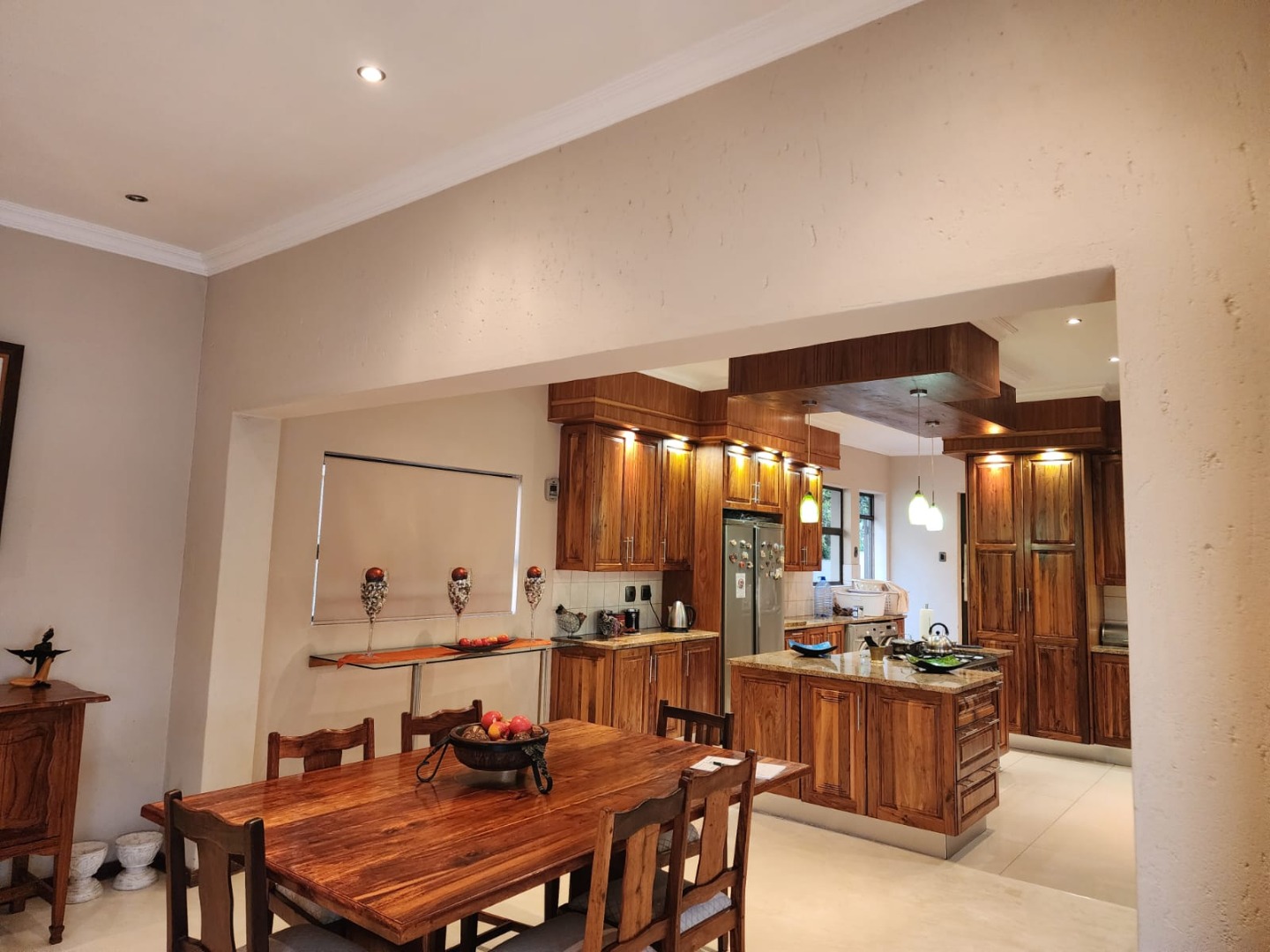 Discover this exceptional 3-bedroom, 3-bathroom home in the prestigious Caribbean Beach Club, Hartbeespoort. Set on a 500 sqm erf with a generous 302 sqm floor size, the home features a sophisticated open-plan layout that seamlessly connects the living areas. The modern kitchen offers dark wood cabinetry, granite countertops and a large central island, while a built-in bar, cosy fireplace, entrance hall and dedicated dining room make this home ideal for both everyday living and entertaining. All three bedrooms are well-sized, with one en-suite, and the home is fitted with air conditioning and modern roller blinds for comfort and style.