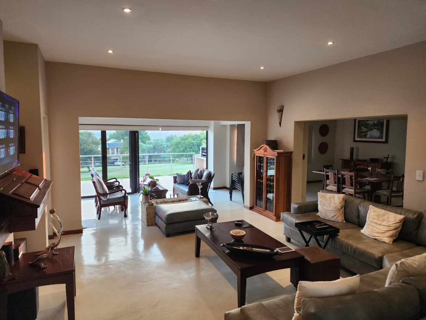 Discover this exceptional 3-bedroom, 3-bathroom home in the prestigious Caribbean Beach Club, Hartbeespoort. Set on a 500 sqm erf with a generous 302 sqm floor size, the home features a sophisticated open-plan layout that seamlessly connects the living areas. The modern kitchen offers dark wood cabinetry, granite countertops and a large central island, while a built-in bar, cosy fireplace, entrance hall and dedicated dining room make this home ideal for both everyday living and entertaining. All three bedrooms are well-sized, with one en-suite, and the home is fitted with air conditioning and modern roller blinds for comfort and style.