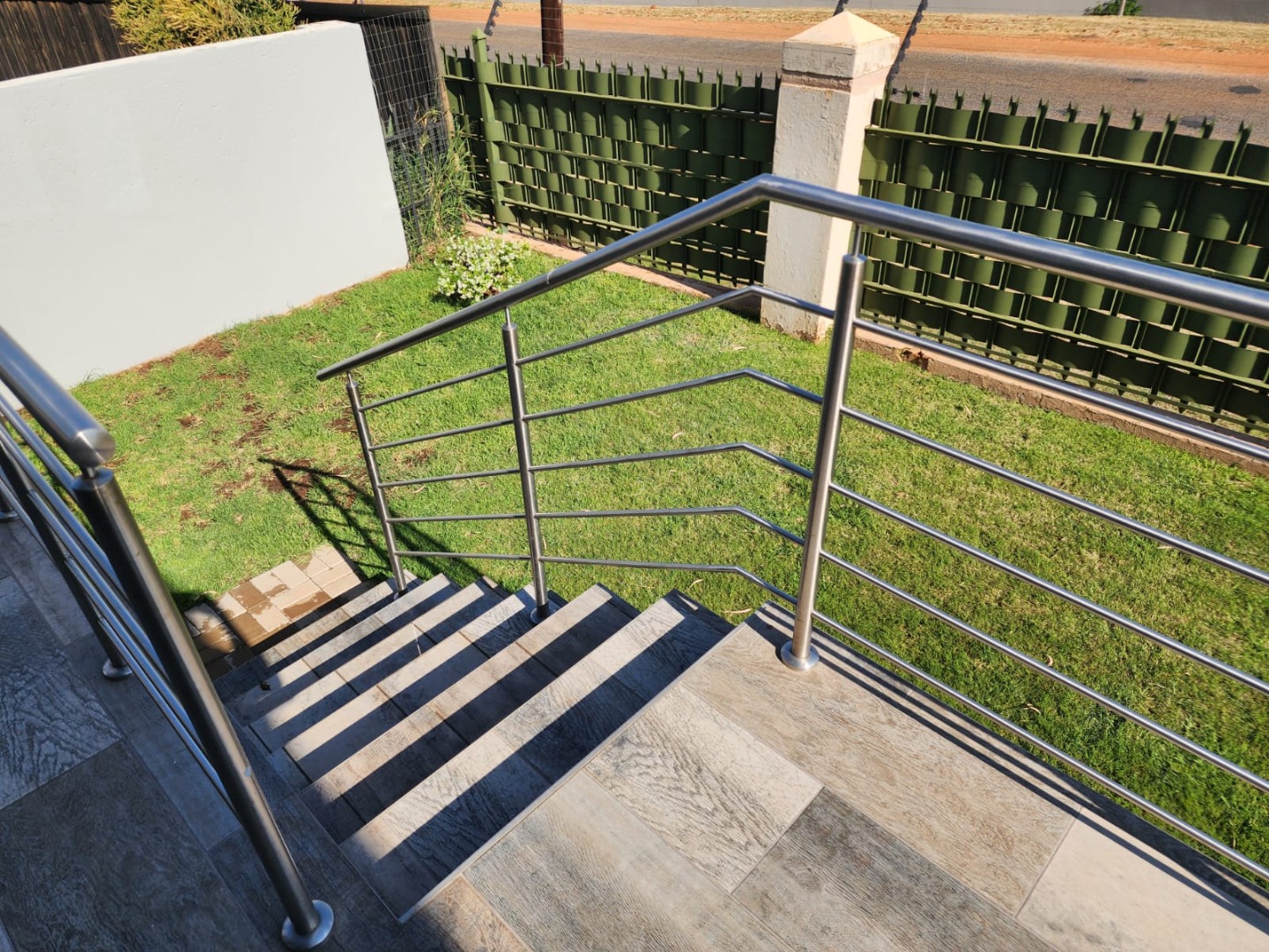 Double lock up garage, 3 bedroom, 3 bathroom, open plan kitchen, lounge, dining areas and a study corner makes the home complete. The covered braai area plus a right sized pool on the side, enhances the entertainment experience in the home.