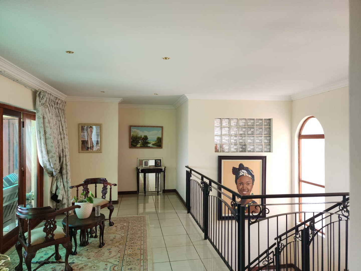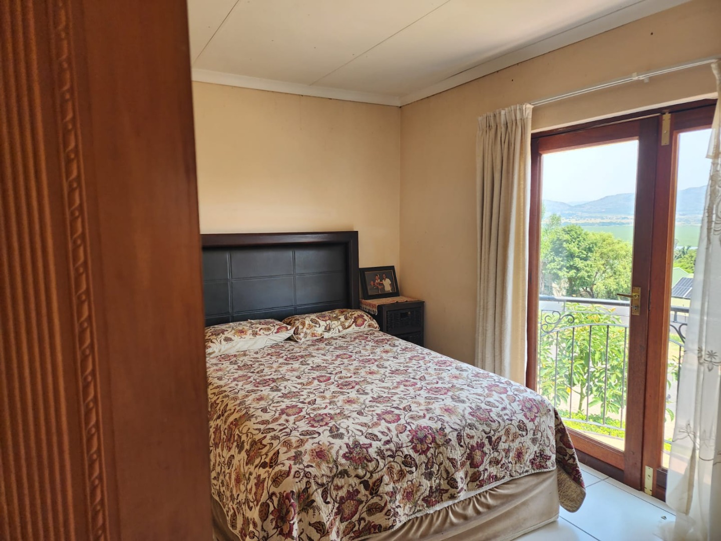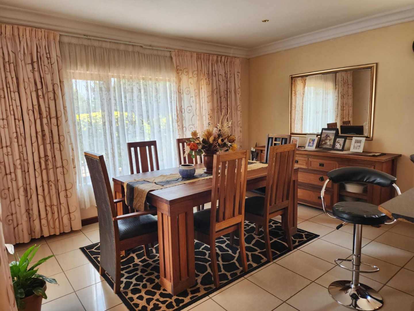 Discover this inviting 3-bedroom, 2-bathroom home set within the secure Kosmos Ridge estate in Hartbeespoort. The property offers excellent kerb appeal with distinctive architecture, wrought-iron railings, a paved brick driveway, and a beautifully maintained tropical garden. Inside, generous living areas include two lounges, a dining room, and a family TV room, all tiled and enhanced by crown moulding, large windows, and a cosy fireplace. An enclosed veranda captures panoramic views of the treed surroundings and distant hills, ideal for relaxing or entertaining.