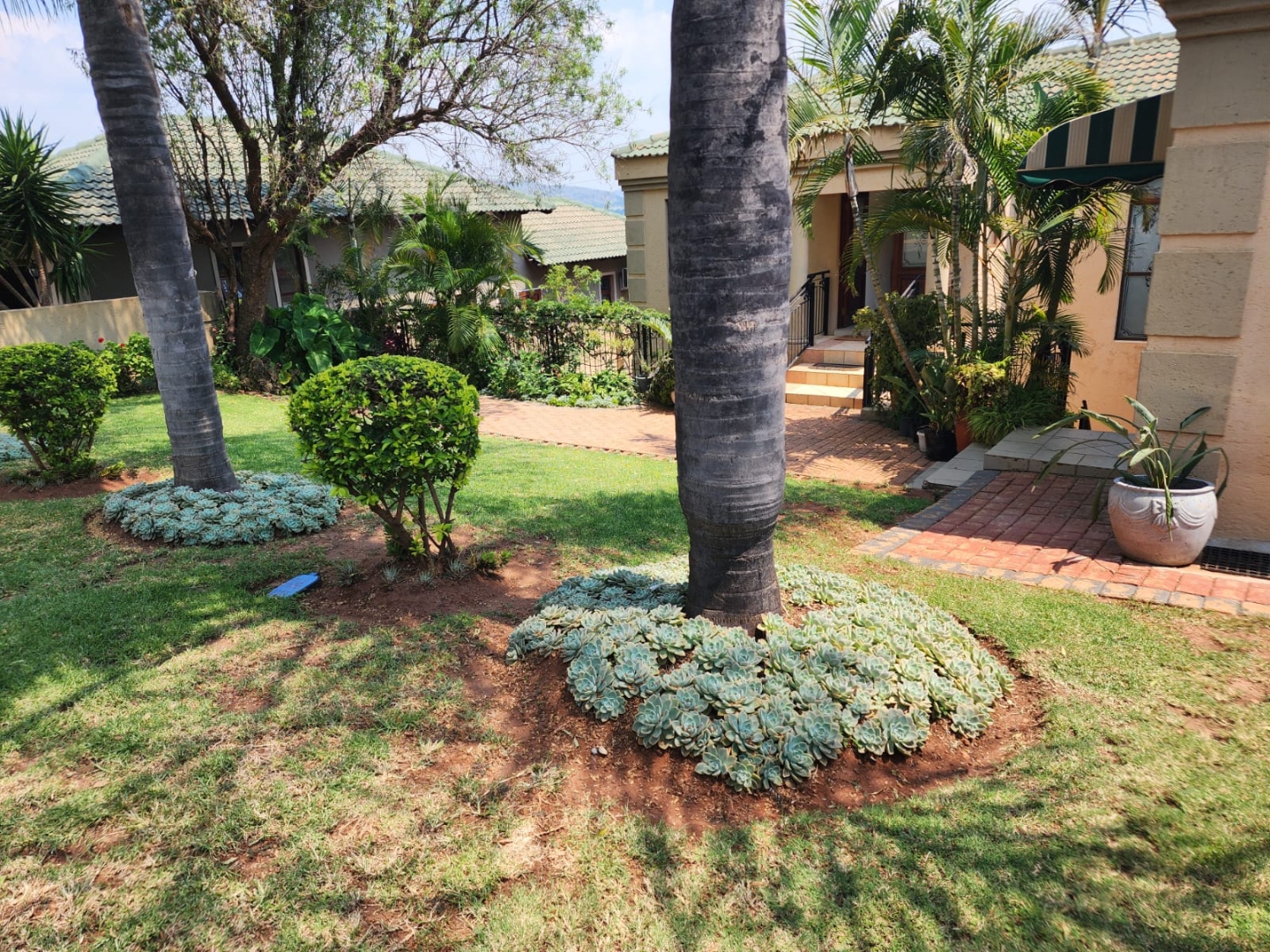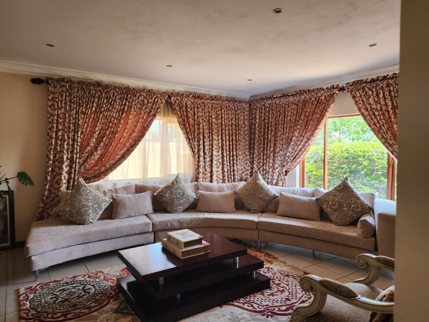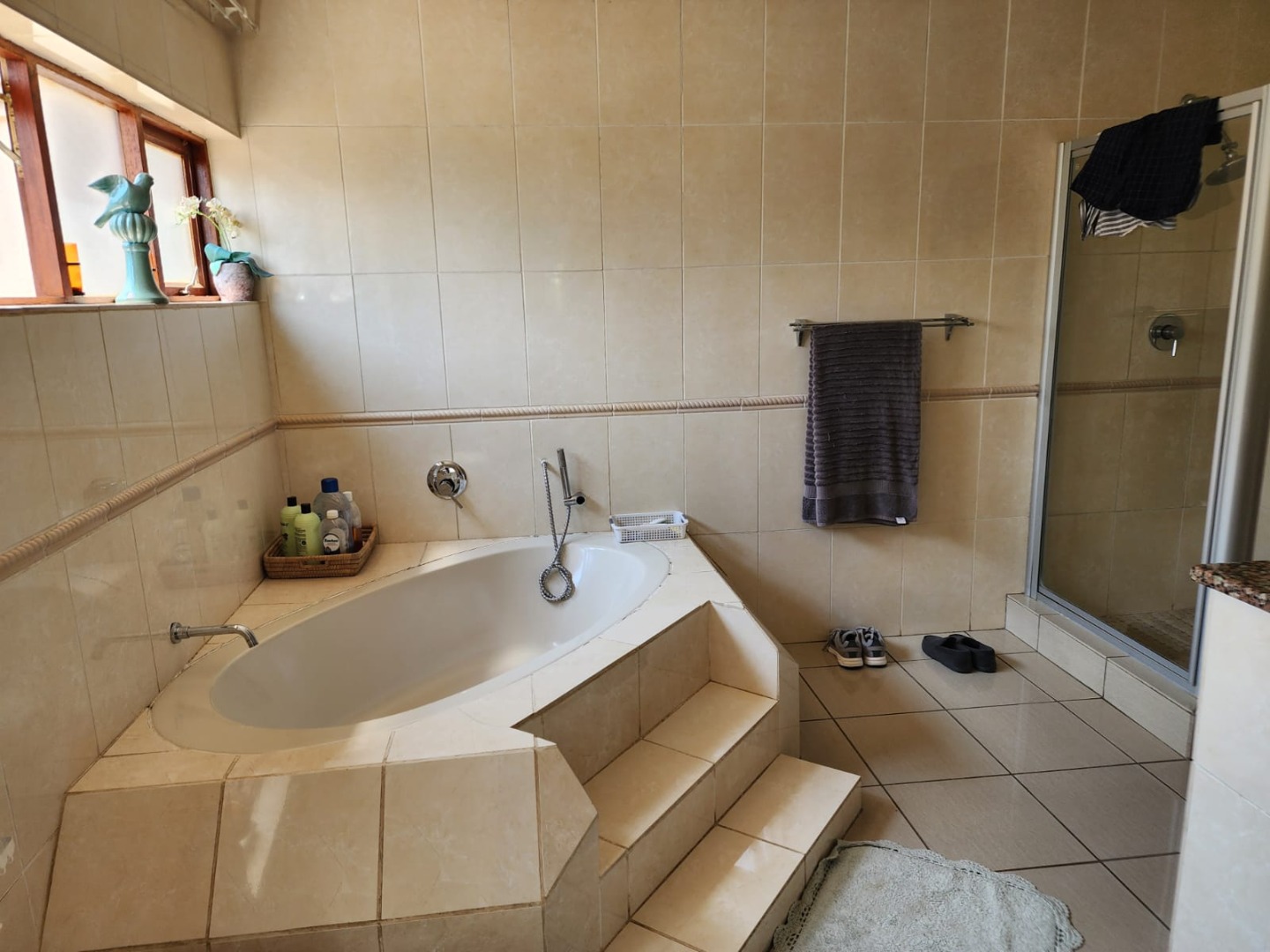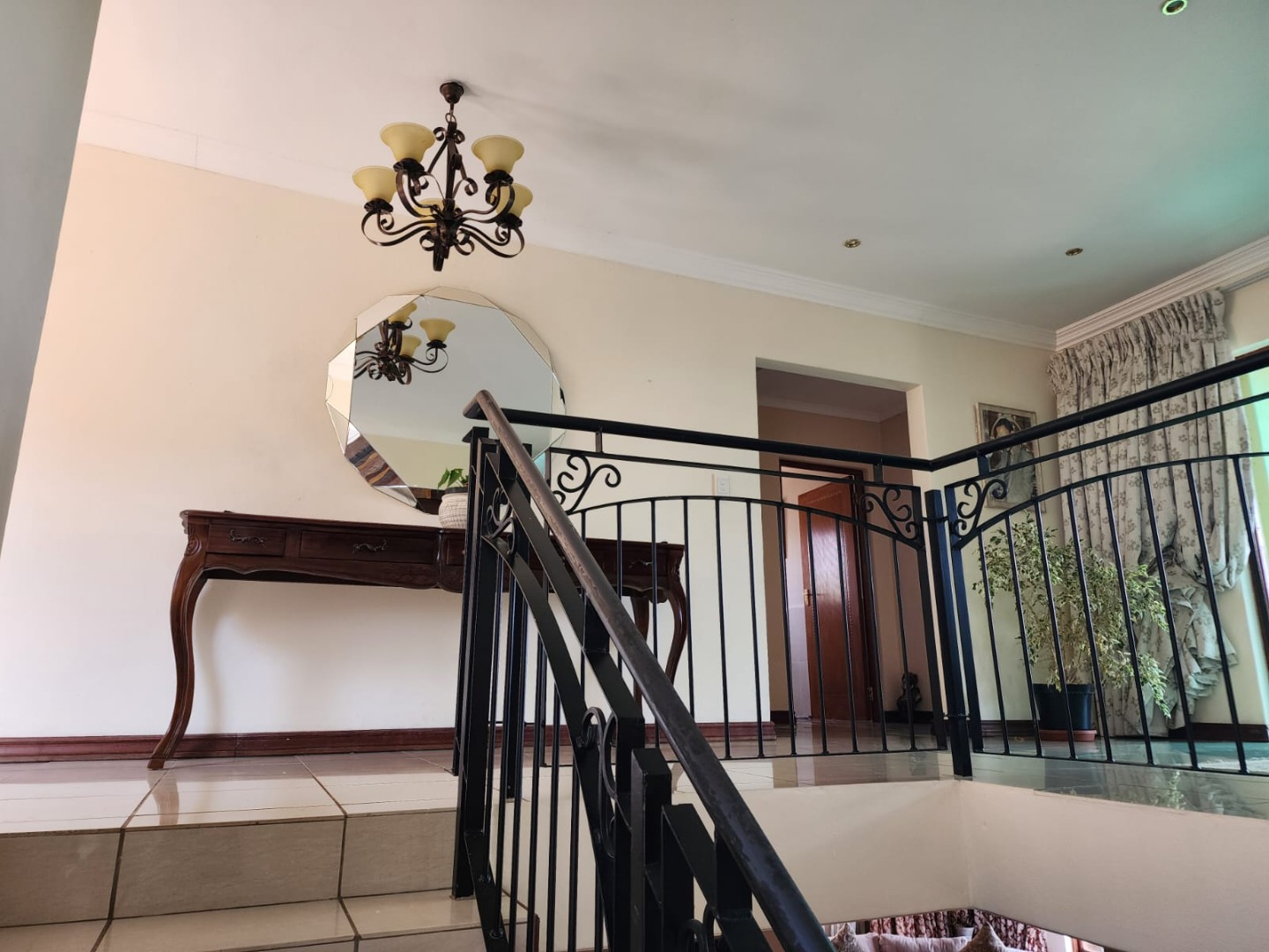 Discover this inviting 3-bedroom, 2-bathroom home set within the secure Kosmos Ridge estate in Hartbeespoort. The property offers excellent kerb appeal with distinctive architecture, wrought-iron railings, a paved brick driveway, and a beautifully maintained tropical garden. Inside, generous living areas include two lounges, a dining room, and a family TV room, all tiled and enhanced by crown moulding, large windows, and a cosy fireplace. An enclosed veranda captures panoramic views of the treed surroundings and distant hills, ideal for relaxing or entertaining.