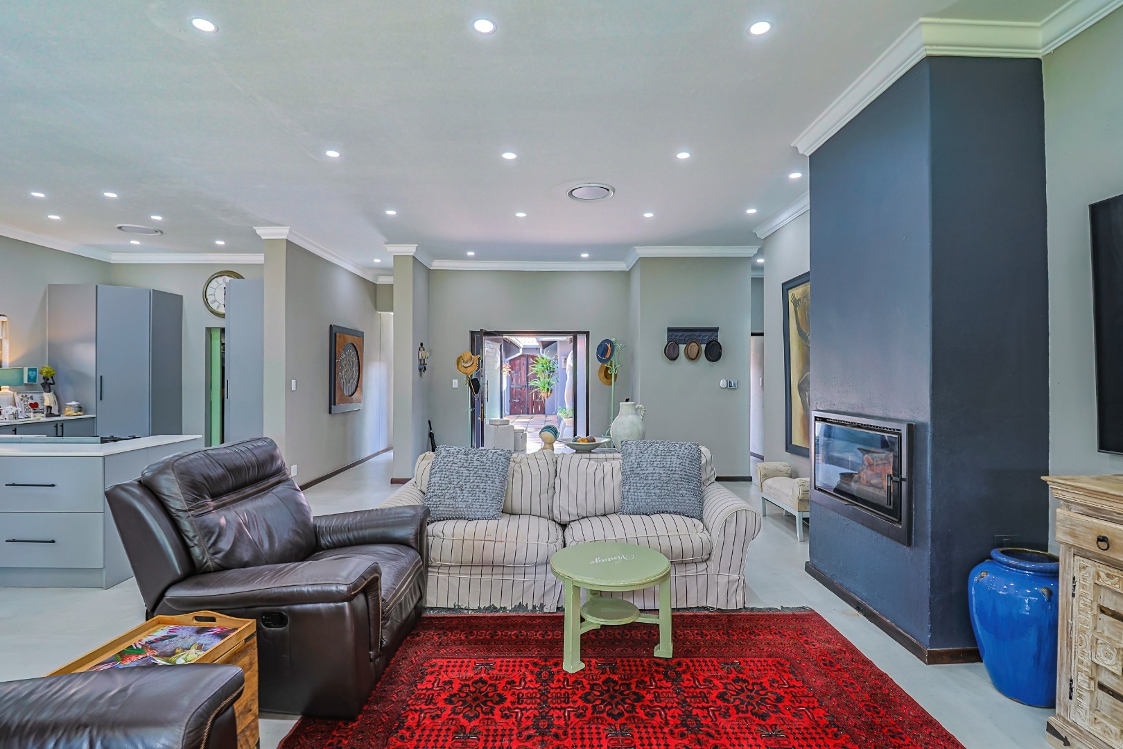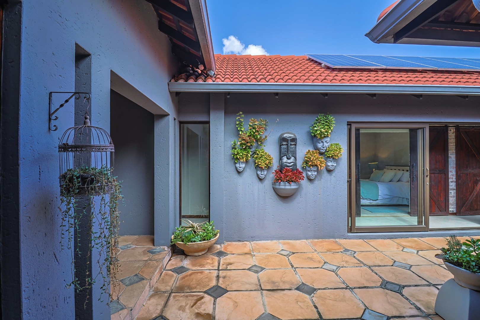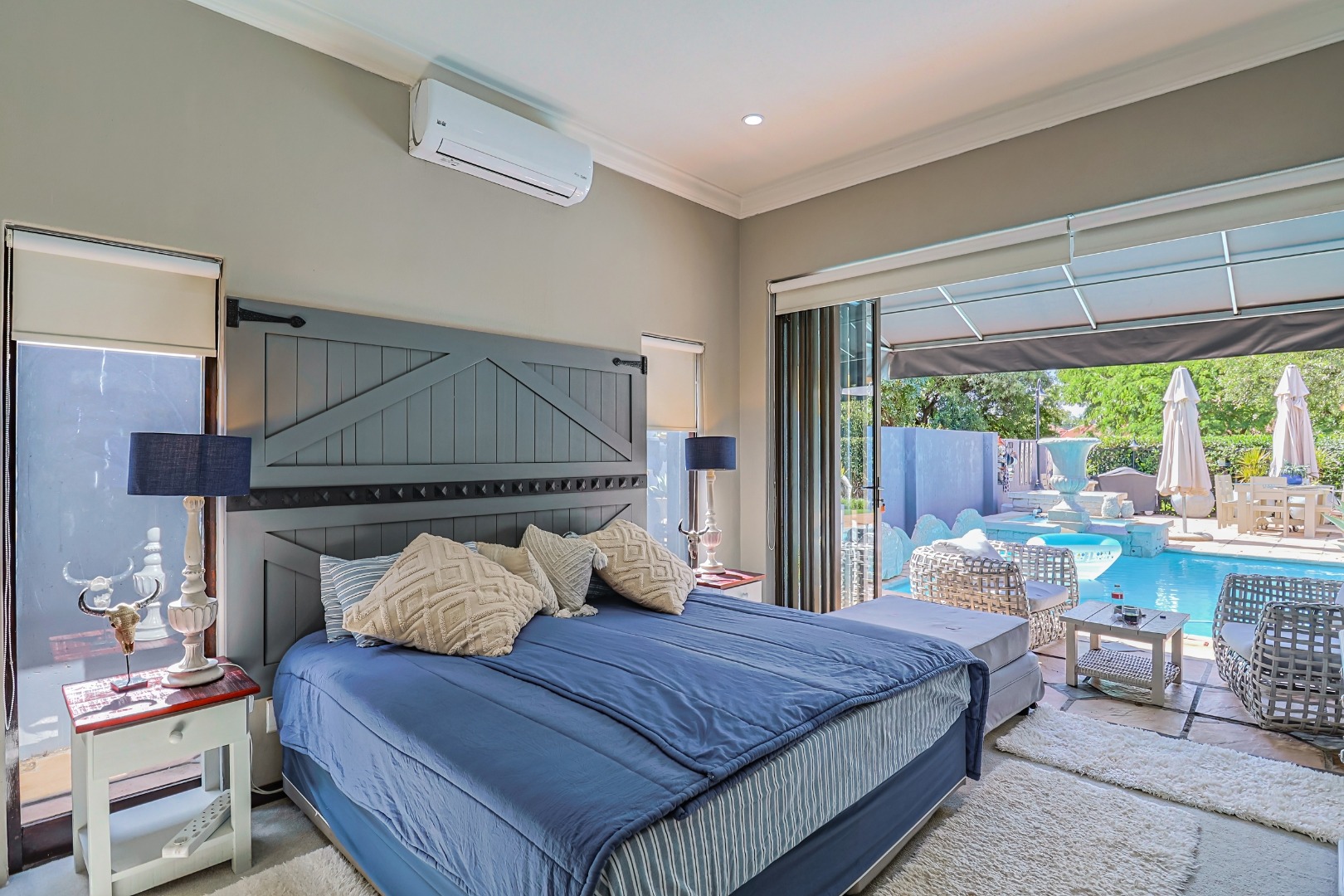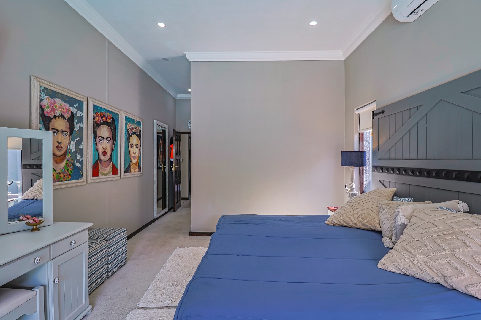 Well positioned within the sought-after Pecanwood Golf Estate, this exceptional single-storey residence offers a seamless blend of contemporary design, comfort, and privacy. Designed for those who appreciate modern elegance with functional living, the home showcases immaculate, upmarket finishes and thoughtfully curated spaces throughout. Expansive open-plan living and dining areas create an effortless flow, complemented by a stylish central fireplace that adds warmth and character. The modern, fully equipped kitchen integrates beautifully with the living spaces, making everyday living as well as entertaining a pleasure. Large stacking doors open out to the private heated pool within a beautifully landscaped garden. The entertainment offering is truly impressive, featuring a fitted bar that opens to the outdoor area. Each bedroom is spacious and complemented by its own en-suite bathroom, ensuring privacy and comfort throughout. Three of the bedrooms enjoy direct access to a private courtyard, enhancing the home’s indoor-outdoor flow and creating a calm, natural setting. The main suite serves as a peaceful sanctuary, opening onto the pool and garden, and offering a perfect space to unwind. In addition, the home is equipped with solar panels and inverter, integrated washing machine and dishwasher and ice machine, 2 fireplaces, 4 aircons.
