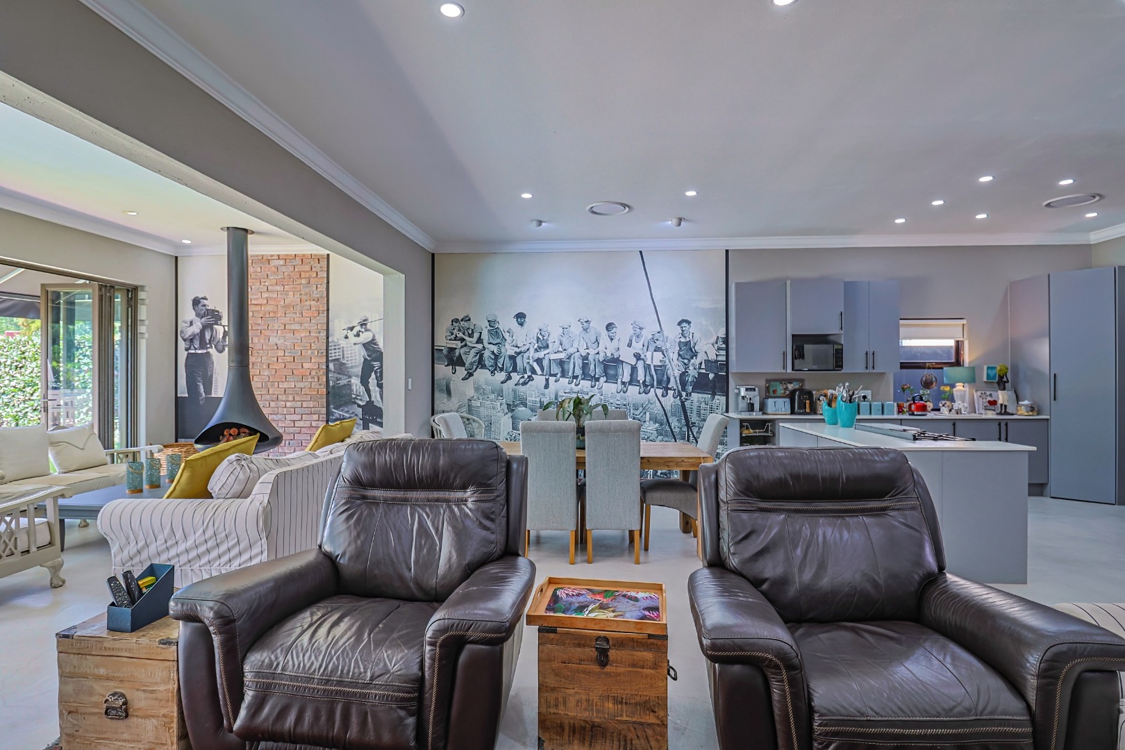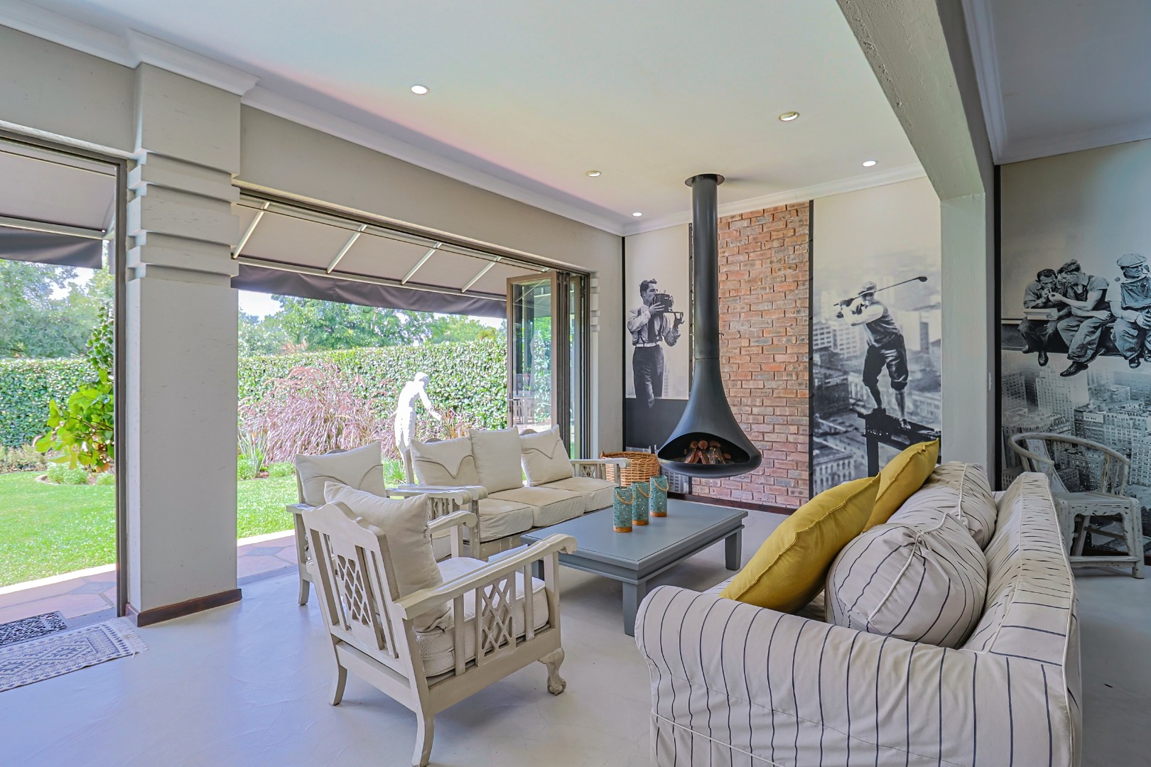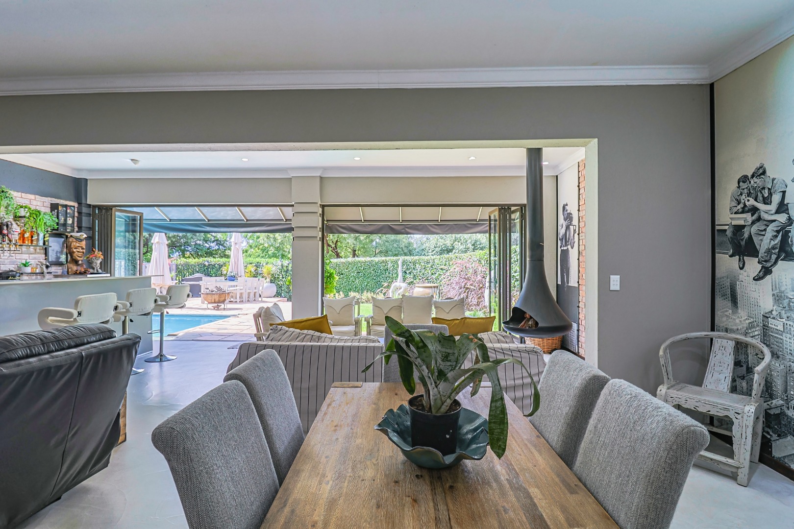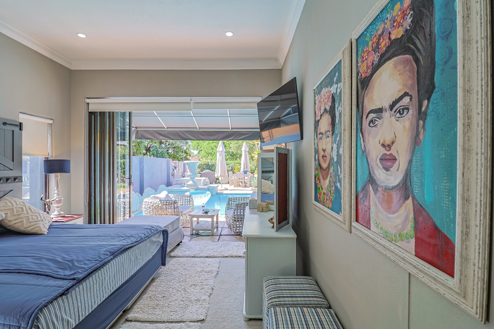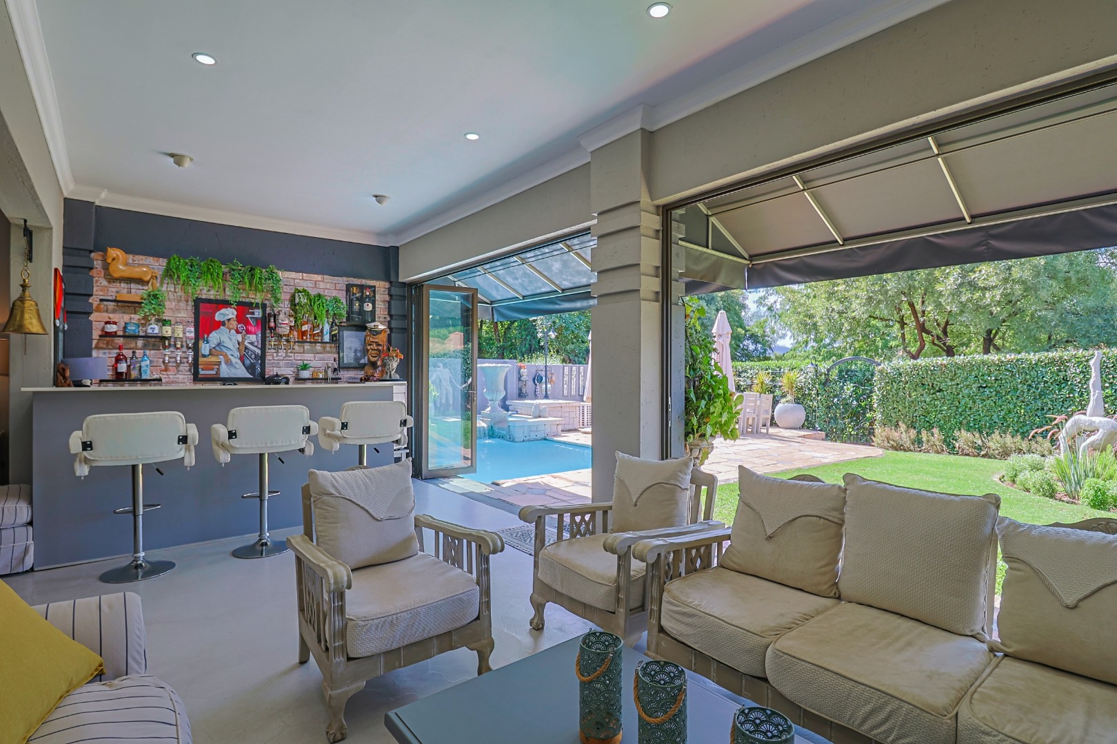 Well positioned within the sought-after Pecanwood Golf Estate, this exceptional single-storey residence offers a seamless blend of contemporary design, comfort, and privacy. Designed for those who appreciate modern elegance with functional living, the home showcases immaculate, upmarket finishes and thoughtfully curated spaces throughout. Expansive open-plan living and dining areas create an effortless flow, complemented by a stylish central fireplace that adds warmth and character. The modern, fully equipped kitchen integrates beautifully with the living spaces, making everyday living as well as entertaining a pleasure. Large stacking doors open out to the private heated pool within a beautifully landscaped garden. The entertainment offering is truly impressive, featuring a fitted bar that opens to the outdoor area. Each bedroom is spacious and complemented by its own en-suite bathroom, ensuring privacy and comfort throughout. Three of the bedrooms enjoy direct access to a private courtyard, enhancing the home’s indoor-outdoor flow and creating a calm, natural setting. The main suite serves as a peaceful sanctuary, opening onto the pool and garden, and offering a perfect space to unwind. In addition, the home is equipped with solar panels and inverter, integrated washing machine and dishwasher and ice machine, 2 fireplaces, 4 aircons.