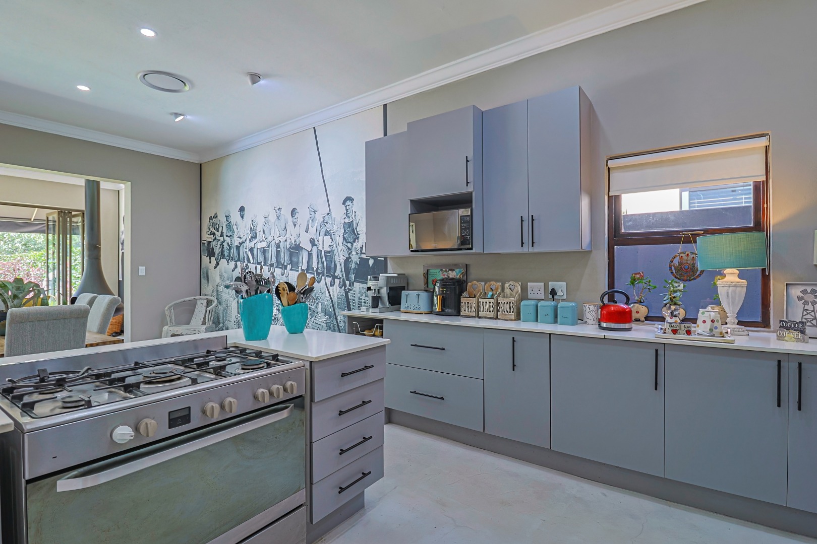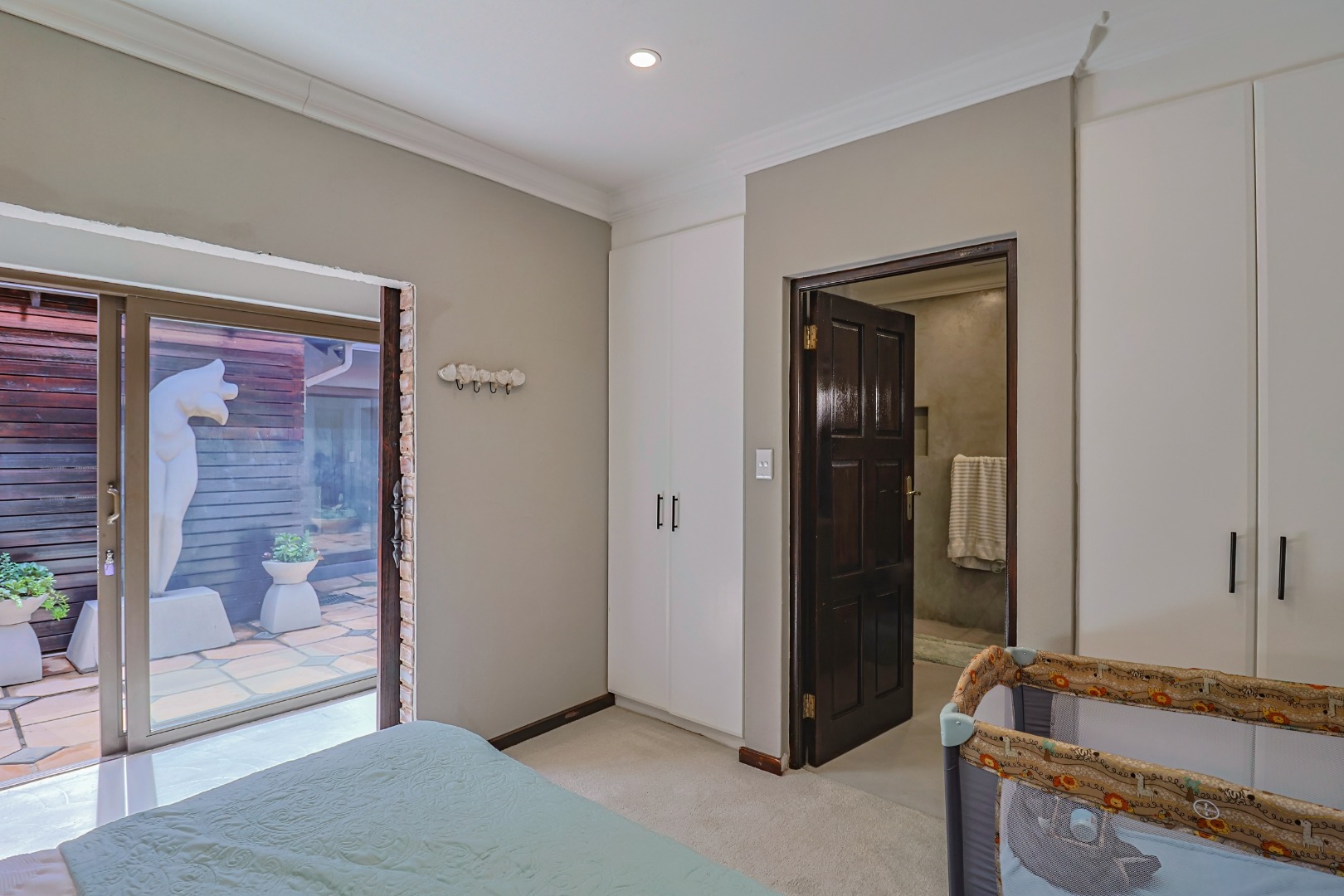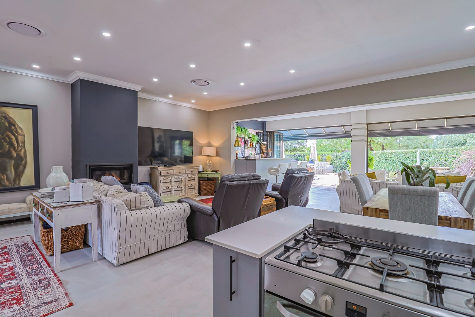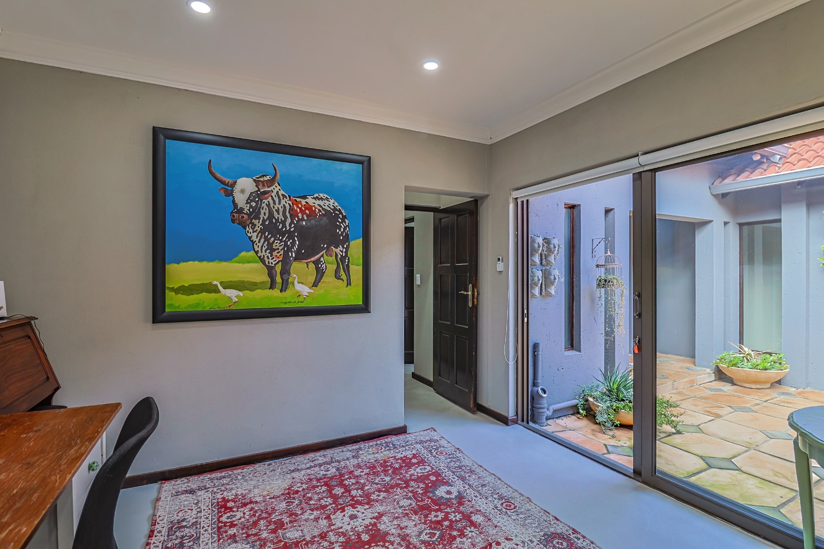 Well positioned within the sought-after Pecanwood Golf Estate, this exceptional single-storey residence offers a seamless blend of contemporary design, comfort, and privacy. Designed for those who appreciate modern elegance with functional living, the home showcases immaculate, upmarket finishes and thoughtfully curated spaces throughout. Expansive open-plan living and dining areas create an effortless flow, complemented by a stylish central fireplace that adds warmth and character. The modern, fully equipped kitchen integrates beautifully with the living spaces, making everyday living as well as entertaining a pleasure. Large stacking doors open out to the private heated pool within a beautifully landscaped garden. The entertainment offering is truly impressive, featuring a fitted bar that opens to the outdoor area. Each bedroom is spacious and complemented by its own en-suite bathroom, ensuring privacy and comfort throughout. Three of the bedrooms enjoy direct access to a private courtyard, enhancing the home’s indoor-outdoor flow and creating a calm, natural setting. The main suite serves as a peaceful sanctuary, opening onto the pool and garden, and offering a perfect space to unwind. In addition, the home is equipped with solar panels and inverter, integrated washing machine and dishwasher and ice machine, 2 fireplaces, 4 aircons.