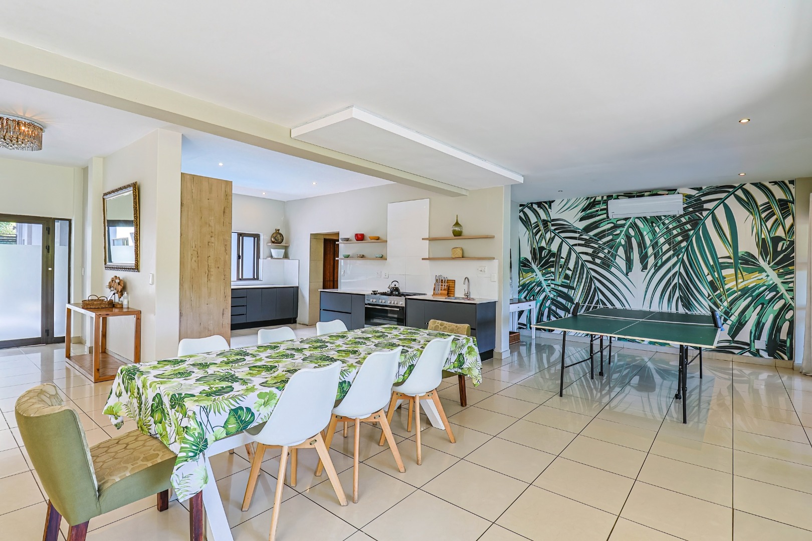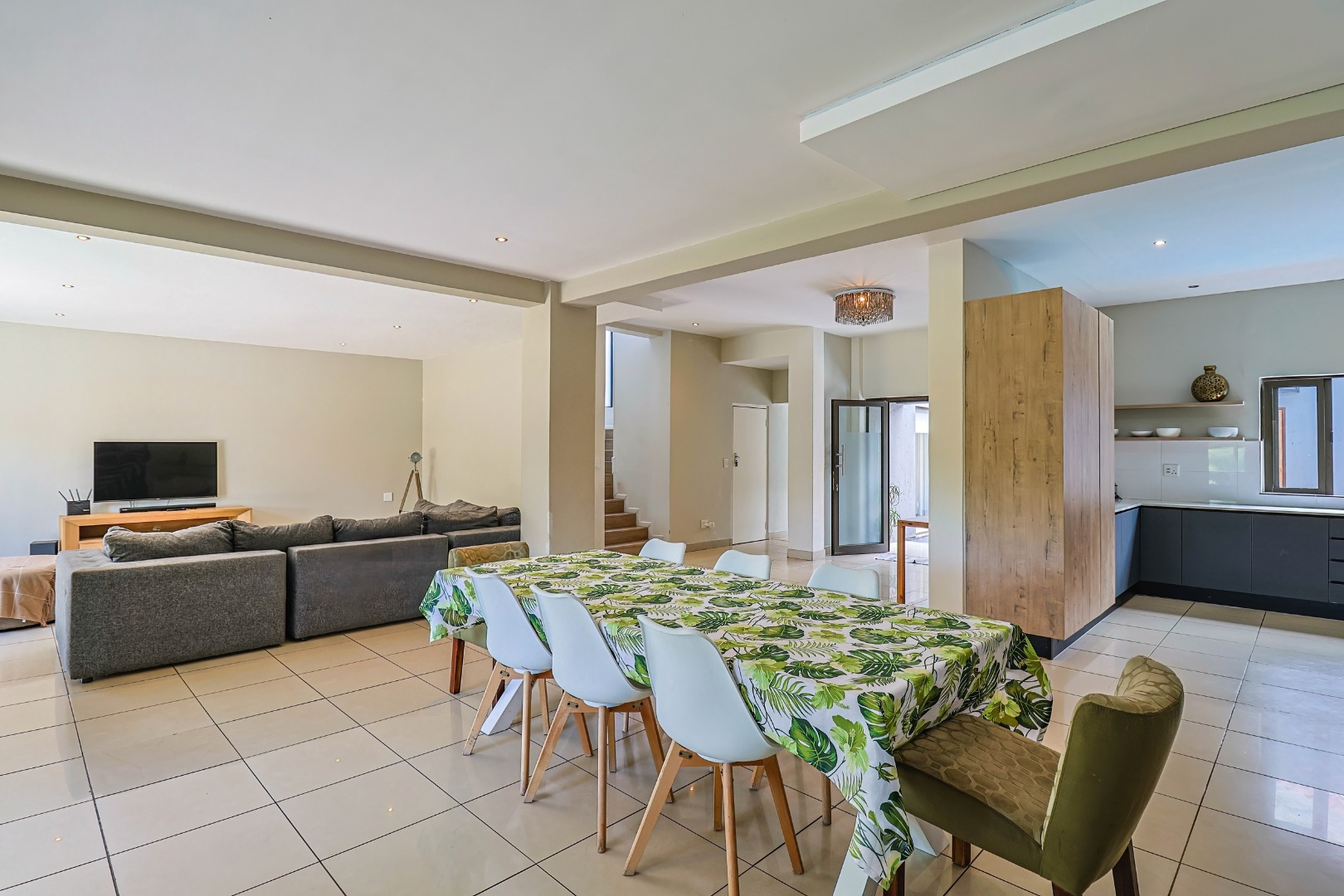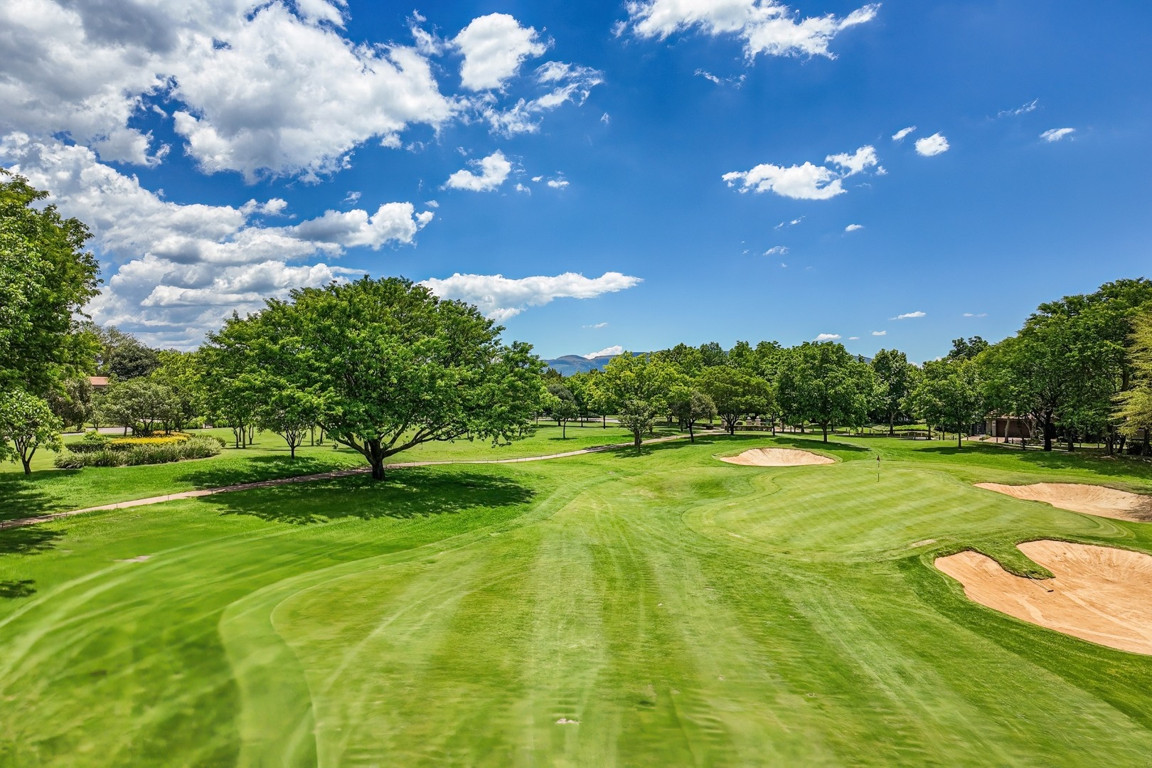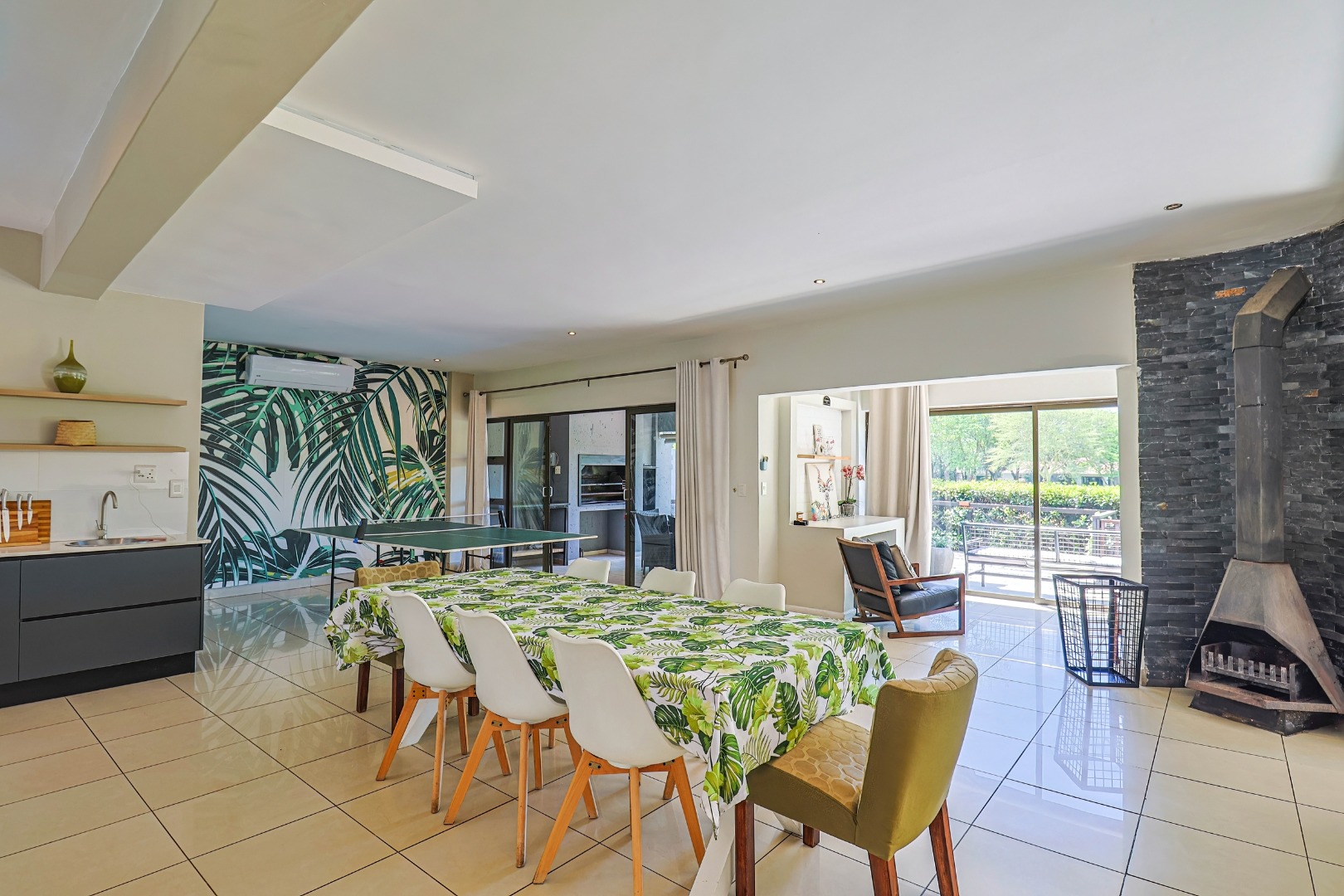 Discover refined golf-estate living in this exceptional double-storey home nestled within the sought-after Pecanwood Estate in Hartbeespoort. Designed with timeless elegance, the residence welcomes you with its classic terracotta roofline, lush greenery, and inviting sense of privacy. Inside, light-filled open-plan living areas flow seamlessly from the modern gourmet kitchen—complete with dark cabinetry, gas stove and pantry—to the dining and lounge spaces complemented by a feature fireplace and a separate family TV room. Five spacious bedrooms and four luxurious bathrooms, three en-suite, ensure comfort and convenience for family and guests.