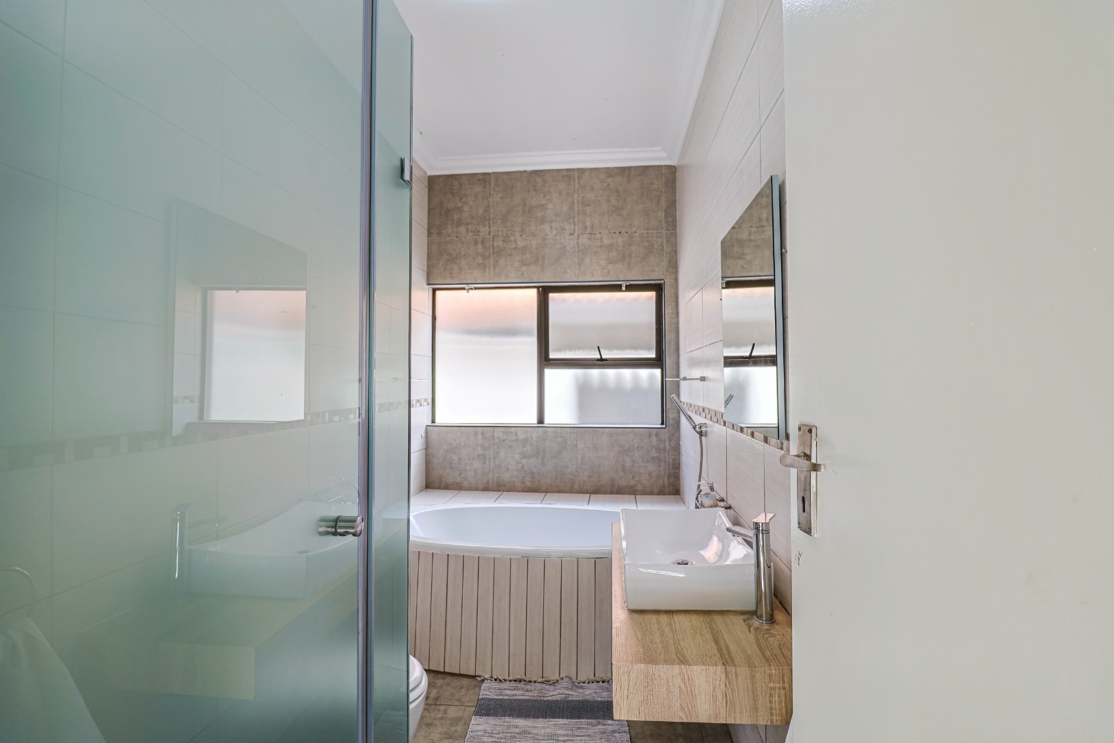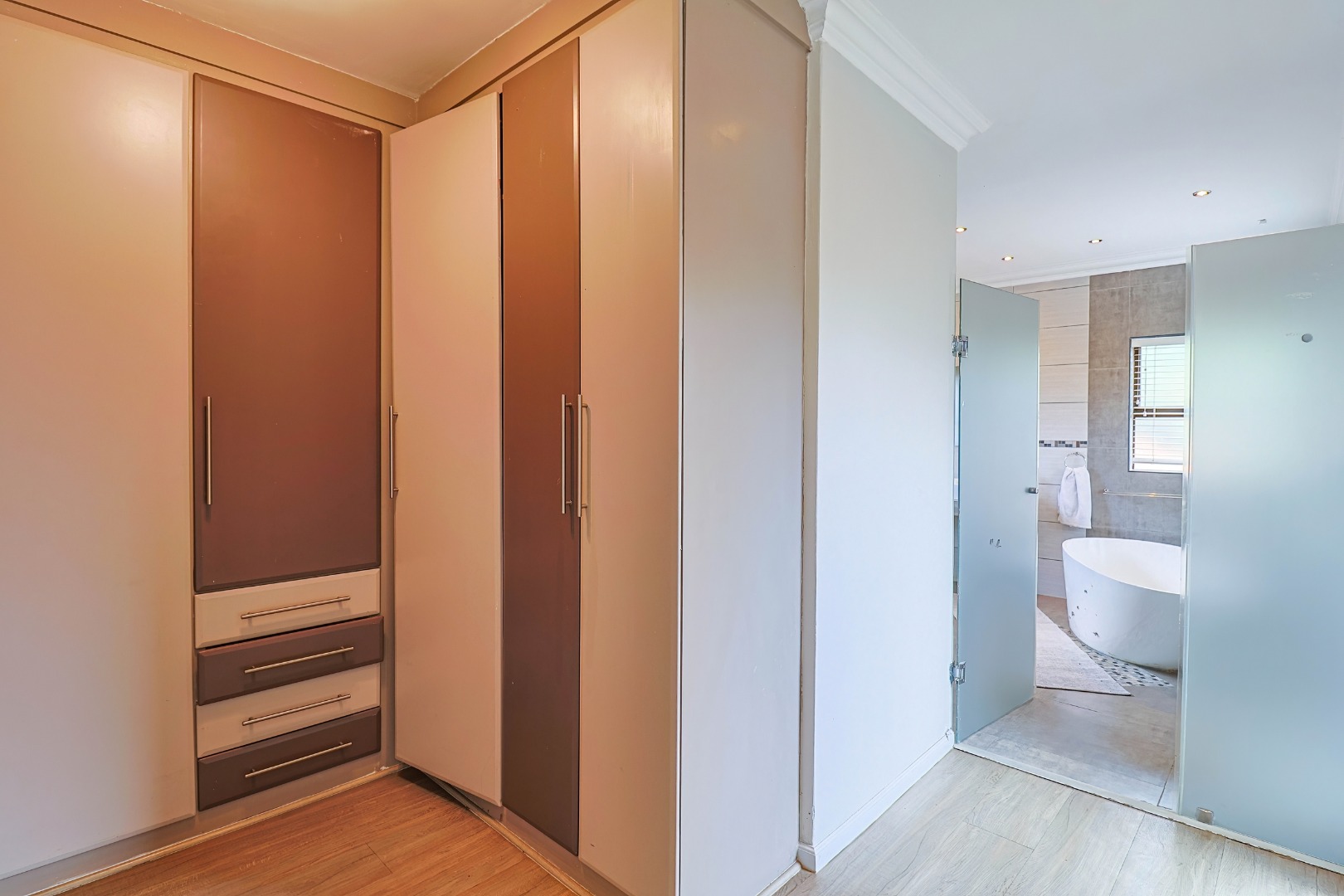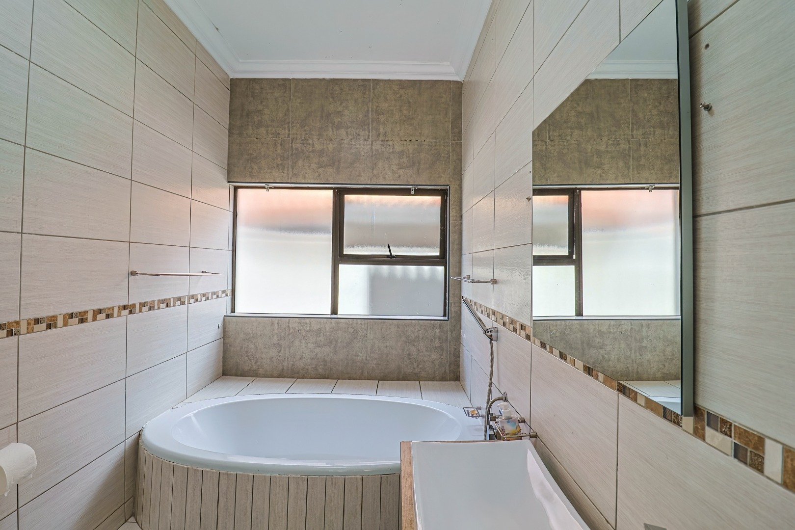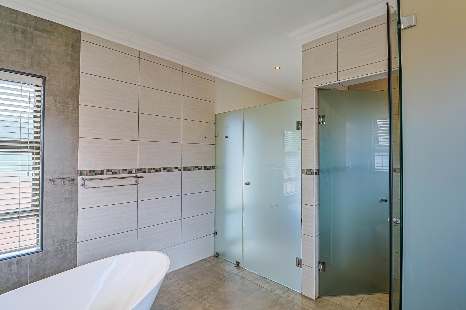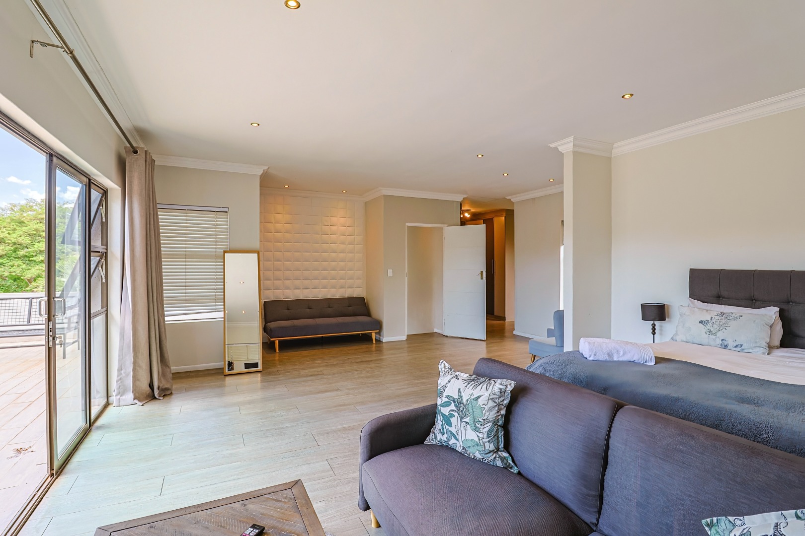 Discover refined golf-estate living in this exceptional double-storey home nestled within the sought-after Pecanwood Estate in Hartbeespoort. Designed with timeless elegance, the residence welcomes you with its classic terracotta roofline, lush greenery, and inviting sense of privacy. Inside, light-filled open-plan living areas flow seamlessly from the modern gourmet kitchen—complete with dark cabinetry, gas stove and pantry—to the dining and lounge spaces complemented by a feature fireplace and a separate family TV room. Five spacious bedrooms and four luxurious bathrooms, three en-suite, ensure comfort and convenience for family and guests.