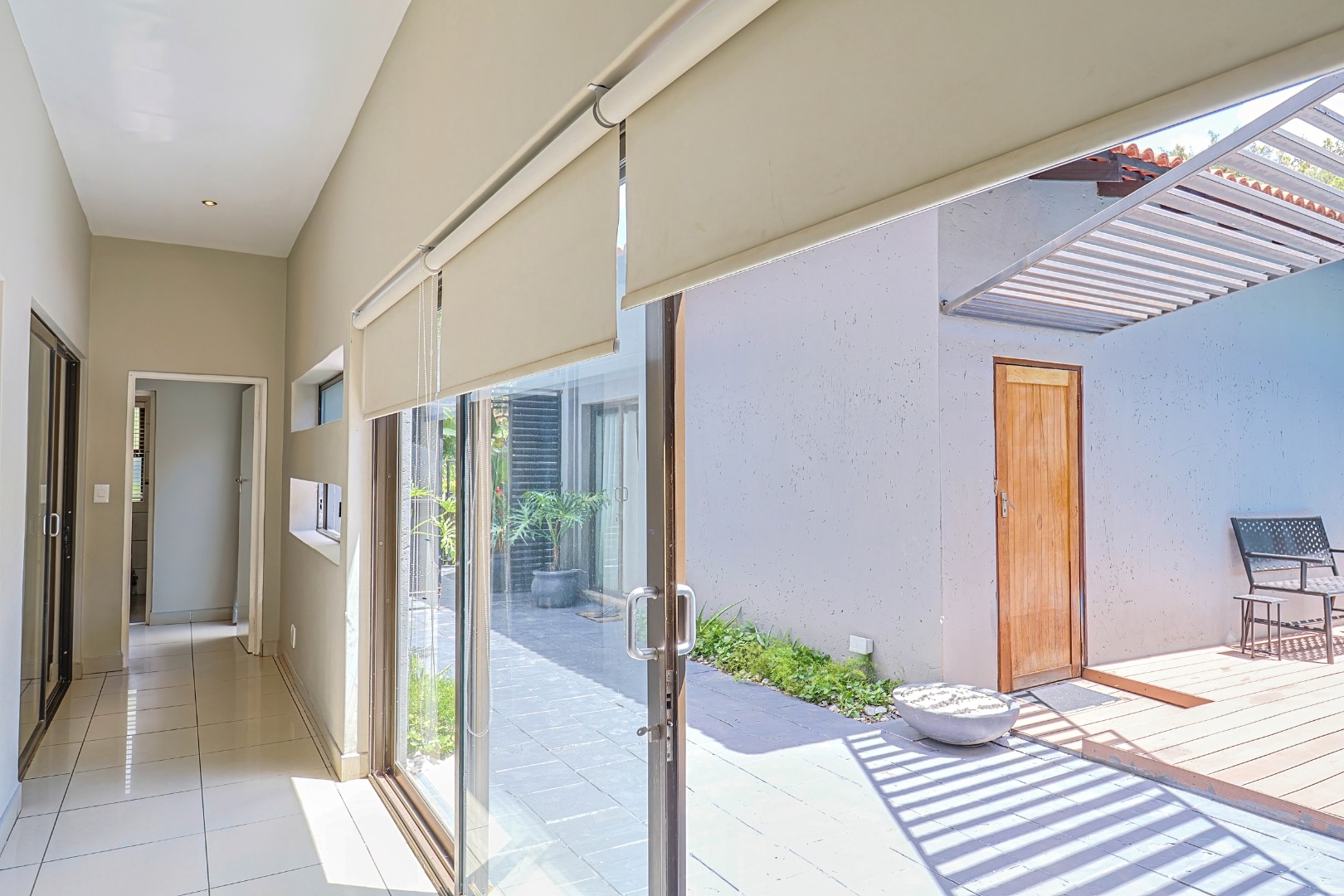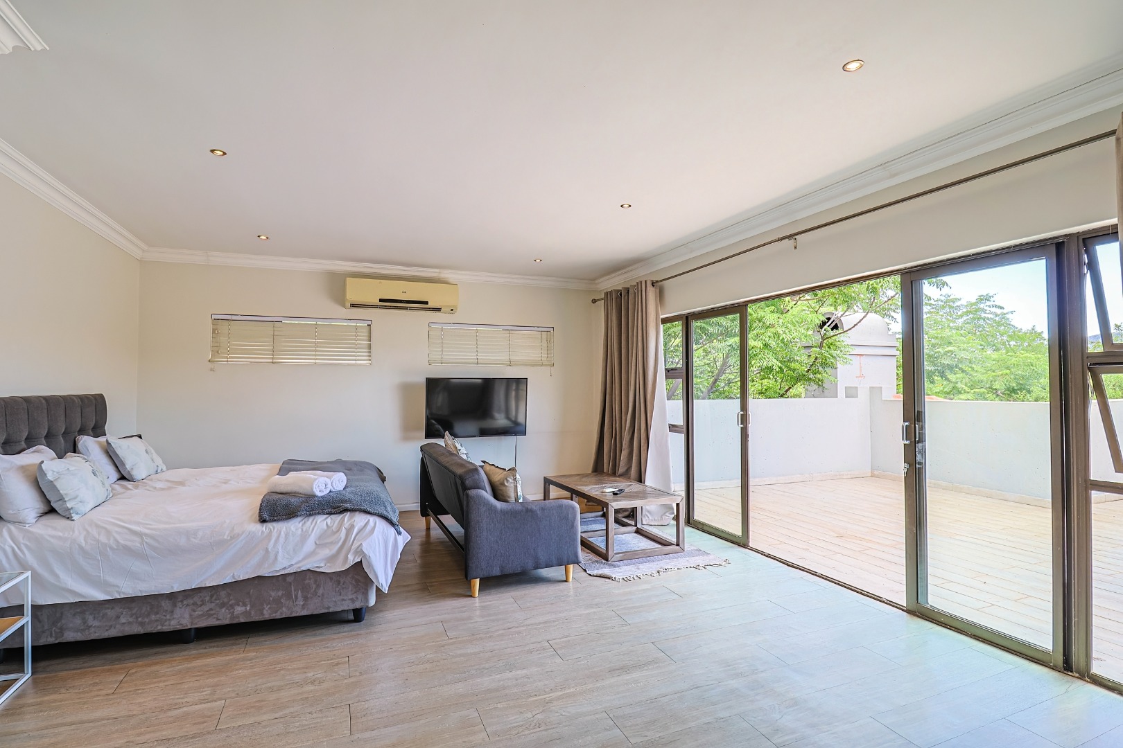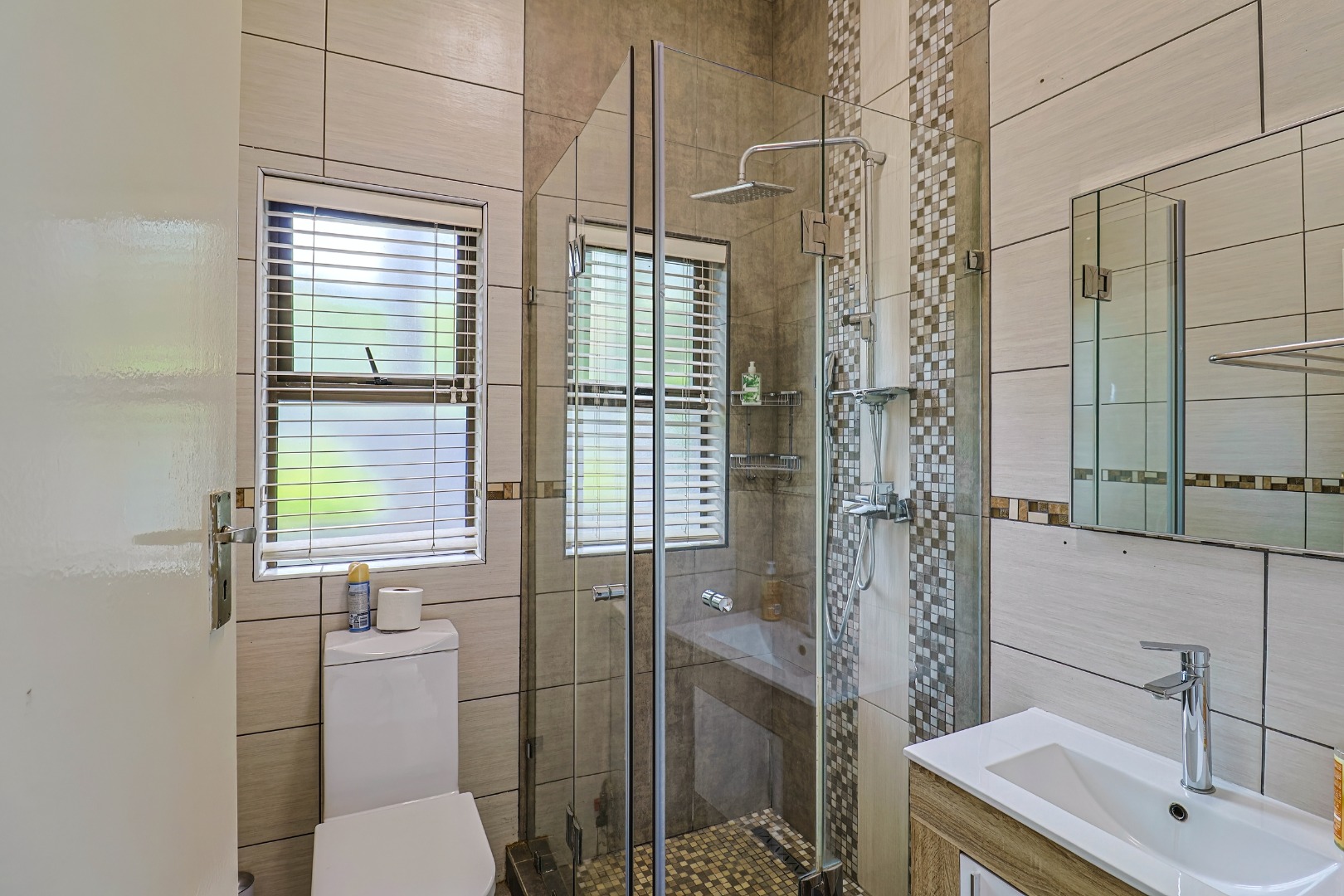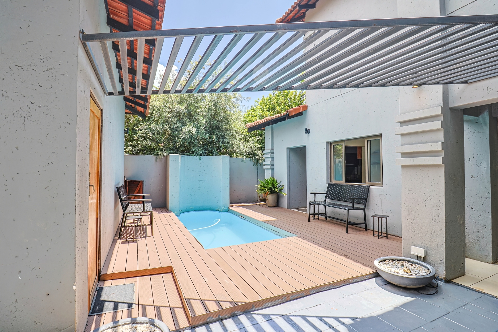 Discover refined golf-estate living in this exceptional double-storey home nestled within the sought-after Pecanwood Estate in Hartbeespoort. Designed with timeless elegance, the residence welcomes you with its classic terracotta roofline, lush greenery, and inviting sense of privacy. Inside, light-filled open-plan living areas flow seamlessly from the modern gourmet kitchen—complete with dark cabinetry, gas stove and pantry—to the dining and lounge spaces complemented by a feature fireplace and a separate family TV room. Five spacious bedrooms and four luxurious bathrooms, three en-suite, ensure comfort and convenience for family and guests.