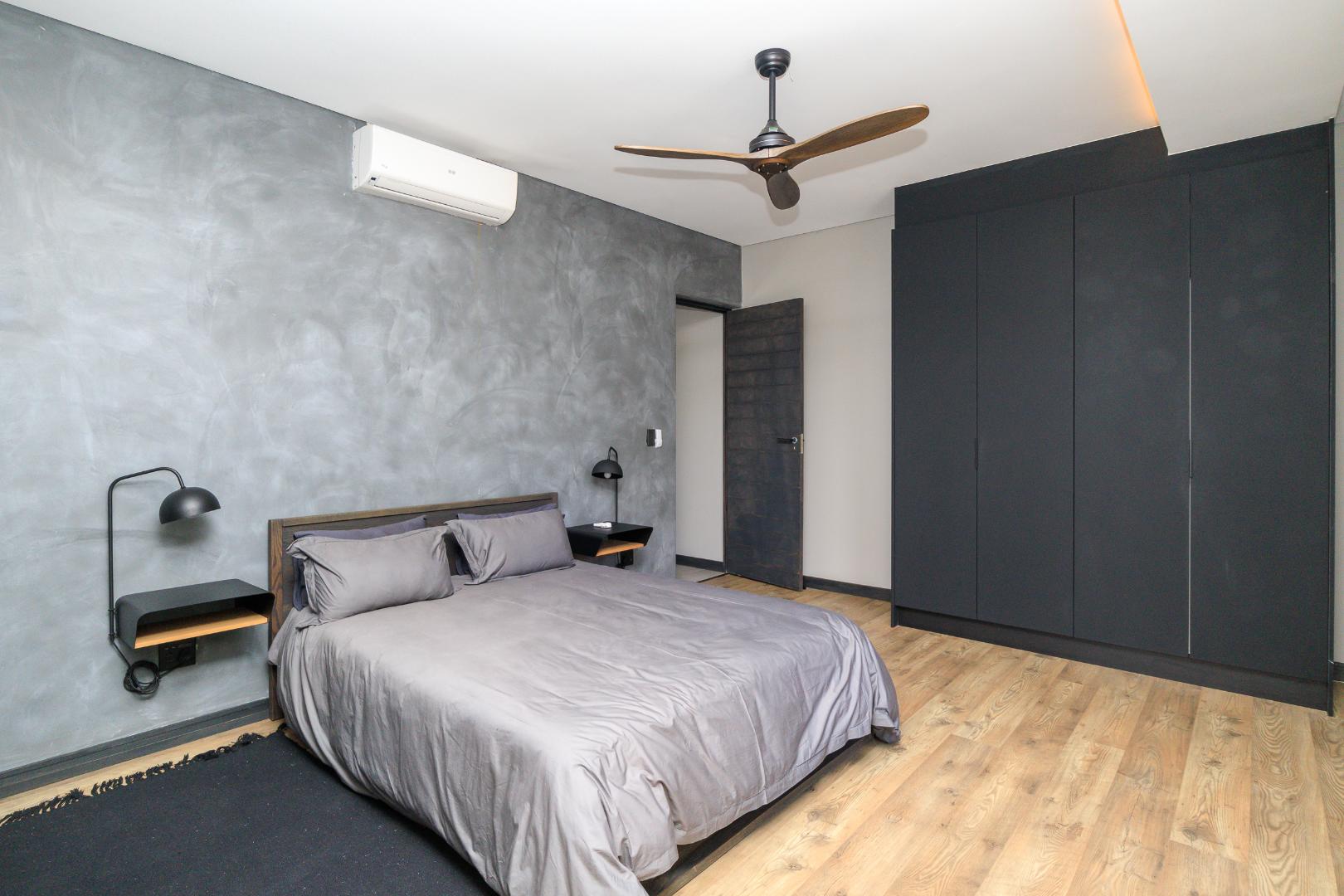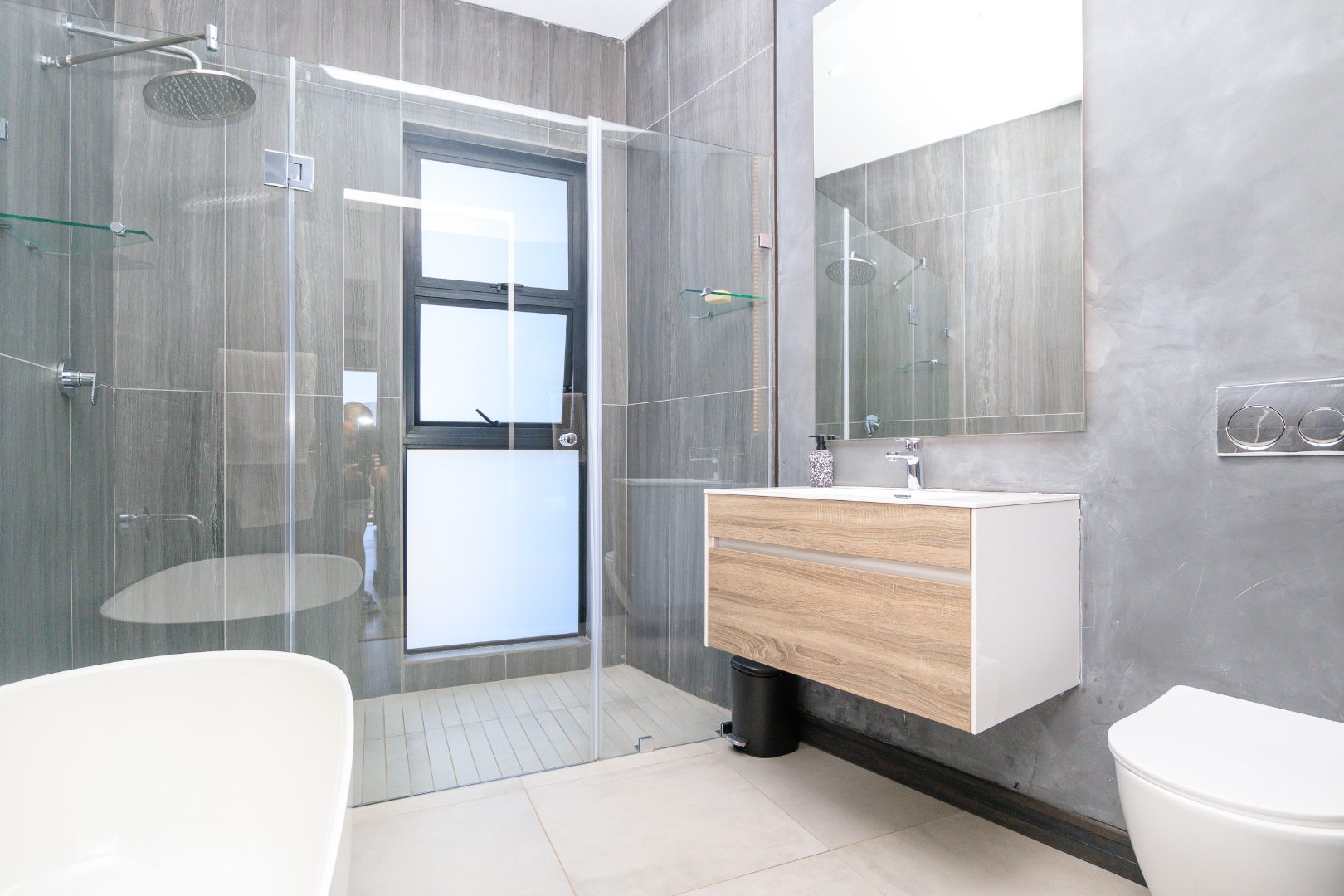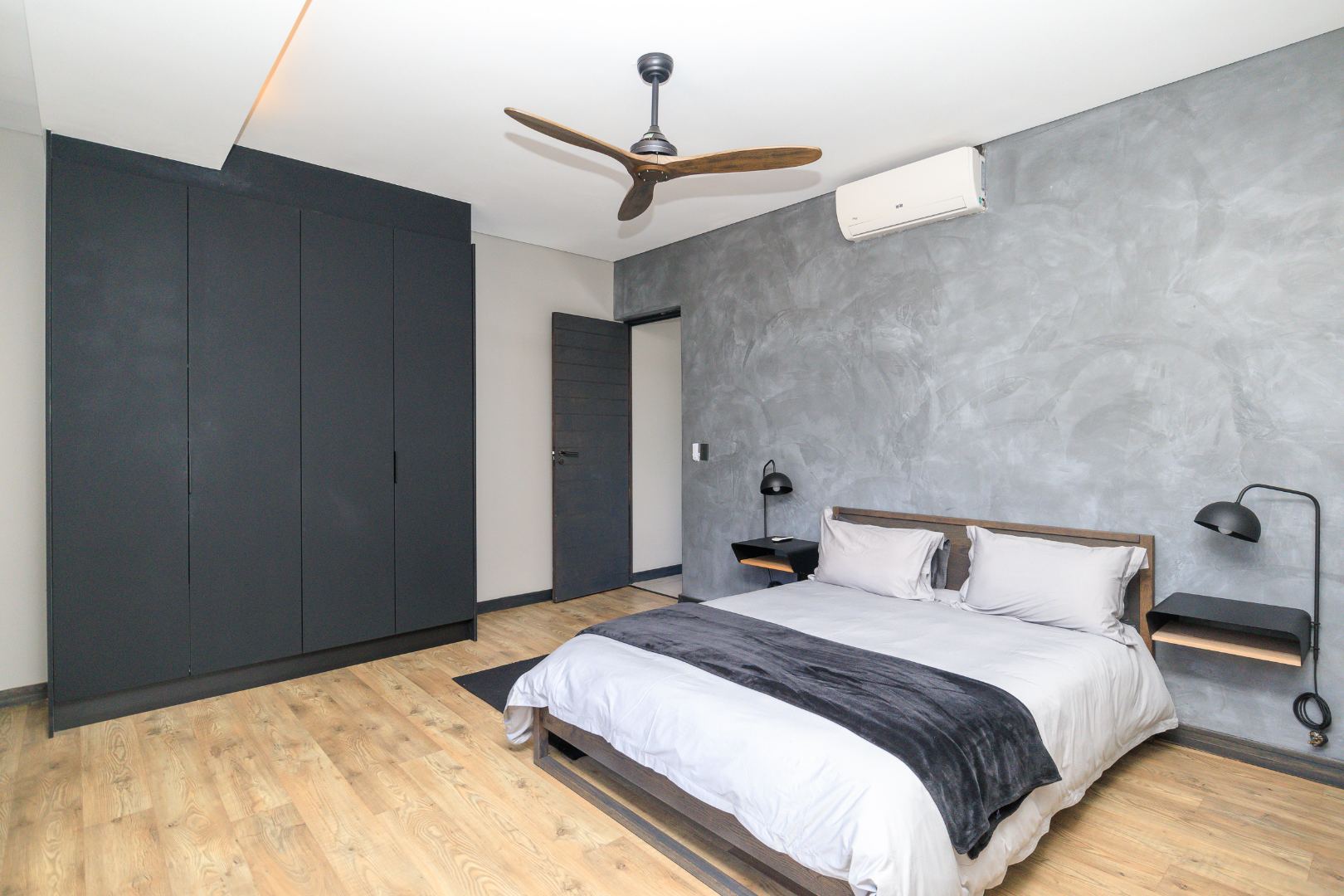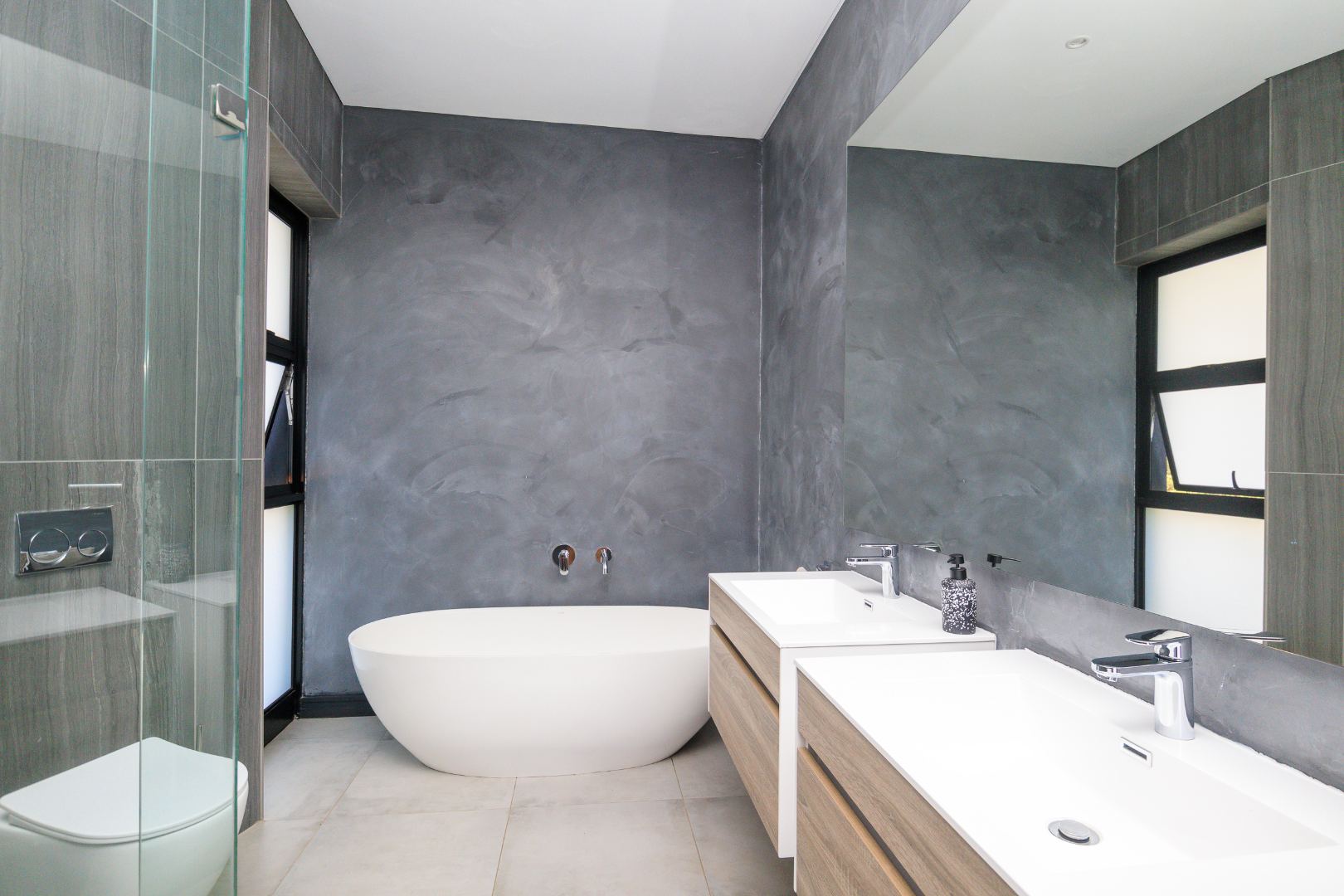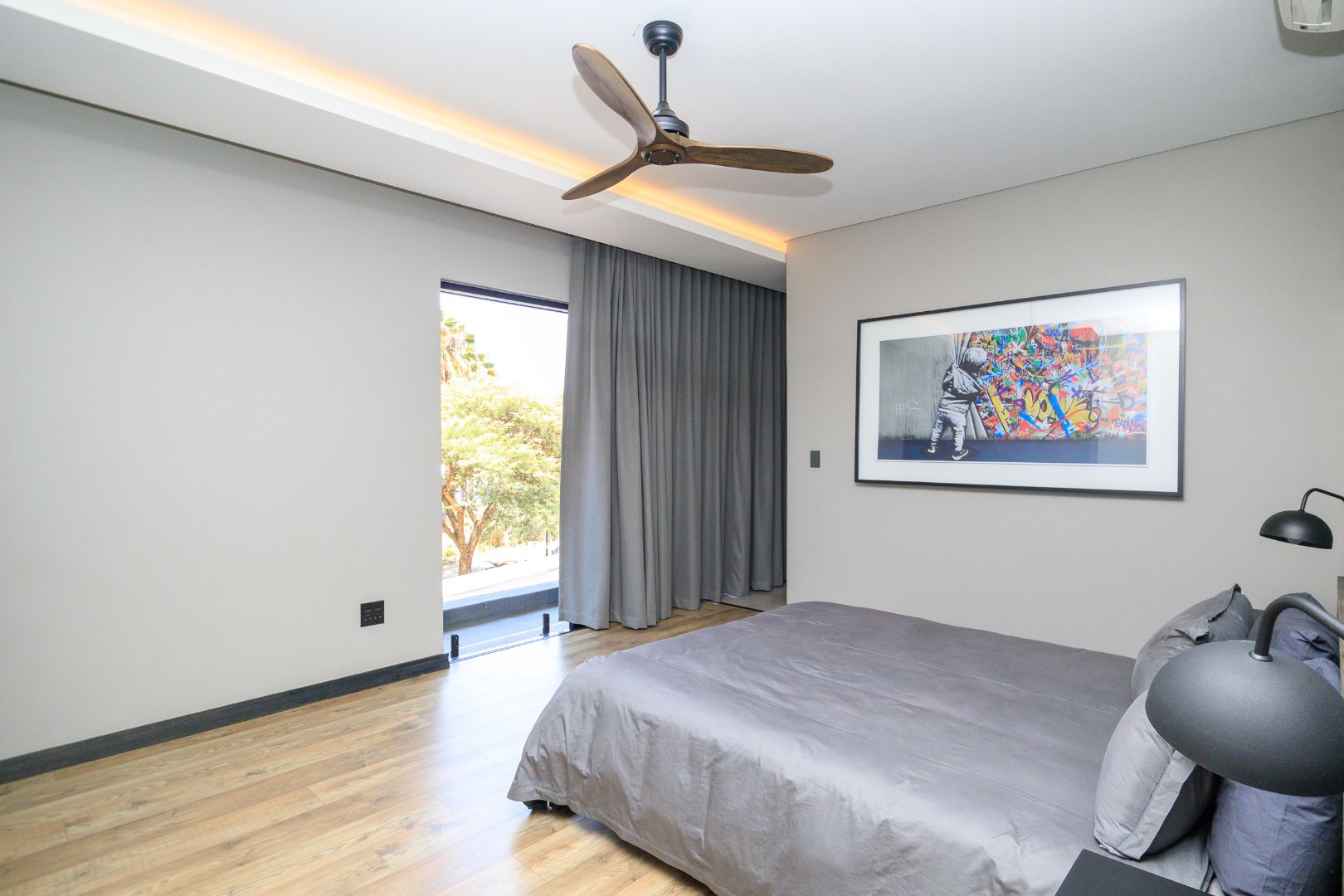 This ultra-modern residence in The Islands Estate epitomises luxury living, seamlessly blending glass, aluminium, and light to create an atmosphere of sophistication and openness. Set on a 1,149m² stand, the home features double-volume ceilings and expansive open-plan living spaces. A designer kitchen with integrated appliances flows effortlessly into the lounge and dining area, opening onto a spacious patio with an extra-length swimming pool, boma, and gas braai — perfect for entertaining. The home’s elegant staircase, accentuated by statement light fittings, enhances the sleek architectural lines.