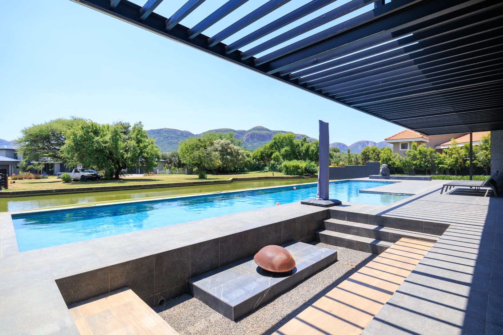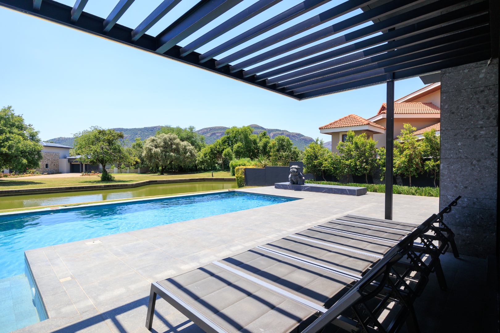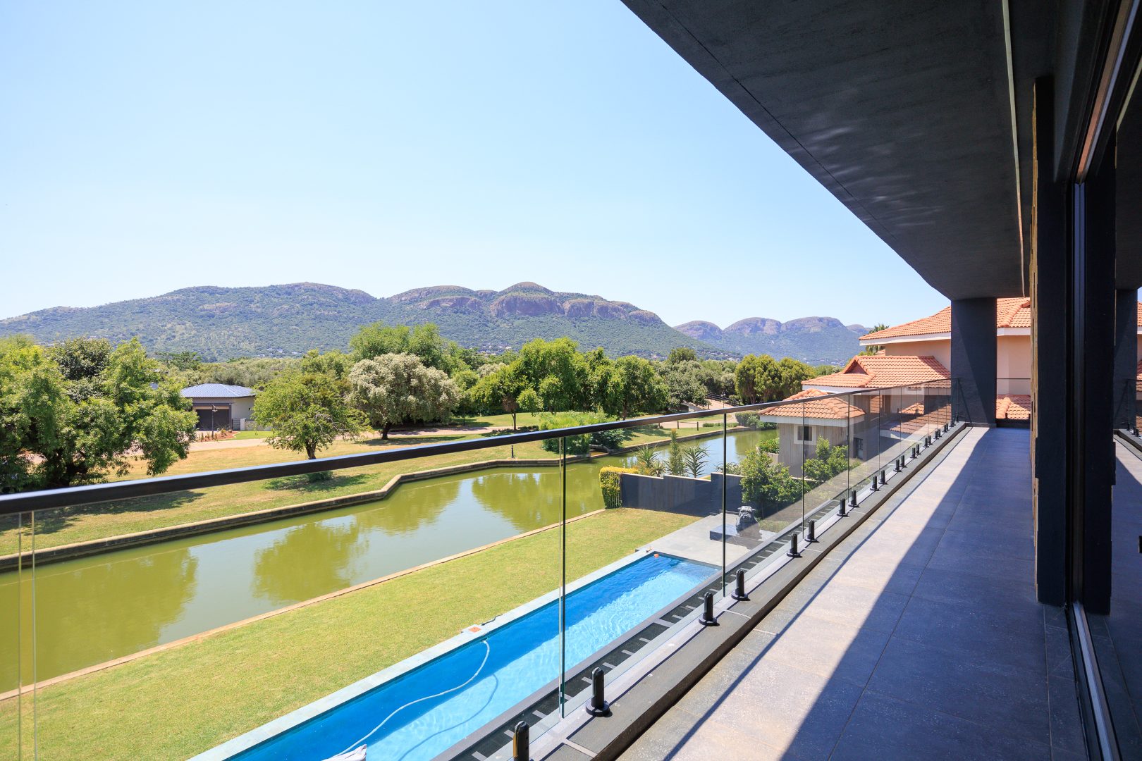 Upstairs, four en-suite, air conditioned bedrooms open onto private balconies showcasing breathtaking views of the Magaliesberg mountain range, while a stylish guest suite downstairs offers air conditioning, built-in cupboards, and modern guest amenities. A loft net provides a playful retreat for children, and additional features include double automated garages with a laundry facility, as well as a full inverter and battery system for energy efficiency. Located within one of Hartbeespoort’s most exclusive estates, residents enjoy access to 6.5km of navigable canals, a 9-hole mashie golf course, clubhouse with children’s play area, and 24-hour security.