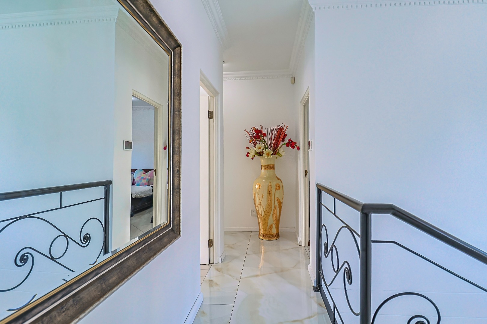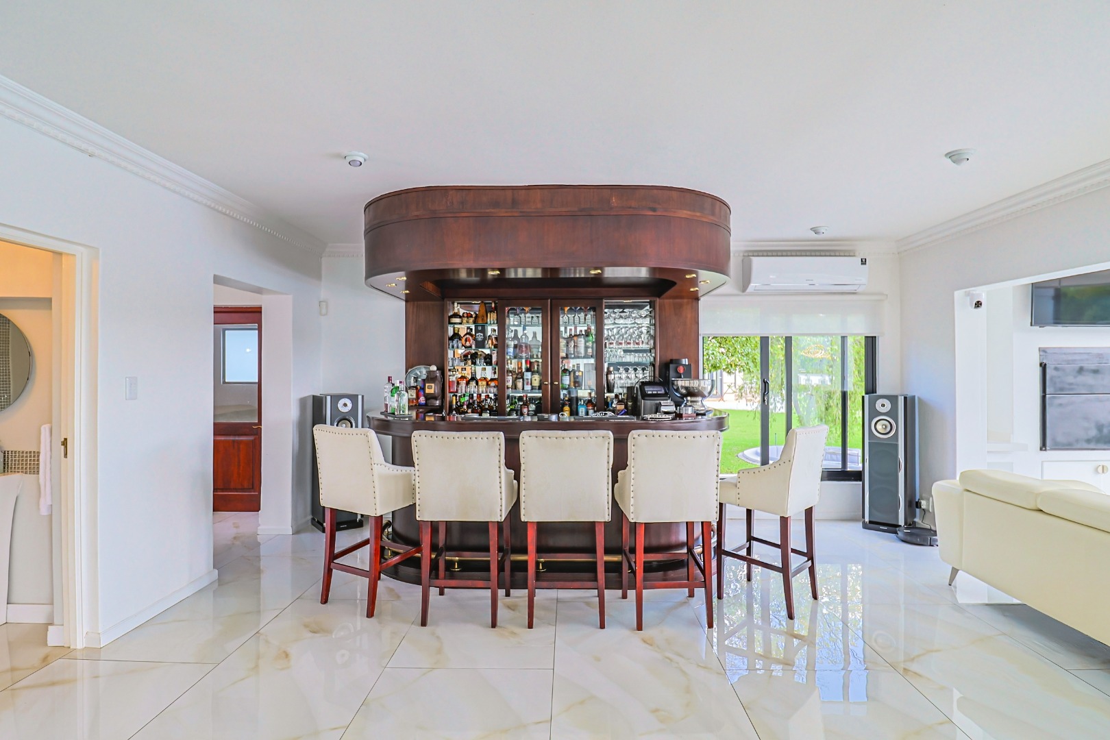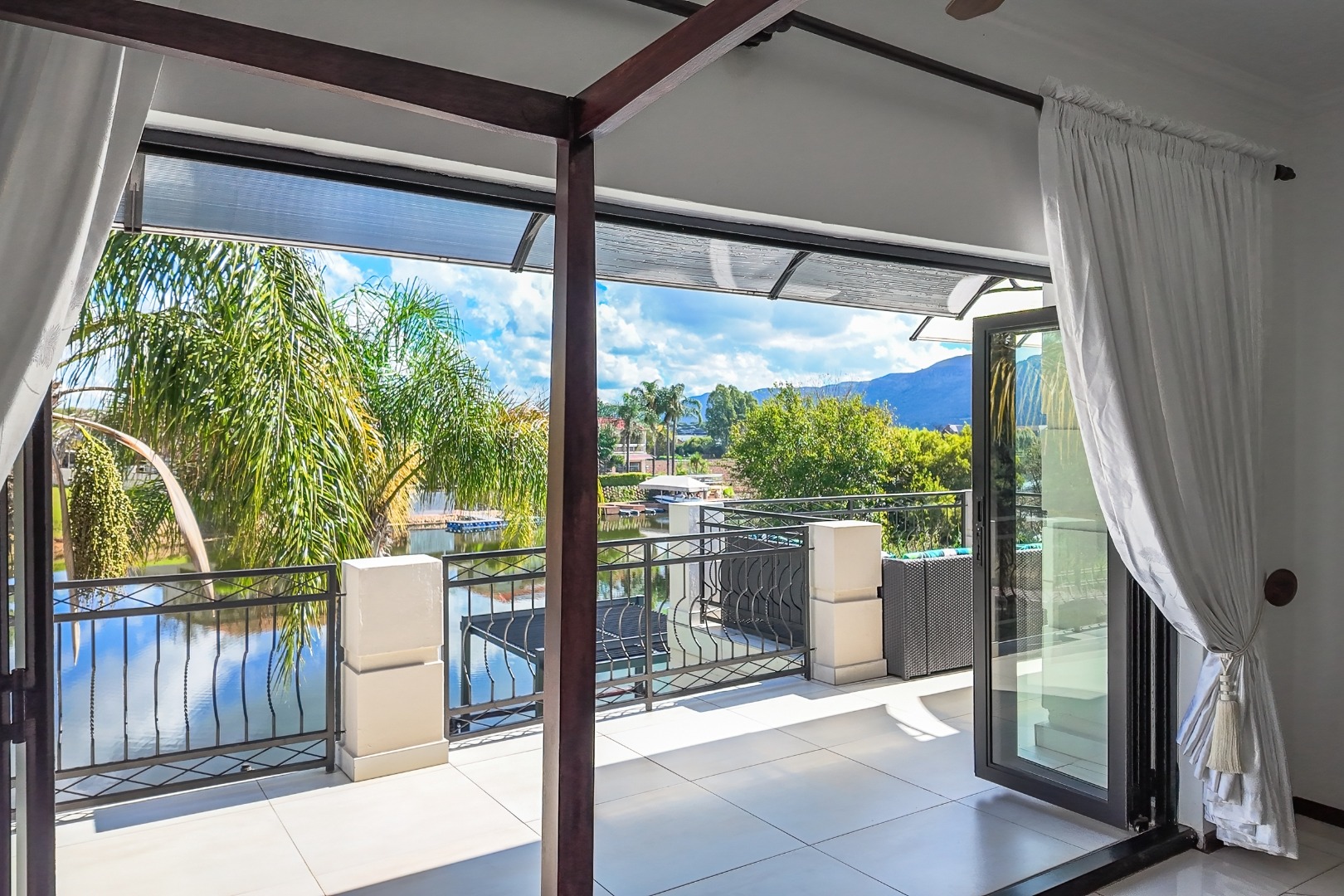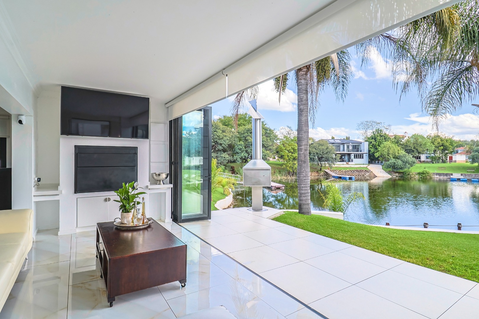 Set on a generous 1,111 sqm stand, this immaculate double-storey home offers 5 spacious bedrooms and 4.5 bathrooms, all complemented by a beautifully finished, upmarket interior. Automated gates welcome you into a glamorous entrance with porcelain tiles, leading seamlessly into expansive open-plan reception areas. The lounge and dining areas flow effortlessly, enhanced by a built-in bar and a stylish braai room—ideal for entertaining. From here, the home opens onto a patio overlooking a rim-flow heated pool, lapa, and fire pit, creating a relaxed outdoor setting with direct access to the dam, your own private jetty, and a private boat launching facility. The well-equipped kitchen, complete with a separate scullery and laundry, adds both practicality and ease to everyday living, while air-conditioning in the lounge and bedrooms ensures year-round comfort.