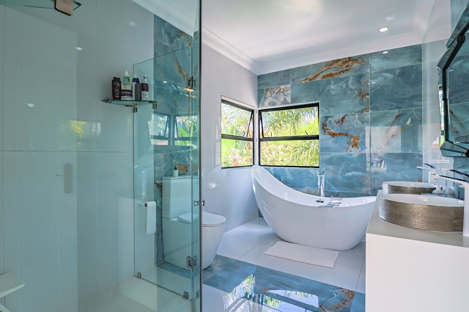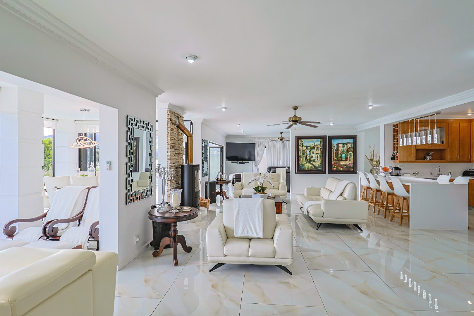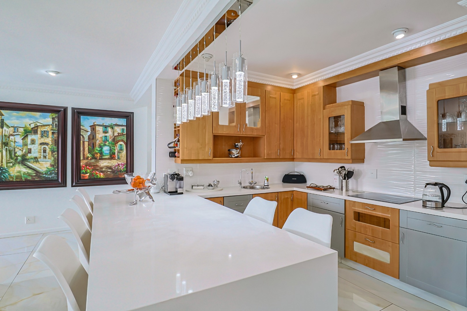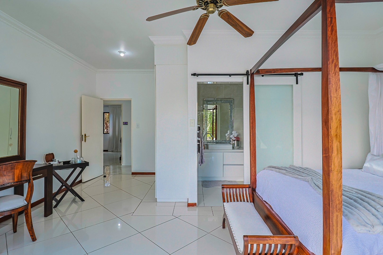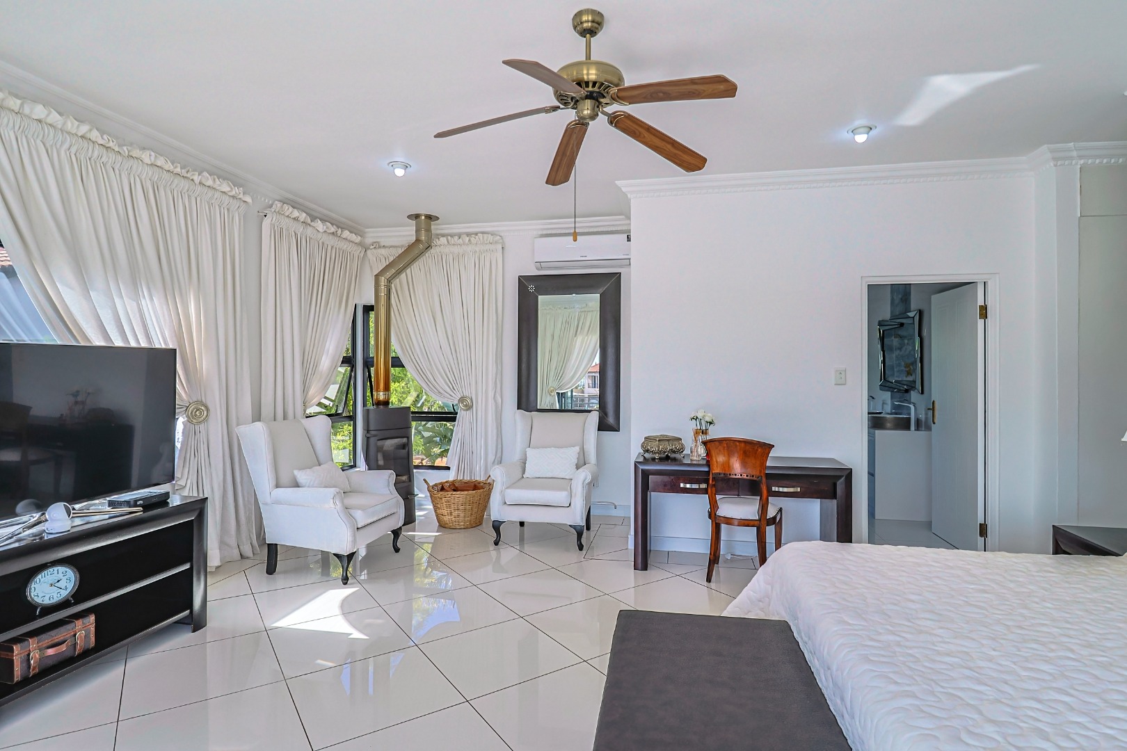 Set on a generous 1,111 sqm stand, this immaculate double-storey home offers 5 spacious bedrooms and 4.5 bathrooms, all complemented by a beautifully finished, upmarket interior. Automated gates welcome you into a glamorous entrance with porcelain tiles, leading seamlessly into expansive open-plan reception areas. The lounge and dining areas flow effortlessly, enhanced by a built-in bar and a stylish braai room—ideal for entertaining. From here, the home opens onto a patio overlooking a rim-flow heated pool, lapa, and fire pit, creating a relaxed outdoor setting with direct access to the dam, your own private jetty, and a private boat launching facility. The well-equipped kitchen, complete with a separate scullery and laundry, adds both practicality and ease to everyday living, while air-conditioning in the lounge and bedrooms ensures year-round comfort.