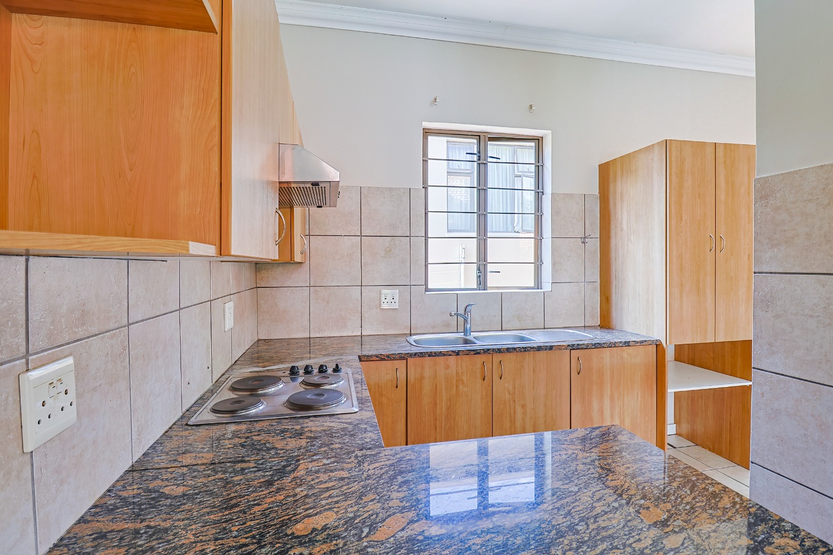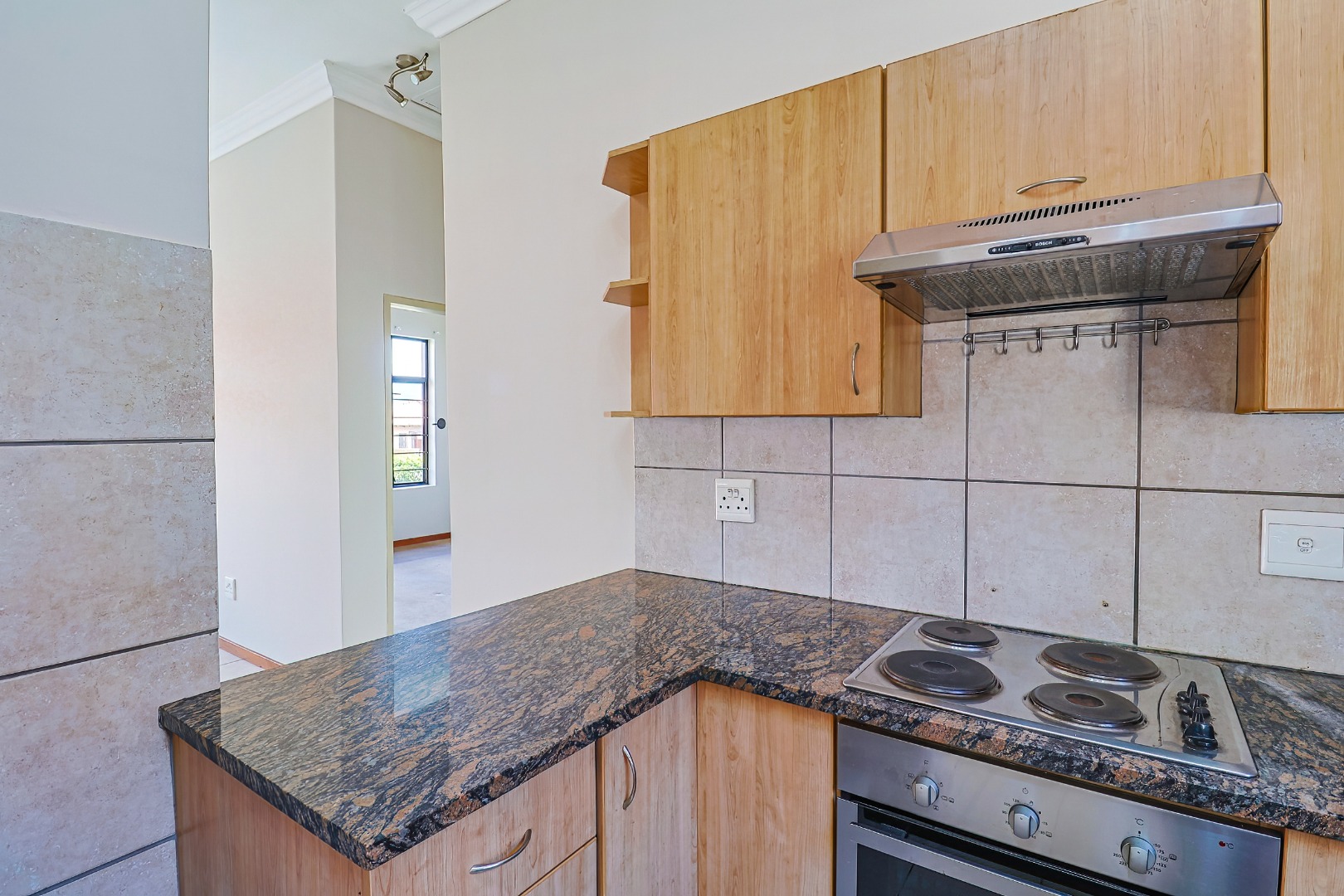 The full title property offers two bedrooms, a full bathroom, open plan kitchen and living area, a wonderful veranda, and a single garage. Parking for a second vehicle.