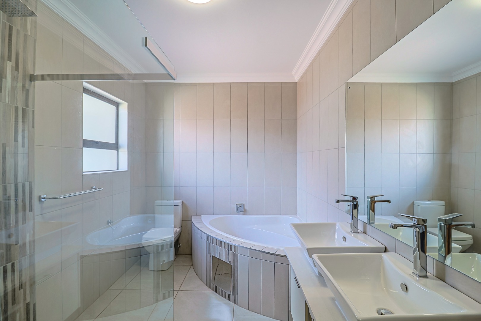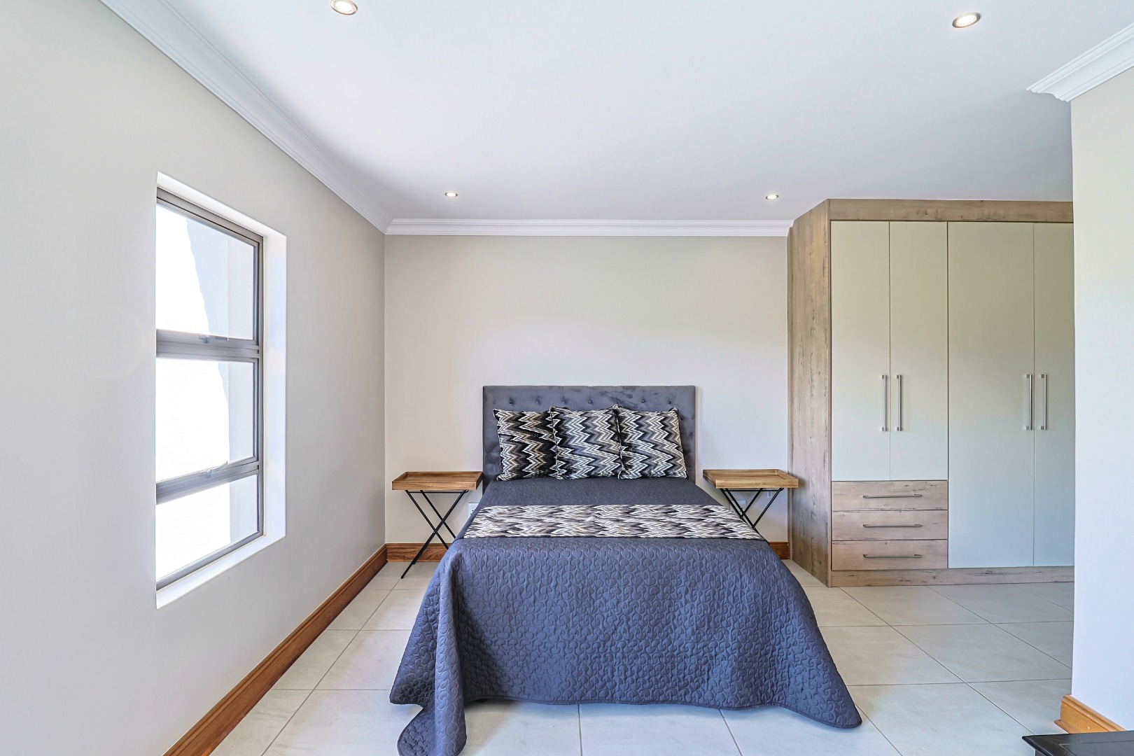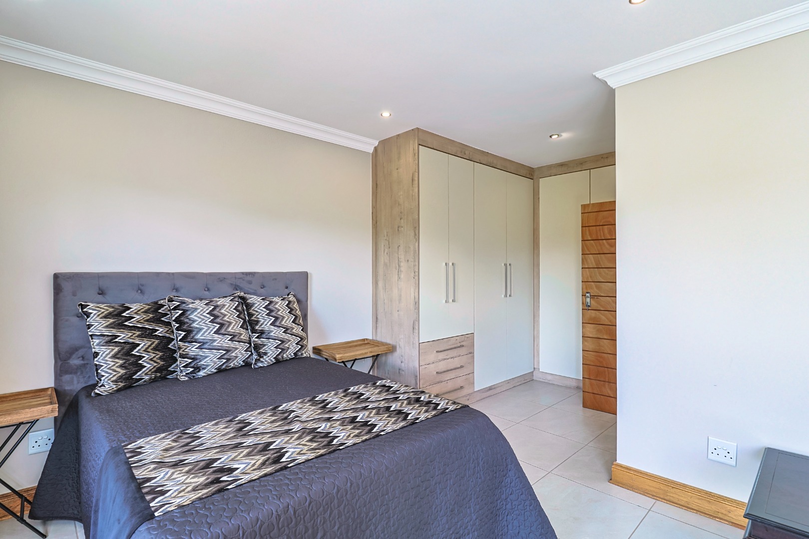 The main bedroom affording expansive cupboards and a designer en-suite bathroom.
