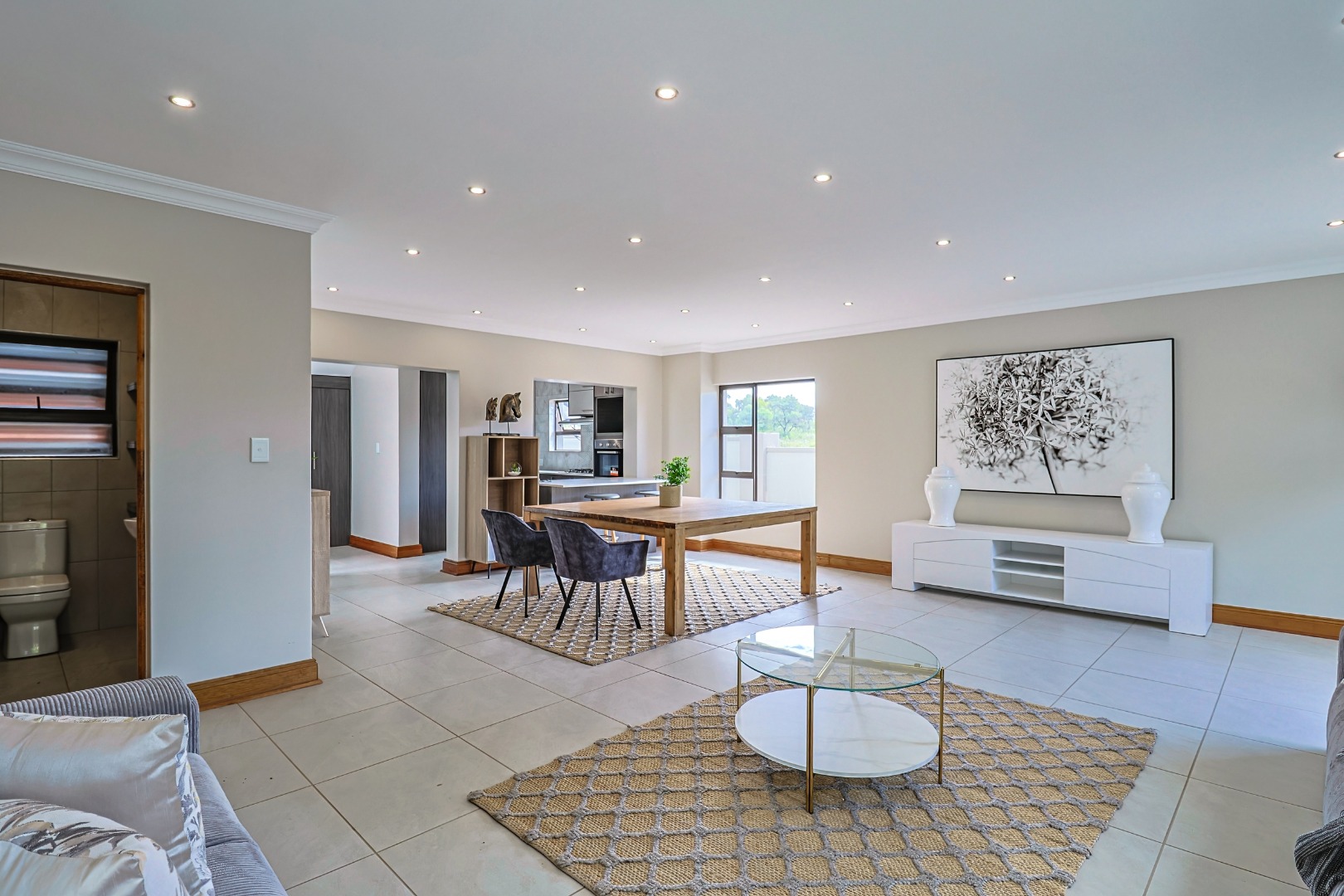 The moment you step into this brand-new home, with stunning mountain views, you will be captivated by its open plan architectural style, 3 large bedrooms, 2,5 bathrooms, pyjama lounge with coffee bar, balcony and under cover patio with built-in braai