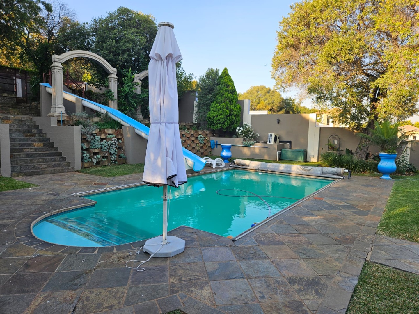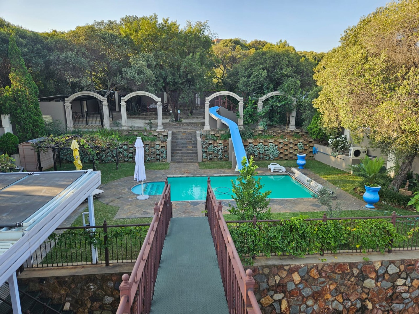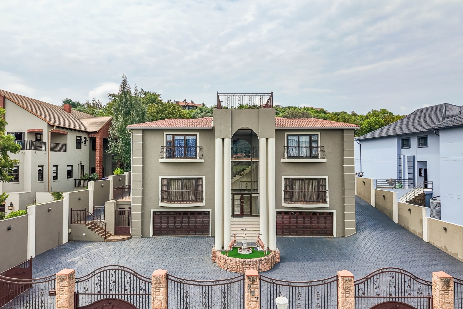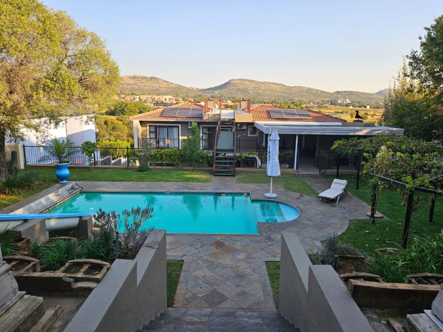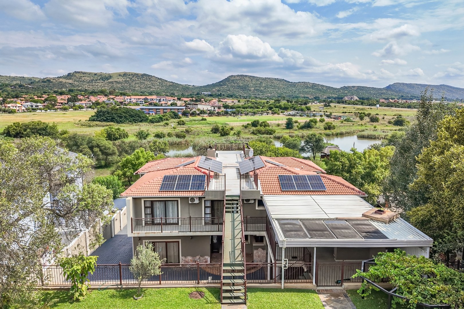 Discover an unparalleled lifestyle within the esteemed Xanadu Nature Estate in Hartbeespoort, South Africa. This magnificent 617 sqm residence, set on a generous 1621 sqm erf, offers a rare blend of architectural grandeur and natural serenity. Hartbeespoort is celebrated for its breathtaking landscapes, and this eco-estate provides an exclusive, secure community where luxury harmonises with the environment, promising a truly aspirational living experience. Step into an interior designed for sophisticated living, featuring two state-of-the-art kitchens that cater to every culinary desire. A dedicated dining room and a spacious lounge provide elegant settings for entertaining, while a private study offers a tranquil space for reflection or work. The home boasts five sumptuously appointed bedrooms and five luxurious bathrooms, each designed for ultimate comfort. Multiple balconies extend from these private havens, offering captivating scenic views. The outdoor realm is an oasis of leisure, highlighted by a sparkling swimming pool nestled within a meticulously landscaped garden. Four secure garages provide ample parking, complementing the pet-friendly ethos of this eco-conscious property. Embracing modern efficiency, the residence is equipped with solar panels, ensuring sustainable living. Security is assured with an access gate, providing peace of mind within this exclusive estate. Key Features: * Five Bedrooms, Five Bathrooms * Two Gourmet Kitchens * Dedicated Study * Private Swimming Pool & Landscaped Garden * Four Secure Garages * Multiple Balconies with Scenic Views * Eco-Estate Living with Pet-Friendly Policy * Integrated Solar Panels * Secure Access Gate
