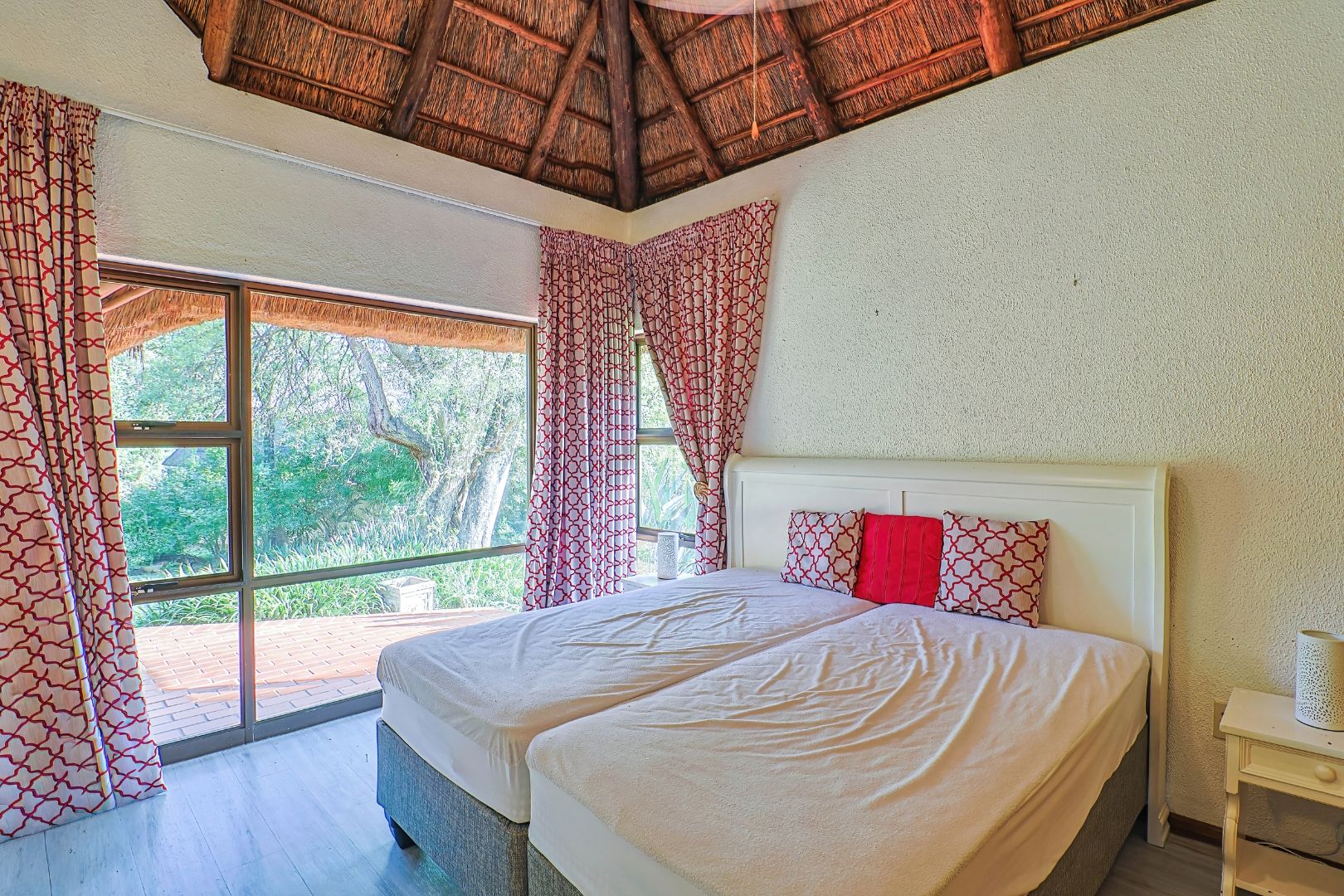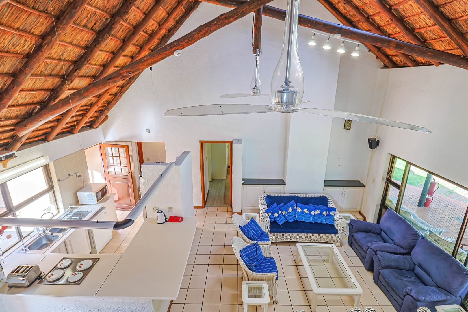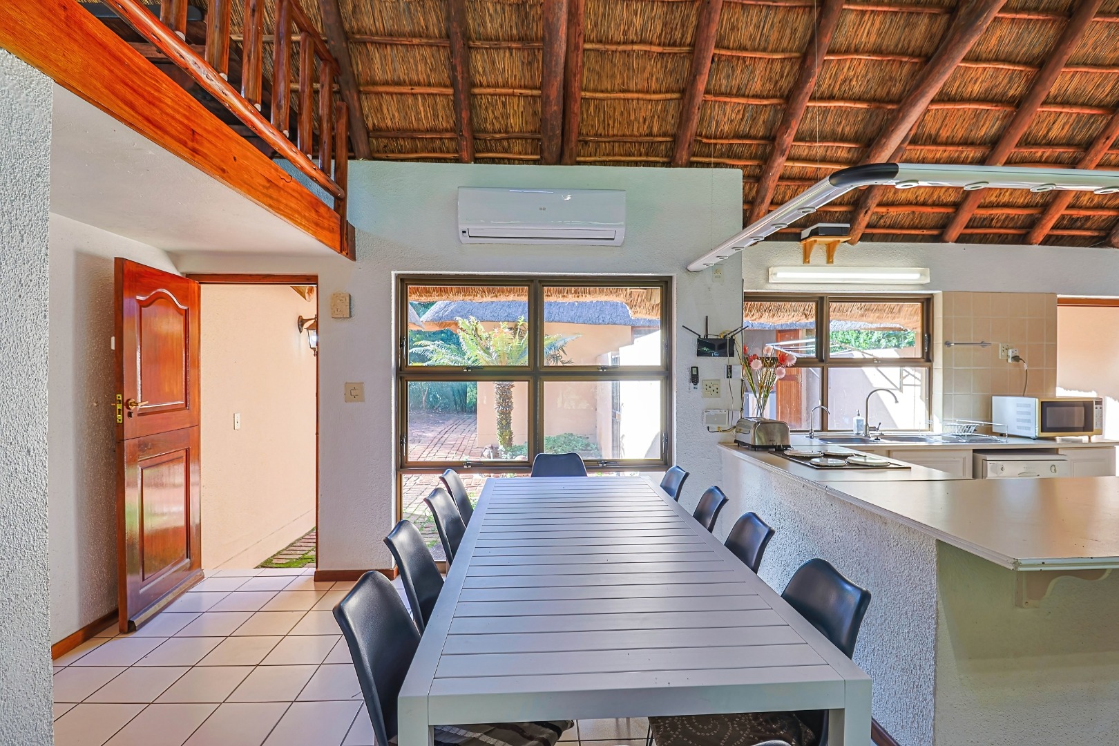 Tucked away in a lush, tree-filled oasis, this delightful four-bedroom thatch-roof home offers the perfect balance of comfort and bushveld beauty. With its neat-as-a-pin interiors and inviting open-plan design, the home flows effortlessly from the kitchen into a light-filled lounge and dining area. Sliding doors open onto a spacious patio where mornings, evenings, and relaxed weekends can be enjoyed while surrounded by the peace of nature. Upstairs, a versatile loft-style space provides the perfect setting for a home office, studio, or creative retreat. The garage also features an additional loft area, offering valuable extra space for storage or hobbies. This home combines warmth, practicality, and a tranquil natural setting — ideal for those seeking relaxed bushveld living.