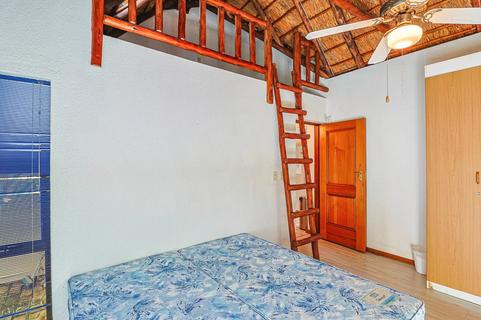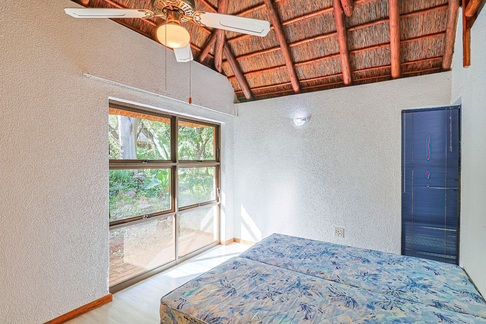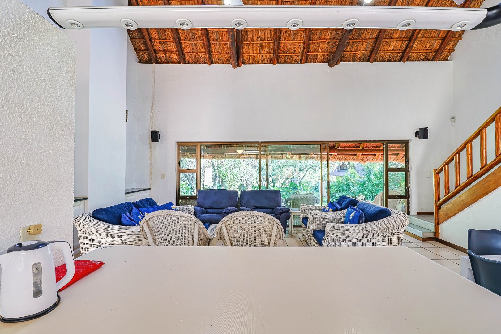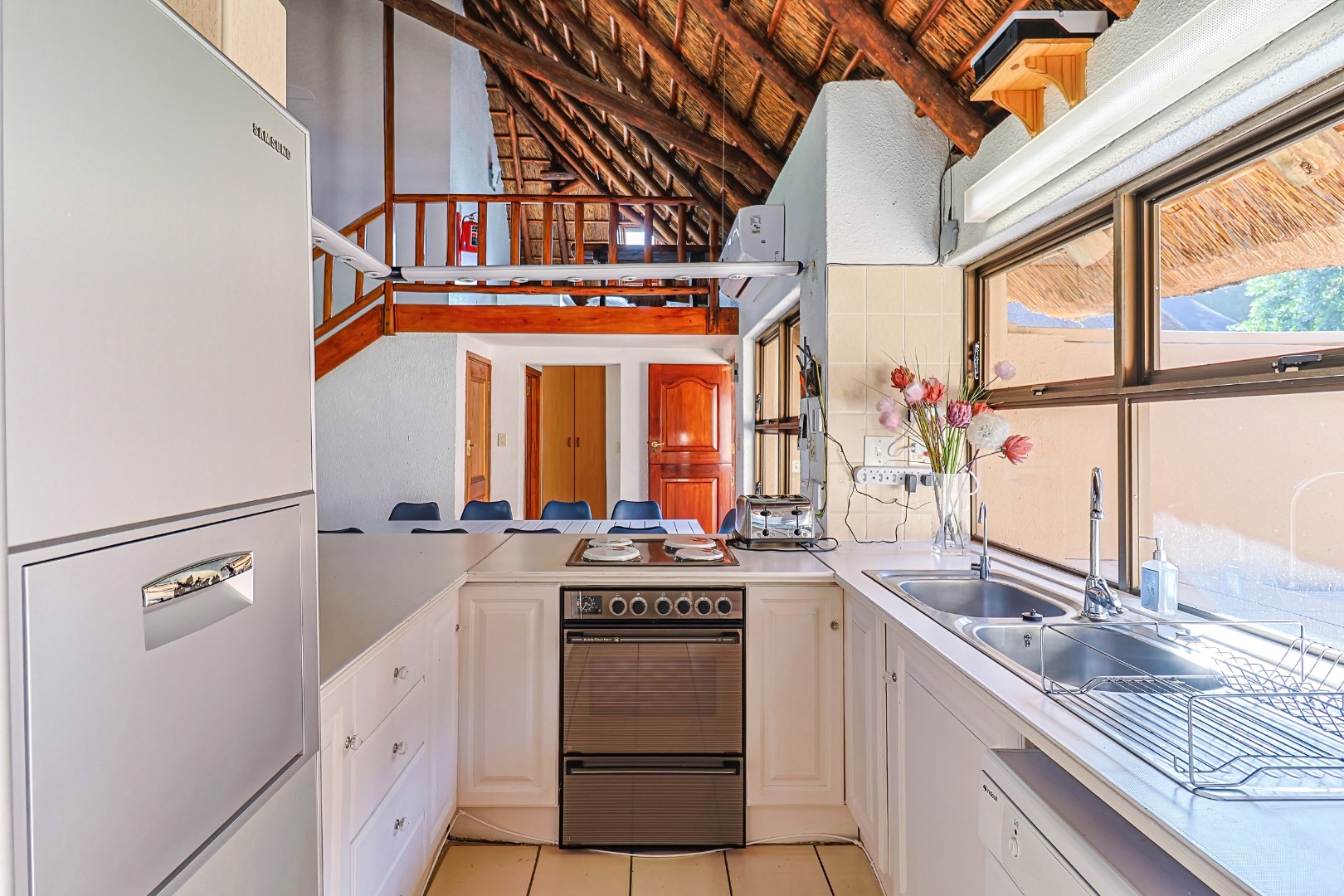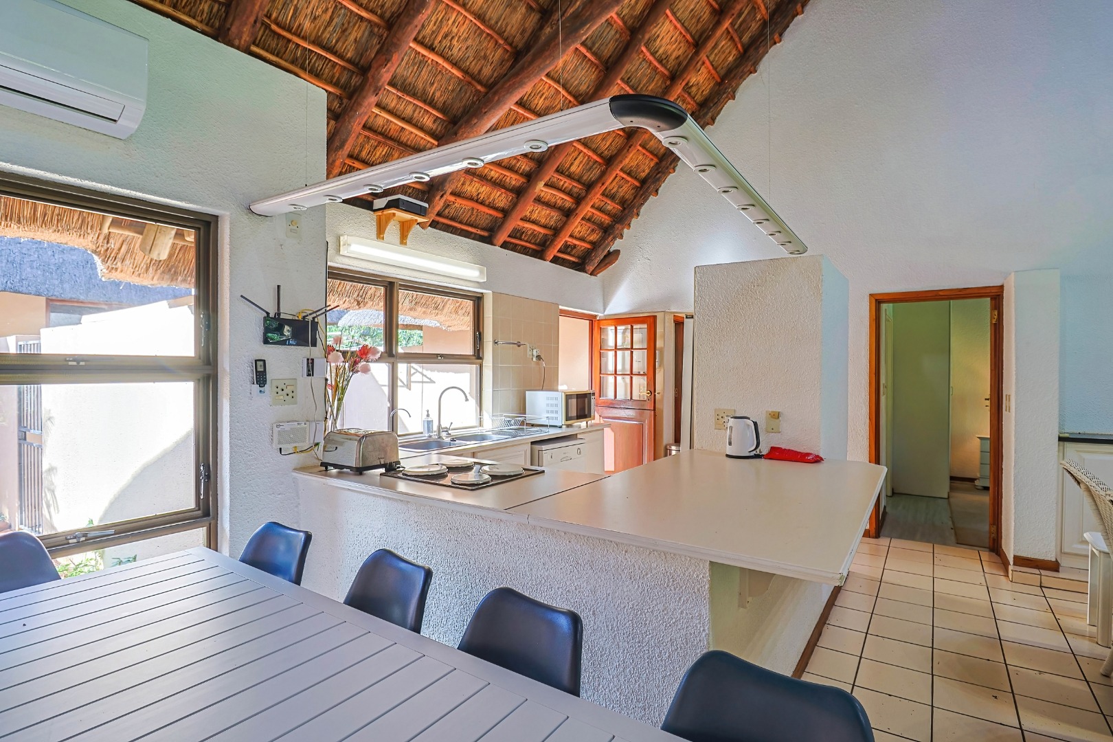 Tucked away in a lush, tree-filled oasis, this delightful four-bedroom thatch-roof home offers the perfect balance of comfort and bushveld beauty. With its neat-as-a-pin interiors and inviting open-plan design, the home flows effortlessly from the kitchen into a light-filled lounge and dining area. Sliding doors open onto a spacious patio where mornings, evenings, and relaxed weekends can be enjoyed while surrounded by the peace of nature. Upstairs, a versatile loft-style space provides the perfect setting for a home office, studio, or creative retreat. The garage also features an additional loft area, offering valuable extra space for storage or hobbies. This home combines warmth, practicality, and a tranquil natural setting — ideal for those seeking relaxed bushveld living.